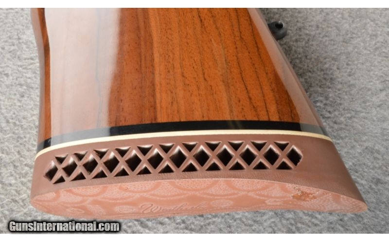 Description: This is a very nice looking and like new Weatherby Mark V Lazermark rifle. The wood and bright blue are free from any blemishes. SOLD Caliber Info: .300 Weatherby Magnum Chambers: Bolt action repeater. Metal Condition: Like new. Wood Condition: Like new. Bore Condition: Like new. Barrels: 26 inch bright blue. Triggers: Single blue. Stock: Very nice high grade walnut with rosewood grip and forearm tips, a Monty Carlo cheek and 5 panal Lazer cut designs. Stock Dimensions: 13 1/4 Inch LOP. Fore End: Rosewood tip and Lazer cut panals. Butt Pad: Weatherby brown rubber vented butt pad. Weight: 9 Lbs 2 Oz. Sights: Leupold scope base. Extras: Comes with the factory box. Item Location: Owatonna, MN |