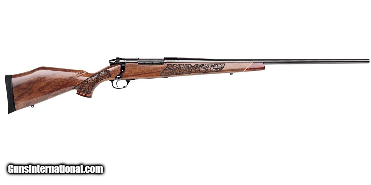 Description: Manufacturer: Weatherby, Inc. Model: Mark V Lazermark SKU: MLMM340WR6O Caliber: .340 Weatherby Magnum Capacity: 3+1 Rounds Barrel: 26" Cold Hammer Forged, #2 Contour Rate of Twist: 1 in 10" Metal Finish: High Lustre Bluing Stock: AA Grade Walnut with Monte Carlo, Laser Carved leaf pattern, Stock Features: Rosewood forend tip and pistol grip cap with maple spacers and diamond inlay Overall Length: 46.63" Length of Pull: 13.63" Weight 8.5 lbs All items are factory new in box unless otherwise stated. Based on the information available to us, the above specifications describe this item to the best of our knowledge. For further information, please contact or visit the manufacturer's . SOLD |