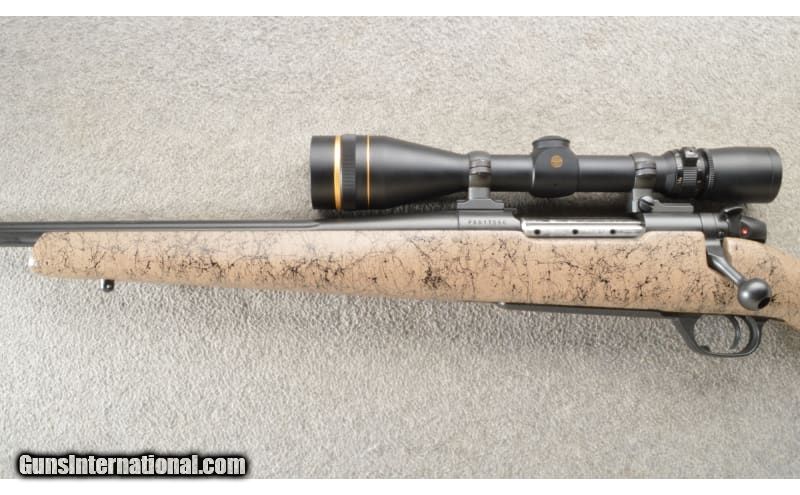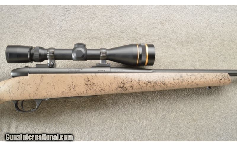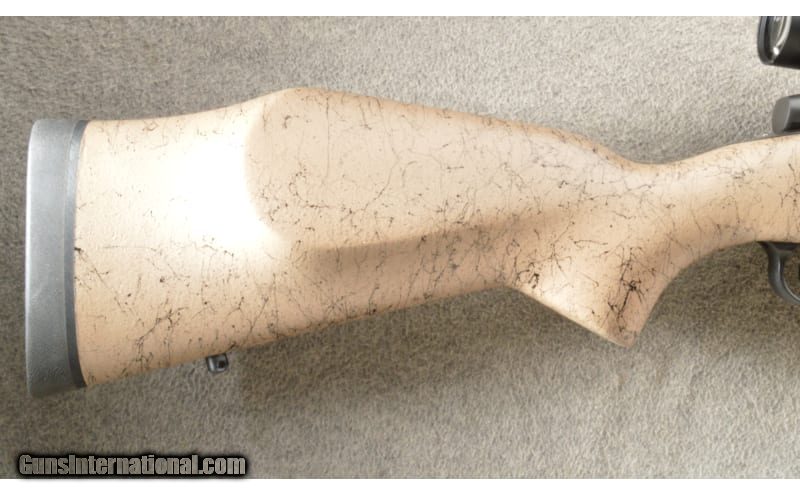 Description: Weatherby Mark V bolt action rifle chambered in .257 Weatherby magnum. This rifle features a Monte Carlo composite stock with a raised cheek comb and black spiderweb accents, fluted 26" barrel, Leupold Vari-X 111 4.5x14 scope. Overall this rifle is in excellent lightly used condition. No extras. .257 Roberts SOLD Chambers: Bolt action. Metal Condition: "99% exterior, minor contact wear on the bolt finish. Wood Condition: Synthetic stock is excellent. Bore Condition: Bright strong bore. Barrels: 26" barrel. Triggers: Single. Stock Dimensions: LOP 13.5". Fore End: Synthetic. Butt Pad: Rubber. Weight: 8.25 lbs Sights: Scope. Item Location: Owatonna, MN |