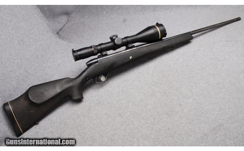 Description: This is a made in Japan Left Hand Weatherby Mark V rifle in .340 Weatherby Magnum. It has a 24 inch barrel with a 2 inch muzzle brake. Finish on the barrel is Good to Very Good with some handling evident. The bore is bright and shiny. The action is Very Good with some wear on the bolt knob. The Weatherby synthetic stock shows some wear. Condition of the stock is Good. This rifle comes equipped with a like new Leupold VX-7L 4.5-18X56MM scope with a 34MM tube in 2 piece Weaver style mounts. This amazing scope and the mounts are included in the price of the rifle and will not be removed and the rifle repriced without them. SOLD Caliber Info: .340 Weatherby Magnum Metal Condition: Good to Very Good Bore Condition: Bright and Shiny Barrels: 24" Barrel with 2" Muzzle Brake Triggers: Grooved Stock: Weatherby Synthetic Stock Stock Dimensions: LOP 13 1/2 Butt Pad: Rubber Sights: Leupold VX-7L 4.5-18X56MM Scope in 2 Piece Weaver Style Mounts Item Location: Reno, NV |