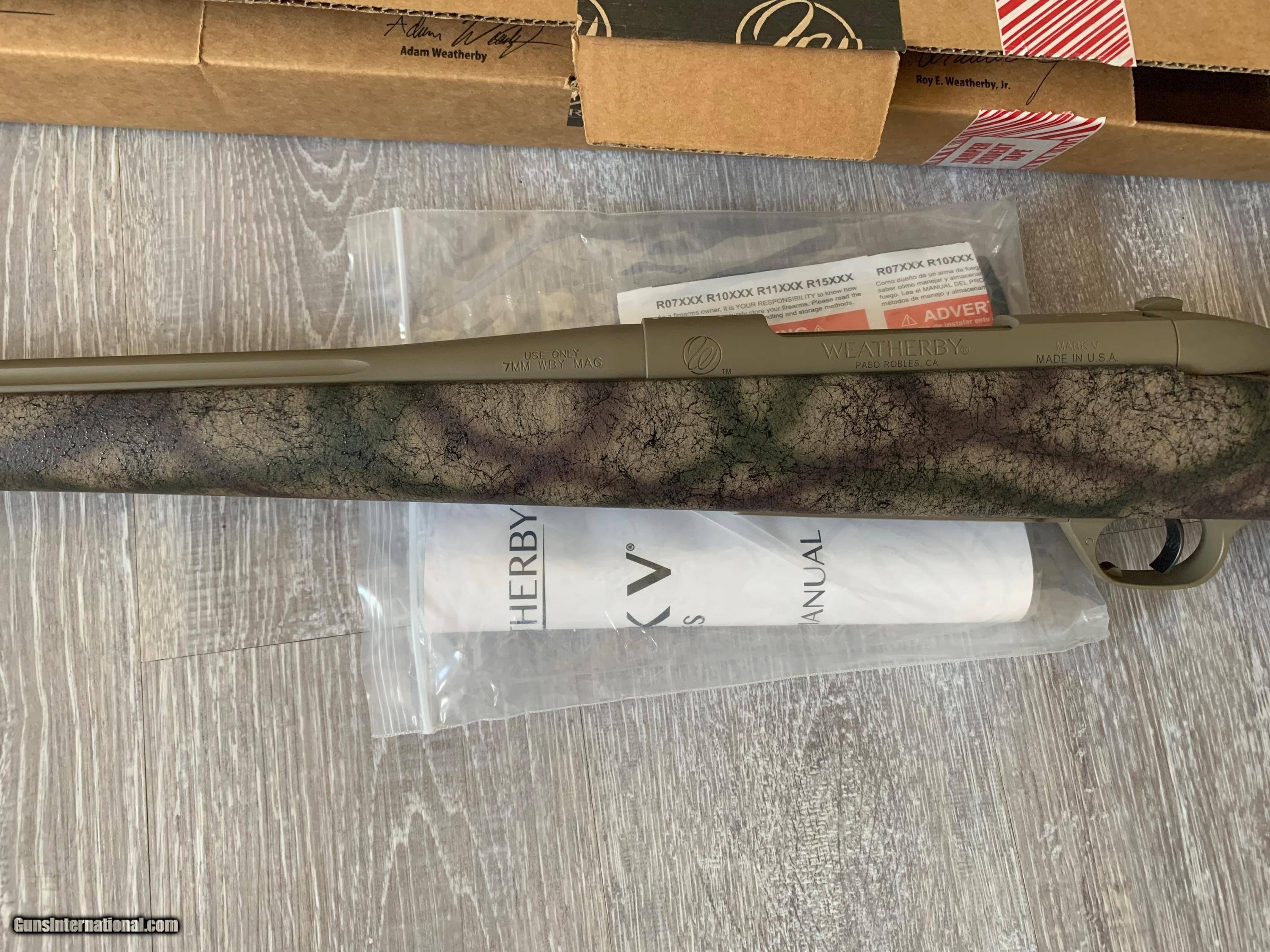 Description: Weatherby Mark V Outfitter RH New In Box 7 WBY Manufacture Description If you set me down in the brush, keep an eye on me because I’m prone to pulling disappearing acts. I do it with my natural Flat Dark Earth metalwork finish and the spiderweb design on my lightweight carbon fiber stock. The metal is also done up in Cerakote® which is as tough as a rhino’s hide. Beyond that I am a pure Mark V Outfitter with a fluted bolt body, integral recoil lug, adjustable LXX™ Trigger and a hand-lapped barrel. FEATURES INCLUDE: