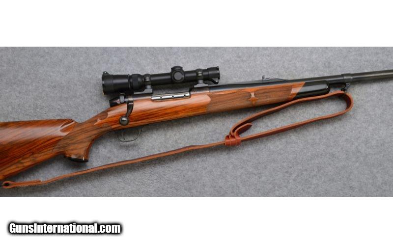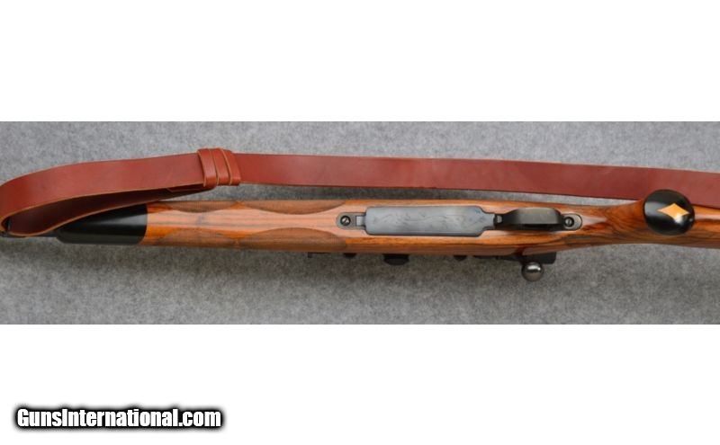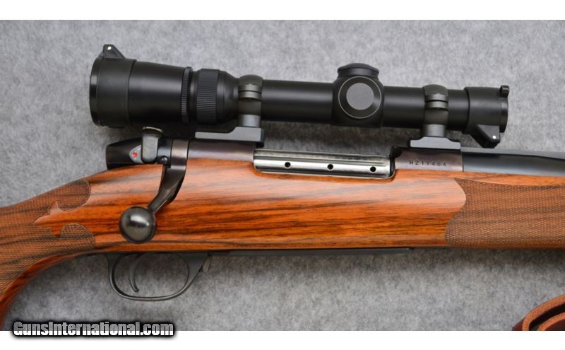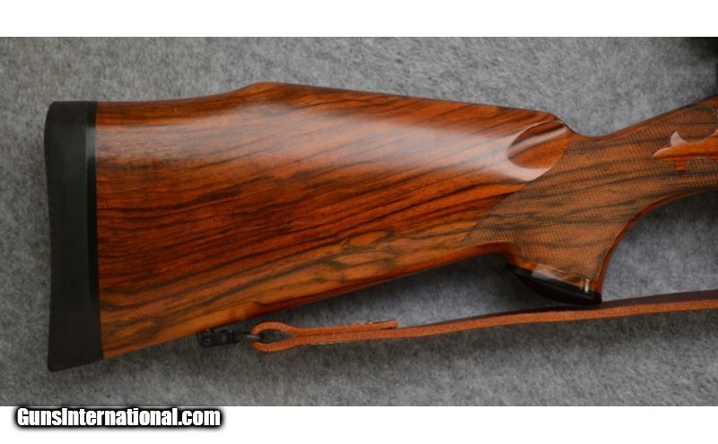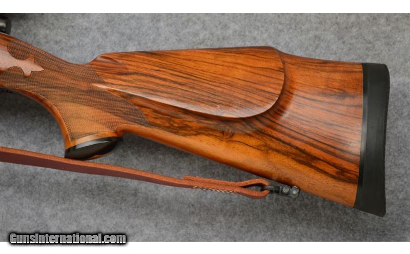 Description: Very good condition overall. Has a muzzle brake and EDM ports in the muzzle of barrel. SOLD Caliber Info: .416 Weatherby Magnum Metal Condition: Very Good Wood Condition: Very Good Bore Condition: Very Good Barrels: 26" overall with Muzzle Brake Triggers: Single Stage Adjustable Trigger Stock: Fluer-di-lis Checkered Deluxe Walnut in the Weatherby Style Stock Dimensions: LOP: 13 3/4 Fore End: Ebony Fore End Tip Butt Pad: Weatherby Recoil Pad Weight: 10 lbs. 8 ozs. Sights: Luepold VARI-X III 1.5-5x, 20mm, Folding Leaf Rear Sight with a Bead Front Sight Item Location: Hamburg, PA |