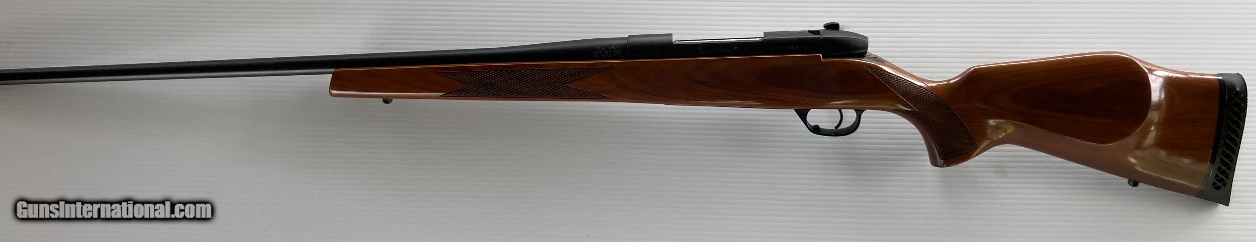 Description: Manufacturer: Weatherby Model: Mark V Sporter (Long Action) Caliber: .340 Weatherby Magnum Overall Length: 46 1/2 inches Barrel length: 26 inches Weight: 8 pounds Date Manufactured: 1995-2004 Condition: New (without box), never been fired Stock: High gloss, Monte Carlo, checkered walnut stock with vented recoil pad Metal: Low luster, matte blue finish Included: 40 rounds of Weatherby brand, factory produced .340 Weatherby Magnum Ultra-High Velocity Ammunition, 250 grain Nosler Partition Shipping Cost: $50.00 to a continental US address Acceptable forms of payment include: Certified Check / Money Order / Personal Check (will be held until funds clear). SOLD Rifle Caliber: .340 Weatherby Magnum Manufacturer: Weatherby Model: Mark V Condition: New |