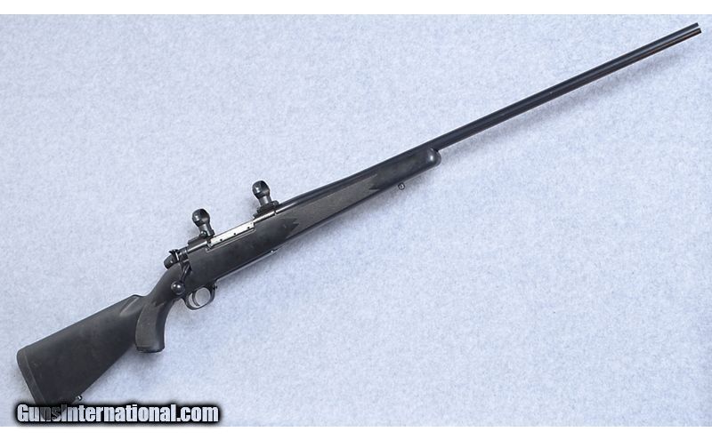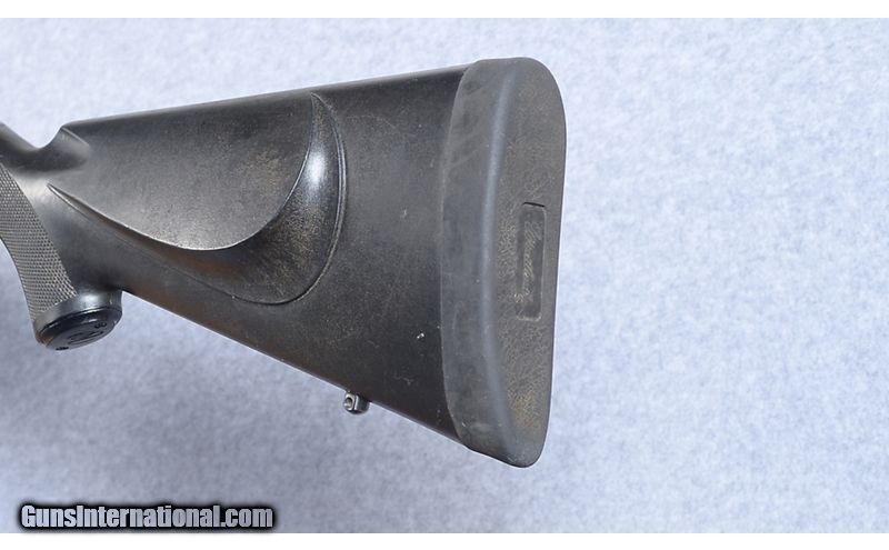 Description: This Weatherby Mark V Synthetic is chambered in Weatherby's flat shooting and powerful .270 Weatherby Magnum cartridge. The Mark V line is Weatherby's premium grade rifles and the Mark V Synthetic is branded as the economical Mark V. Weatherby is notable for their bolt-action operating systems–a modified Model 54 action–which is an early 20th century design for centerfire cartridges. Weatherby's Mark V's bolt body is designed with nine lugs that secure the bolt firmly into the receiver. With more lugs, or wider lugs, the bolt requires a short 54-degree lift for full rotation and chambering. Weatherby also strengthened the bolt body by milling it from a single piece of steel, so it can withstand more powerful cartridges. The Synthetic features a lightweight Monte Carlo synthetic stock and fore-end, both of which are checkered. In addition, the Mark V Synthetic has a steel barrel and receiver with a low luster matte bead-blasted blue finish. The Mark V Synthetic is equipped with a fully adjustable trigger that is initially factory-tuned to 3.5 pounds. Its bolt has a fluted body, which reduces surface area in turn weight. The Mark V Synthetic also has a cocking indicator that visually indicates whether or not the rifle is cocked and a recoil pad. This Mark V was made in Japan in the mid-1990s and is in very good condition. The bluing on the action and barrel is almost complete with a little bit of loss of bluing at the crown and about 5" down the barrel on the left side. See photos. The rifling is excellent and, with the addition of a scope, this would make a long range western deer and elk gun. .270 Weatherby Magnum SOLD Metal Condition: Very good Bore Condition: Excellent Barrels: 26 Triggers: Adjustable Stock Dimensions: 13¼" Length of Pull Butt Pad: Weatherby recoil pad Weight: 8.75 lbs Sights: Includes 1" Leupold standard rings and bases Item Location: Boise, ID |