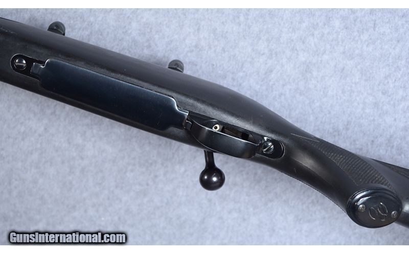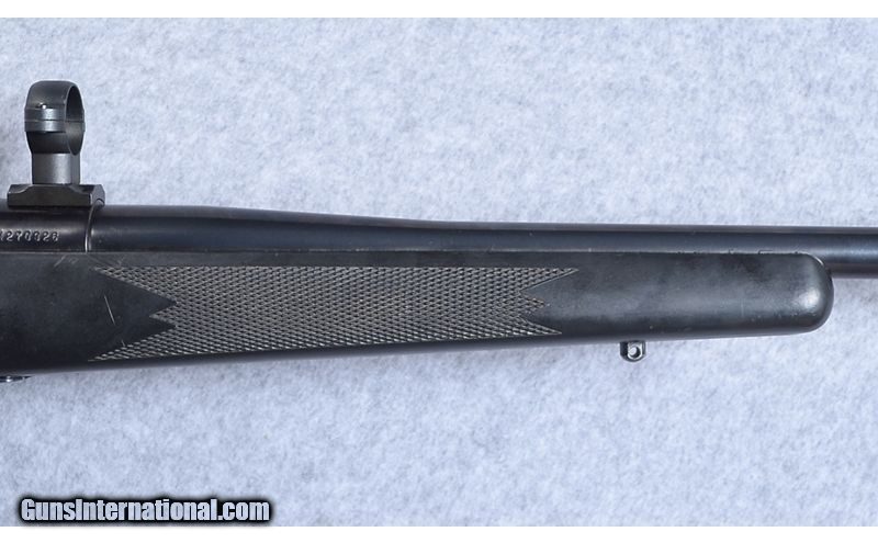 Description: This Weatherby Mark V Synthetic is chambered in Weatherby's flat shooting and powerful .270 Weatherby Magnum cartridge. The Mark V line is Weatherby's premium grade rifles and the Mark V Synthetic is branded as the economical Mark V. Weatherby is notable for their bolt-action operating systems–a modified Model 54 action–which is an early 20th century design for centerfire cartridges. Weatherby's Mark V's bolt body is designed with nine lugs that secure the bolt firmly into the receiver. With more lugs, or wider lugs, the bolt requires a short 54-degree lift for full rotation and chambering. Weatherby also strengthened the bolt body by milling it from a single piece of steel, so it can withstand more powerful cartridges. The Synthetic features a lightweight Monte Carlo synthetic stock and fore-end, both of which are checkered. In addition, the Mark V Synthetic has a steel barrel and receiver with a low luster matte bead-blasted blue finish. The Mark V Synthetic is equipped with a fully adjustable trigger that is initially factory-tuned to 3.5 pounds. Its bolt has a fluted body, which reduces surface area in turn weight. The Mark V Synthetic also has a cocking indicator that visually indicates whether or not the rifle is cocked and a recoil pad. This Mark V was made in Japan in the mid-1990s and is in very good condition. The bluing on the action and barrel is almost complete with a little bit of loss of bluing at the crown and about 5" down the barrel on the left side. See photos. The rifling is excellent and, with the addition of a scope, this would make a long range western deer and elk gun. .270 Weatherby Magnum SOLD Metal Condition: Very good Bore Condition: Excellent Barrels: 26 Triggers: Adjustable Stock Dimensions: 13¼" Length of Pull Butt Pad: Weatherby recoil pad Weight: 8.75 lbs Sights: Includes 1" Leupold standard rings and bases Item Location: Boise, ID |