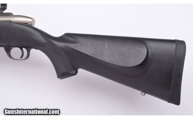 Description: Weatherby Mark V with stainless construction and synthetic stock. Pre-owned rifle shows scattered rubs and scratches. Bore looks fine, bases and rings already installed. .340 Weatherby Magnum SOLD Metal Condition: Stainless Steel Bore Condition: Bright / Sharp. Barrels: "26"" Barrel, Muzzle Brake Triggers: Adjustable Stock Dimensions: 13 1/2" LOP Butt Pad: Rubber Recoil Pad Weight: 8 lbs 10 ozs Sights: Scope Bases and 30mm Rings Installed Item Location: Buda, TX |