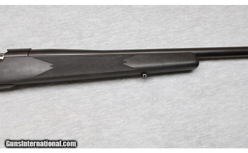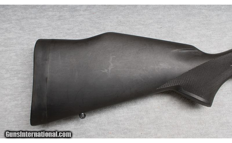 Description: The Weatherby Mark V Synthetic features a lightweight, injection molded synthetic stock with bead blast matte blued metalwork and a button rifled Krieger Criterion barrel. Three rings of steel surrounding the case head. Fluted bolt with three gas ports. Six locking lugs for standard calibers and nine for magnum calibers and a short 54 degree bolt lift. Bolt sleeve completely enshrouds rear of action. Direct Striker Intervention Safety offers direct, positive locking of the firing pin. Locks bolt in the engaged position and disengages the sear to render the trigger inoperable. Factory tuned, fully adjustable trigger. 7mm Weatherby Magnum SOLD Chambers: 7mm Rem Magnum Metal Condition: Excellent Wood Condition: Composite Stock is in excellent condition Bore Condition: Bright Barrels: 24 Inches Triggers: Adjustable Stock Dimensions: LOP 13 1/2 Fore End: Textured Composite Butt Pad: Rubber Recoil Pad Sights: Drilled and tapped for scope bases Item Location: La Vista, NE |