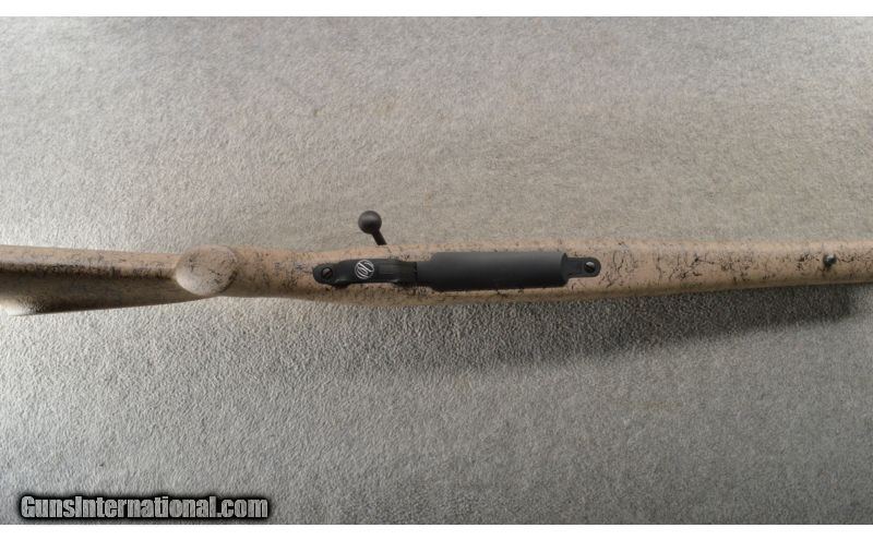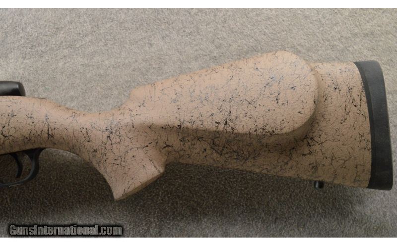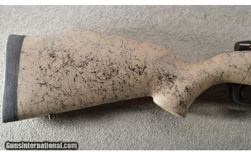 Description: This is a Weatherby Mark V Ultra Lightweight rifle in .308 Win. This is an as new in box rifle. The rifle features, SUB-MOA accuracy guarantee (.99 or less 3-shot group at 100 yards when used with Weatherby factory or premium ammunition), LXX trigger, fluted bolt body, 54-degree bolt lift, integral recoil lug, cocking indicator, 6-lug bolt. Stock has been designed with a slimmer forearm and more distinctive lines and contours, the grip diameter has been reduces, slight right-hand palm swell, hand-laminated, raised comb Monte Carlo composite stock, aluminum bedding block, matte gel coat finish, spiderweb accents, Uses state of the art lightweight components without sacrificing structural integrity, Pachmayr Decelerator recoil pad. Hand-lapped, fluted, blackened stainless steel, recessed target crown barrel. SOLD Manufacturer: NIB. Caliber Info: .308 Winchester Chambers: Bolt action repeater. Metal Condition: NIB. Wood Condition: NIB. Bore Condition: NIB. Barrels: 22 inch fluted stainless steel with a black coating. Triggers: LXX trigger. Stock: Hand-laminated, raised comb Monte Carlo composite stock, tan with spider-webbing. Stock Dimensions: 13 3/8 inch LOP. Fore End: Matching composite stock, tan with spider-webbing. Butt Pad: Pachmayr Decelerator recoil pad. Weight: 5 Lbs. 13 Oz. Sights: Drilled and tapped for your optics. Extras: Comes in the factory box with the paperwork, lock and sling swivels. Item Location: Wichita, KS |