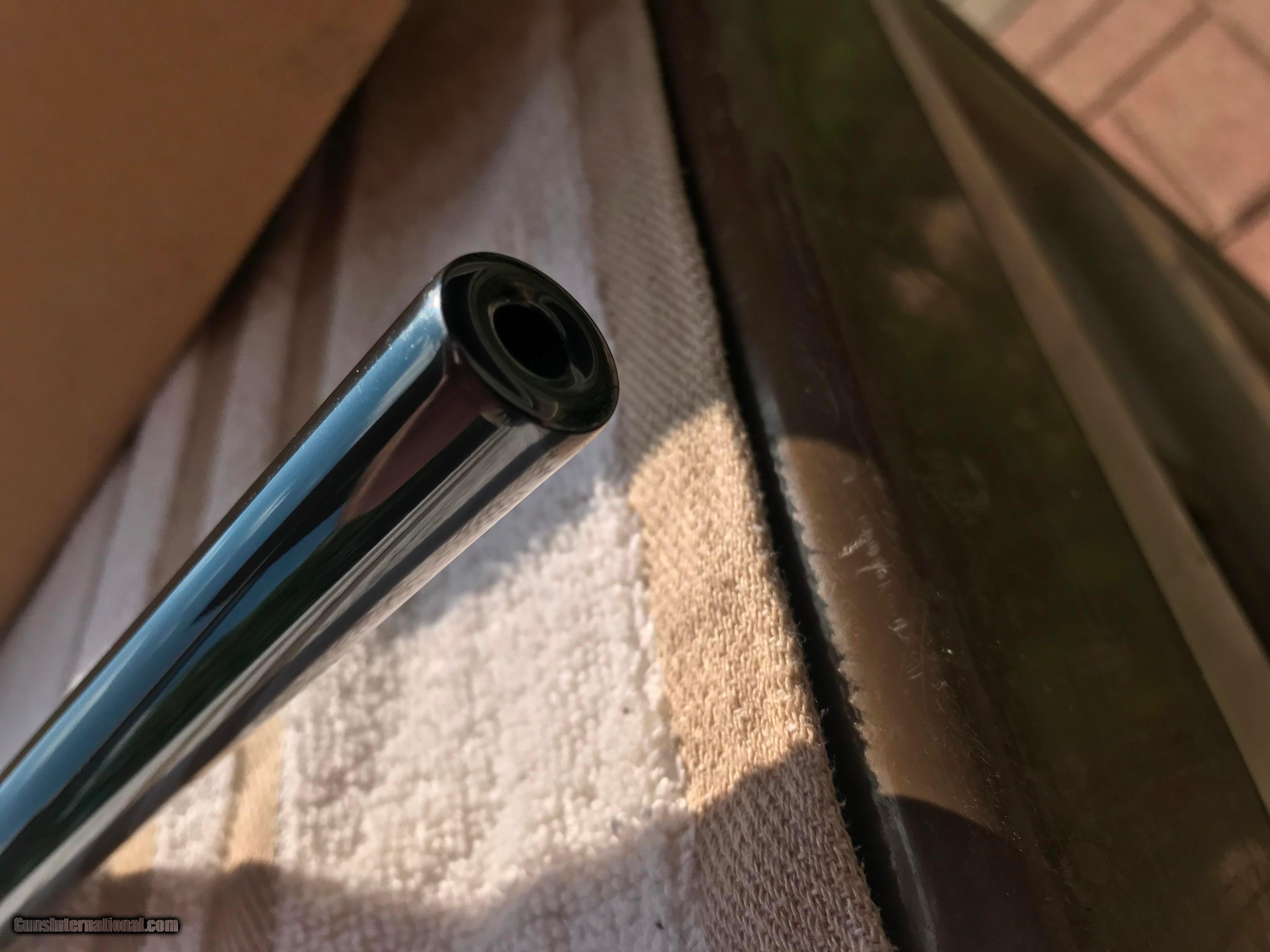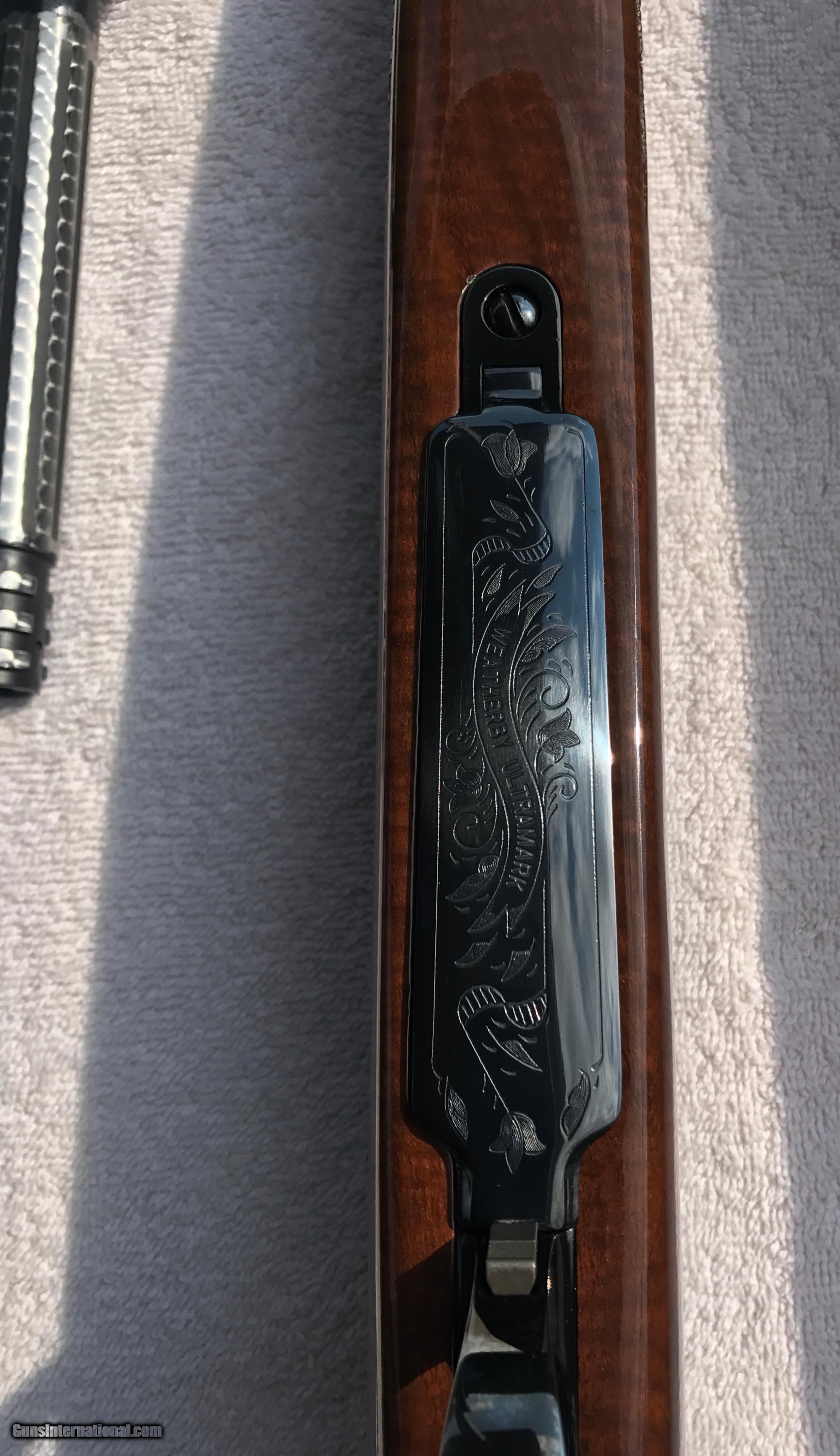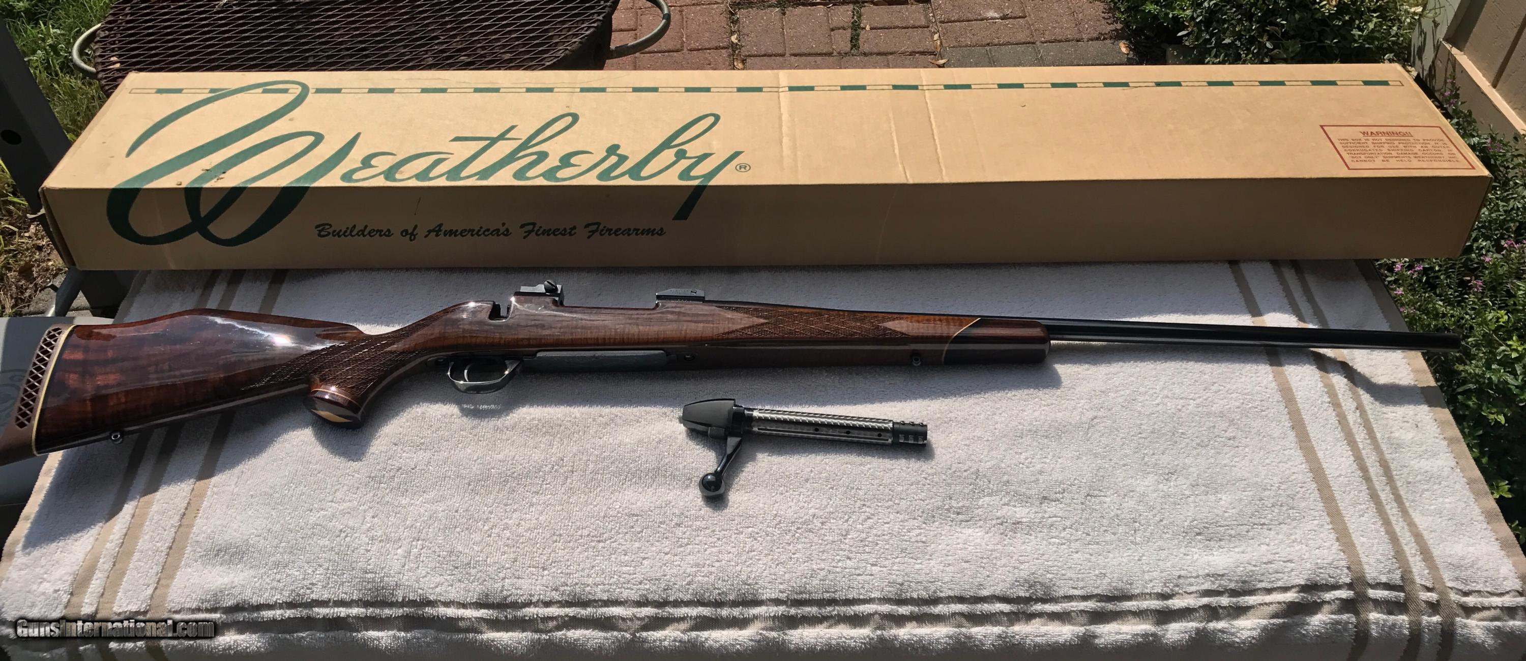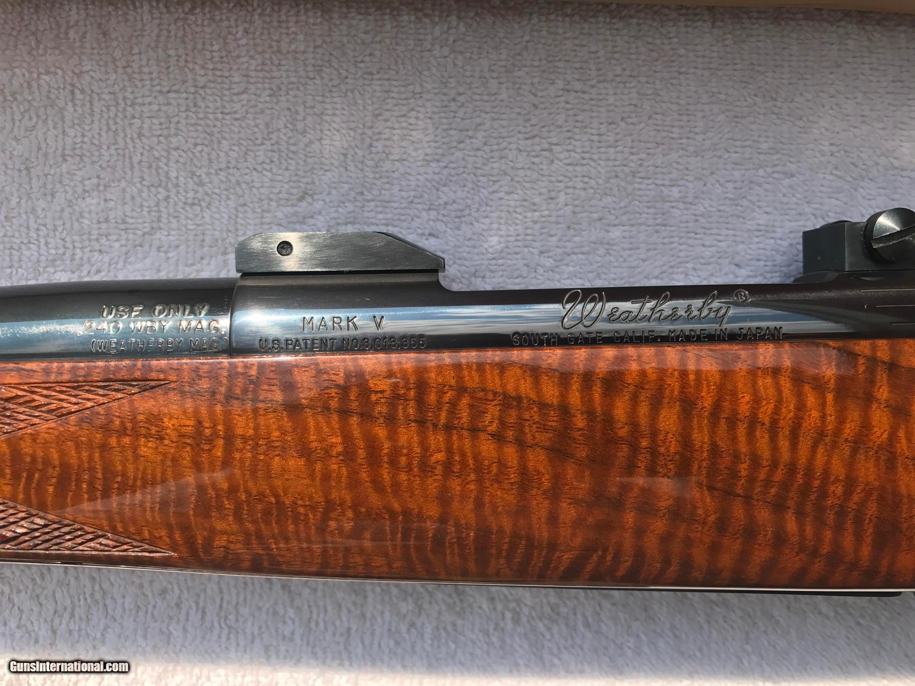 Description: Weatherby Mark V 240 Weatherby Magnum 26" #3 contour Ultramark, Quite possibly unfired, with matching serial numbered box. This rifle is one of the Japan made Ultramarks it is fully glass bedded from Weatherby and has a AA Walnut stock. This rifle was sold to me as unfired, it is mint I see no marks anywhere on it. It could quite possibly be a one of a kind with the #3 .640 muzzle diameter. This rifle has a lot of fiddleback in the wood that will not show up in the pictures, don't miss your opportunity to own a truly collectible Weatherby rifle. Insured shipping is $75. Thanks for looking and please take a look at my other listings. SOLD Manufacturer: Weatherby Model: Ultramark Caliber Info: 240 WBY Bore: New Condition: Mint Metal Condition: Mint Wood Condition: Mint Bore Condition: New Barrels: 26 |