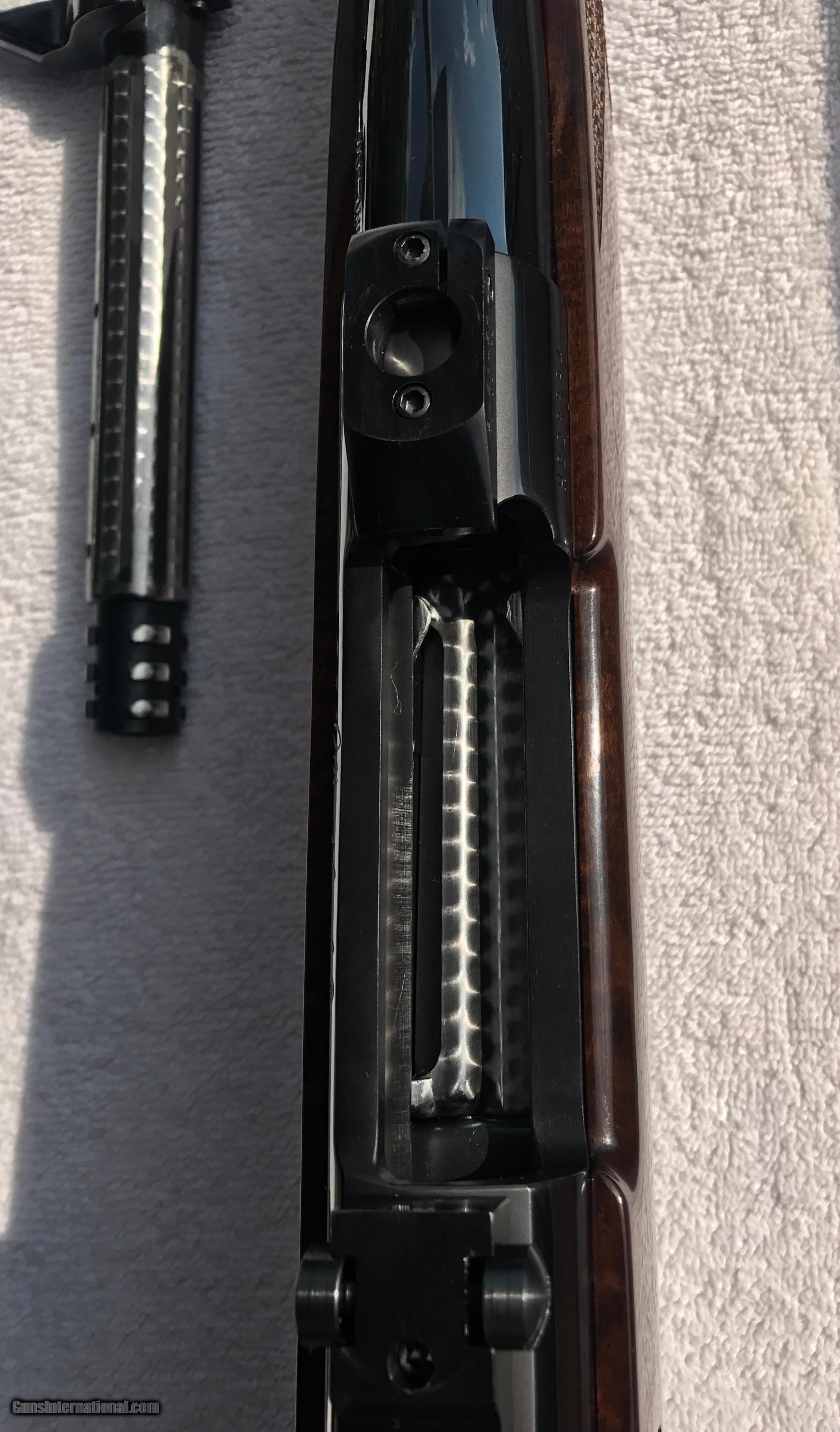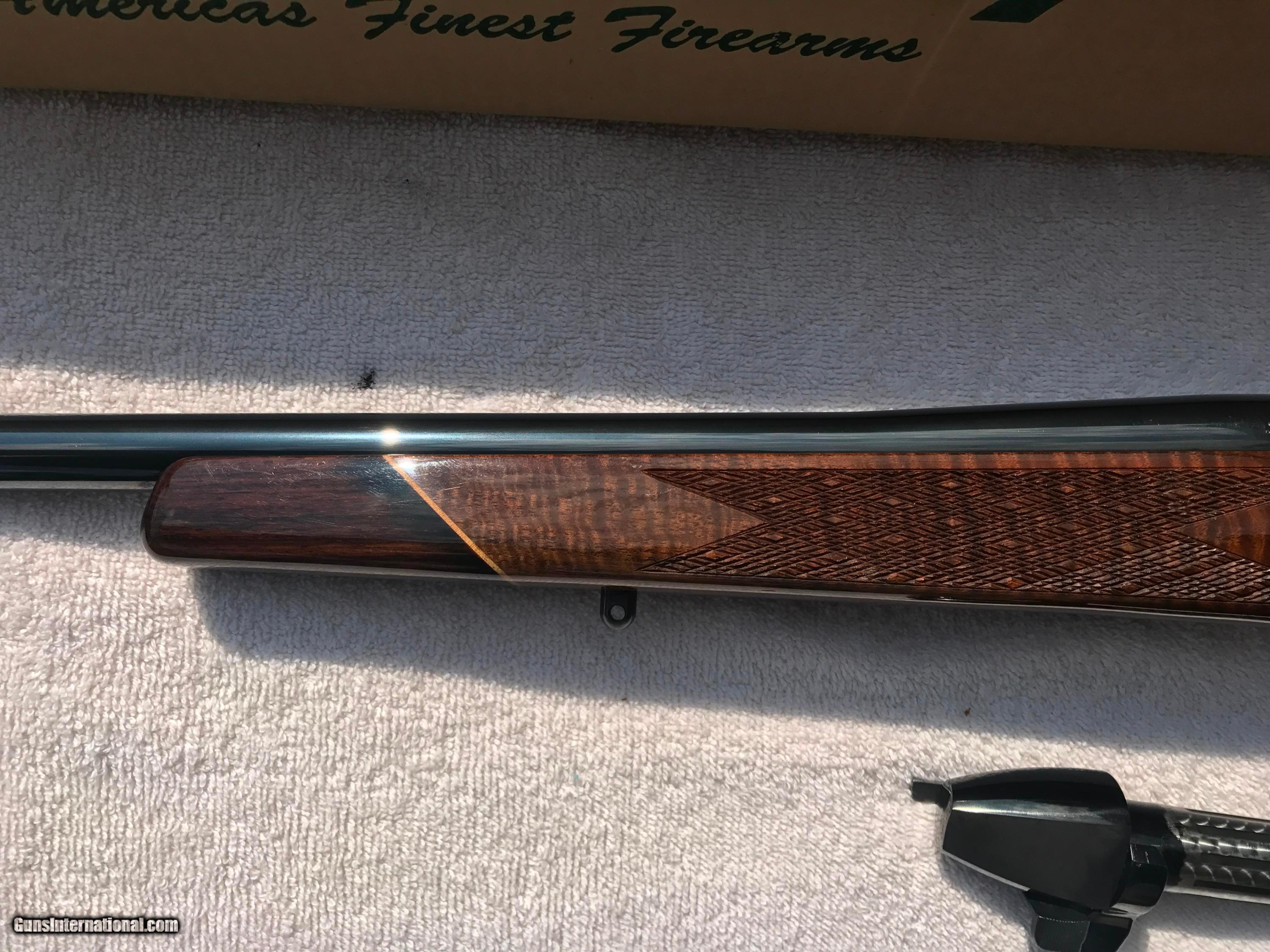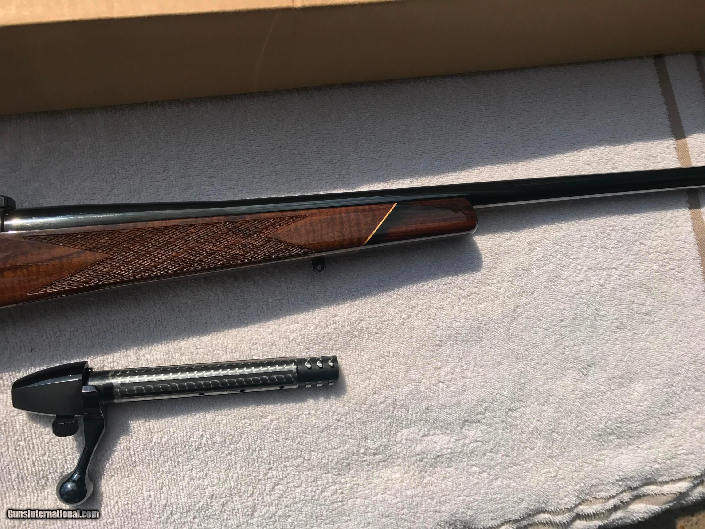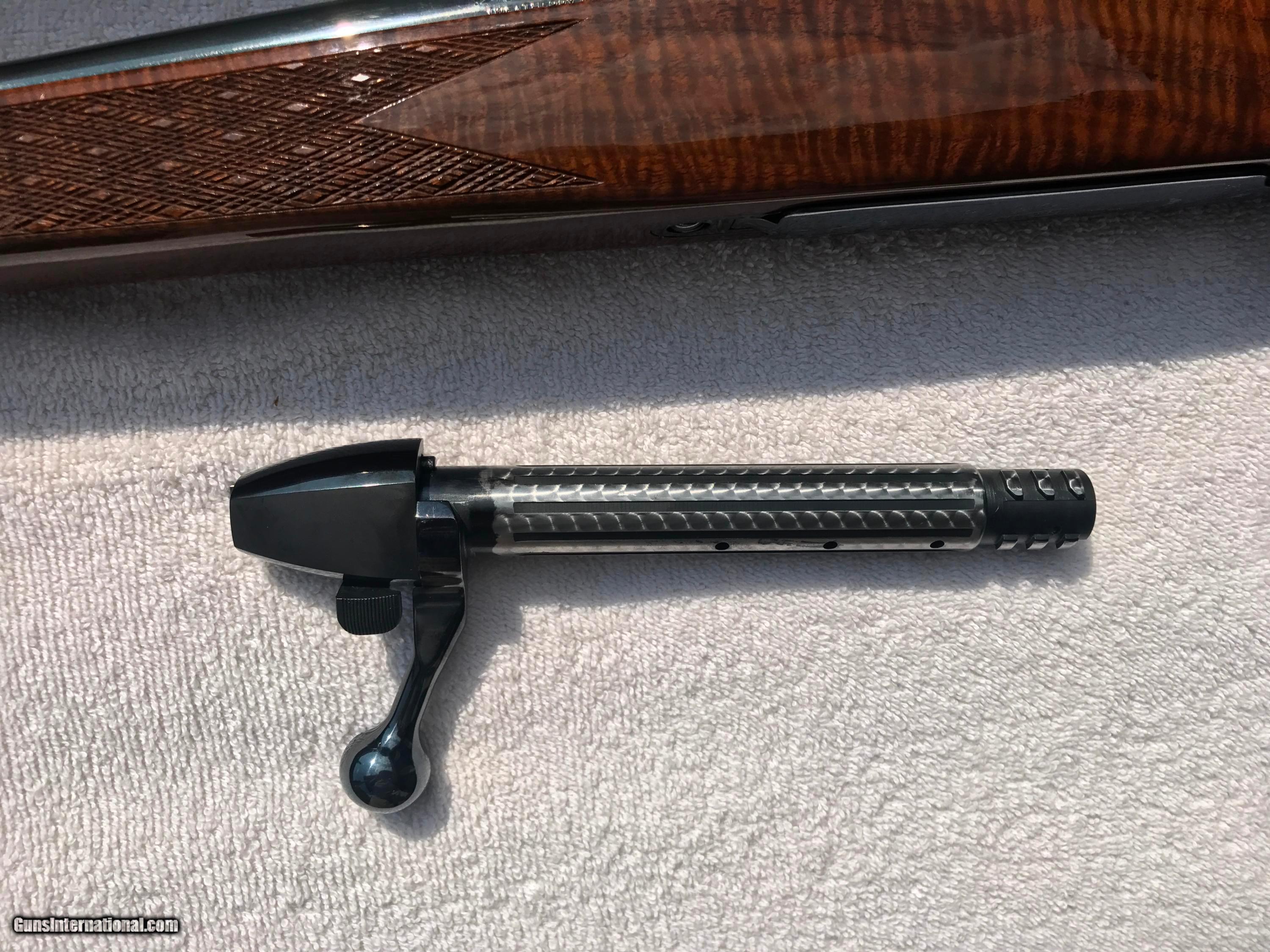 Description: Weatherby Mark V 240 Weatherby Magnum 26" #3 contour Ultramark, Quite possibly unfired, with matching serial numbered box. This rifle is one of the Japan made Ultramarks it is fully glass bedded from Weatherby and has a AA Walnut stock. This rifle was sold to me as unfired, it is mint I see no marks anywhere on it. It could quite possibly be a one of a kind with the #3 .640 muzzle diameter. This rifle has a lot of fiddleback in the wood that will not show up in the pictures, don't miss your opportunity to own a truly collectible Weatherby rifle. Insured shipping is $75. Thanks for looking and please take a look at my other listings. SOLD Manufacturer: Weatherby Model: Ultramark Caliber Info: 240 WBY Bore: New Condition: Mint Metal Condition: Mint Wood Condition: Mint Bore Condition: New Barrels: 26 |