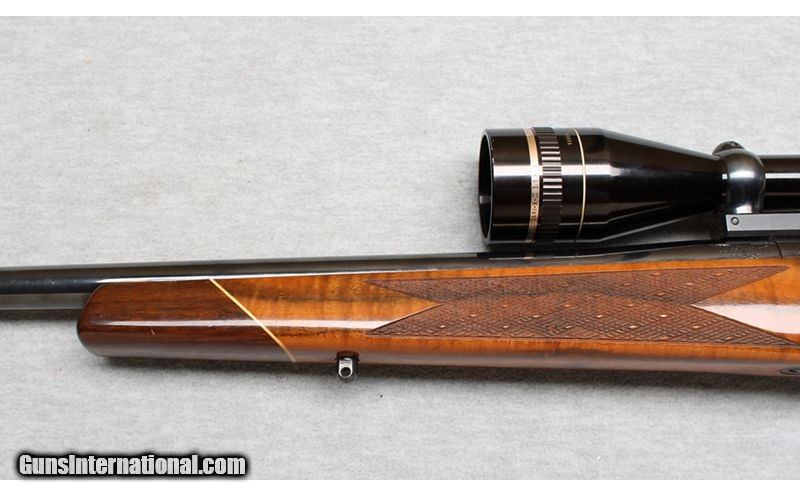 Description: This Weatherby Model Mark V Varmint Master is a right-hand bolt-action rifle in .22-250 Rem. Cal. It has a 24-inch barrel. It is outfitted with a Leupold Var-X III 3 x 10 Scope. It does not have iron sights. The stock has a checkered walnut pistol grip with a raised cheekpiece and rosewood cap. The forearm is a checkered walnut with a rosewood tip. This rifle is in excellent condition. Made in Japan. .22-250 Remington SOLD Metal Condition: Excellent with slight corrosion on the floor plate Wood Condition: Excellent with very minor handling marks Bore Condition: Bright with strong rifling Barrels: 24 Inches Triggers: Factory Stock Dimensions: LOP 13 3/4 Inches Fore End: Checkered Walnut Butt Pad: Factory rubber pad Sights: Leupold Var-X III 3 x 10 Scope Item Location: La Vista, NE |