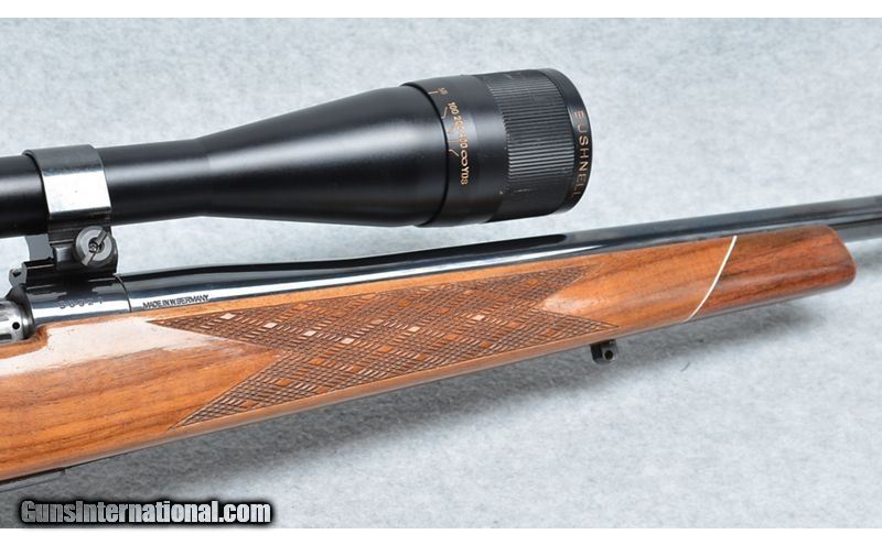 Description: This is a Weatherby Mark V Varmintmaster chambered in 22-250 Remington. The wood on the firearm is in good condition with only light scratches on the cheek rest and forearm. The checkering on the wood is still in good shape. The metal has some wear on the muzzle but is otherwise free of marks. The buttpad is in good shape showing only small signs of wear. .22-250 Remington SOLD Metal Condition: Good Wood Condition: Good Bore Condition: Good Barrels: 24 Inches Butt Pad: Good Item Location: Hazelwood, MO |