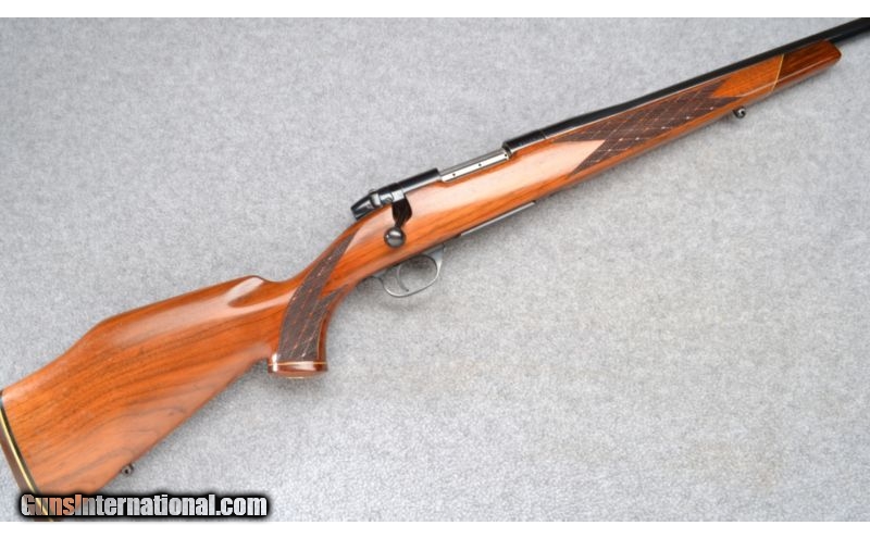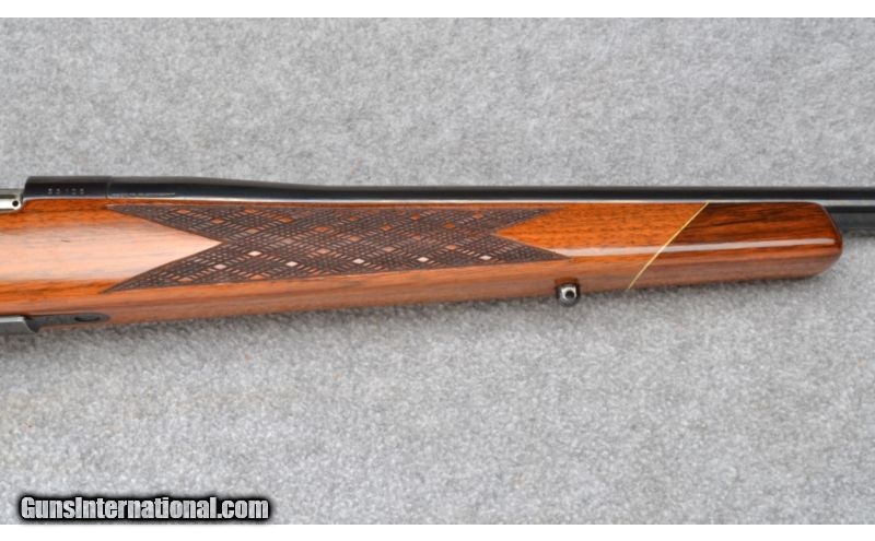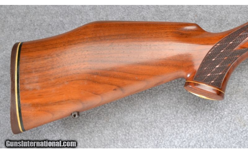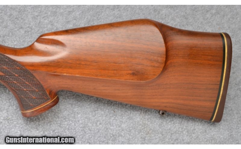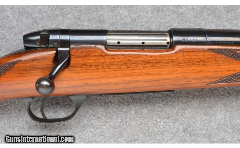 Description: Wood shows a few light handling marks with a bit of thinning finish. Blue and bore are excellent. No box. German manufacture. SOLD Manufacturer: S/N 53XXX Caliber Info: .224 Wby. Mag. Metal Condition: Excellent Wood Condition: Very Good Bore Condition: Excellent Barrels: 24" Sporter Triggers: Factory Stock: Checkered Walnut Pistol Grip with Contrasting Cap Stock Dimensions: 13 5/8" LOP Fore End: Checkered Walnut with Contrasting Cap Butt Pad: Brown Rubber Weight: 6 1/4 LB Sights: None Item Location: Wheeling, WV |