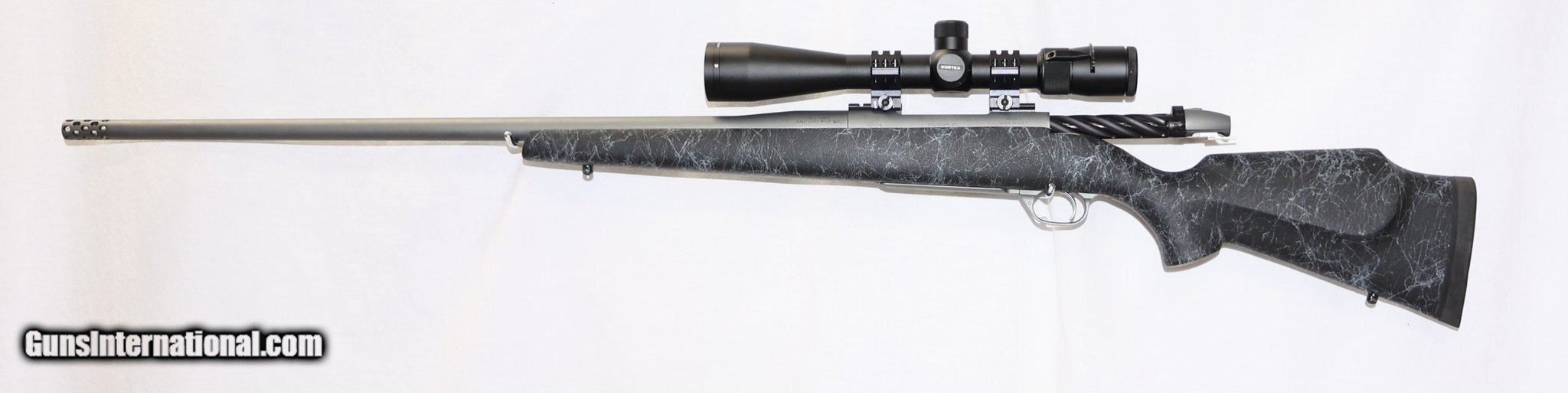 Description: Guns Listing ID: 591619 Pre-owned in \"LIKE NEW\" condition. This Weatherby Weathermark Mark V chambered in 338-378 Wby Mag is topped with a Vortex Viper 6.5-20x44 scope, and the muzzle has been ported. This is a great set up that‚s ready to hunt! The Weathermark historically represents the first Mark V to feature a Cerakote finish ready for the nastiest weather conditions. The #3 contour barrel provides accuracy combined with the hand-laid fiberglass Monte Carlo stock with aluminum bedding blocks. Spiral fluted bolt body in contrasting Graphite Black Cerakote gives full weather protection and adds aesthetics. If you are looking for the best value Mark V rifle for any adventure, you found it in the WeatherMark. Guaranteed SUB-MOA accuracy - all Mark V rifles are guaranteed to shoot a 3-shot group of 0.99 inches or less at 100 yd (SUB-MOA) from a cold barrel when used with Weatherby factory or premium ammunition TriggerTech‚s trigger provides true zero-creep break, extremely short over-travel, and is externally adjustable 54-degree bolt - the shortest in the industry (as compared to typical 90 bolt throw), allows for faster chambering on follow-up shots and greater bolt-to-scope clearance Cerakote is the industry leading thin-film ceramic coating, the Cerakote unique formula enhances physical properties including wear, corrosion, and chemical resistance while improving impact strengths, and hardness The Vortex Viper 6.5 - 20 x 50 Riflescope features fully multicoated optics with antireflective and ArmorTek scratch-resistant coatings. The lenses are locked in place, fore and aft, with machined locking rings to remain in alignment and withstand the shock of recoil and impact. Constructed of aircraft-grade aluminum with a hard-coat anodized finish, as well as O-ring sealed and argon gas filled for waterproof and fogproof protection, this riflescope is designed to stand up to a variety of environmental conditions. Low-glare matte finish. Manufacturer: WEATHERBY Model: MARK V WEATHERMARK Caliber Info: .338-378 WBY MAG Condition: Used - Non-Certified Barrels: 28" BARREL Action: BOLT ACTION Finish: black and grey Price: $1,849.99 Contact Seller |
