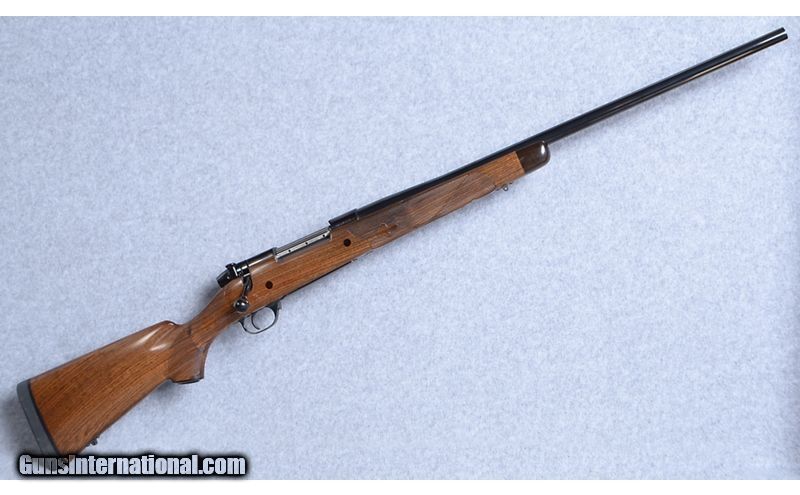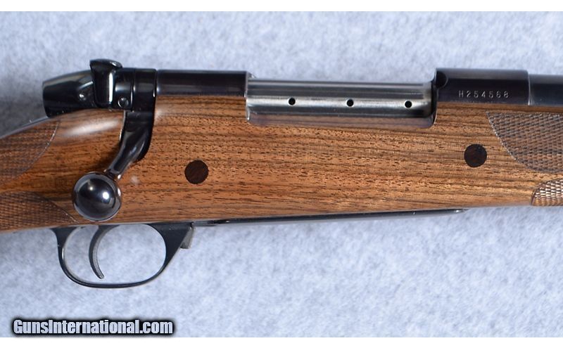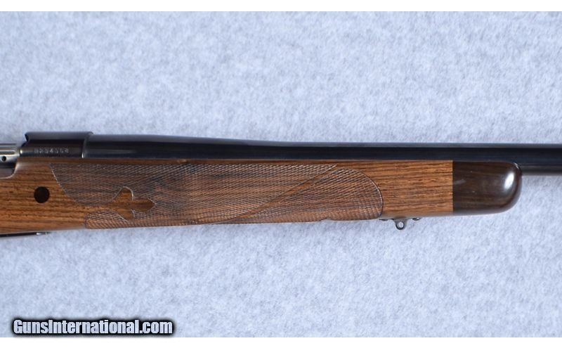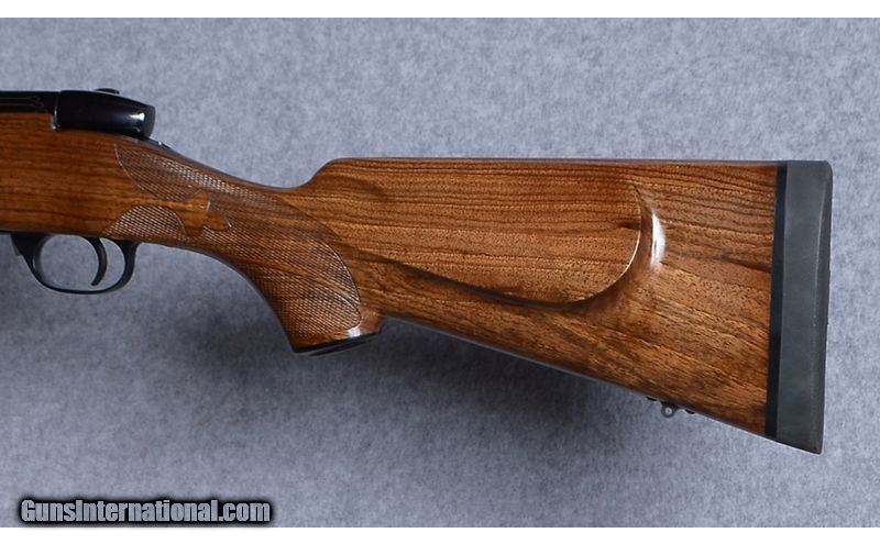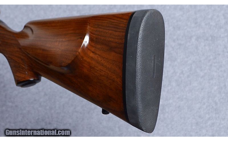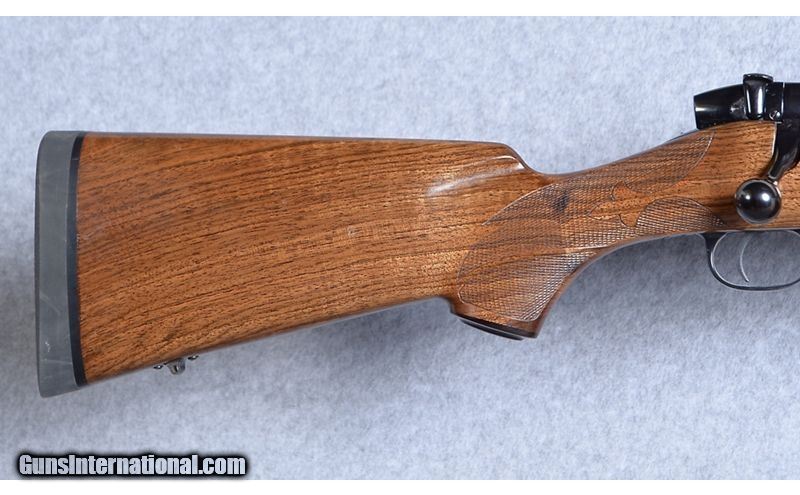 Description: This Weatherby Mark V in .375 H&H Magnum has a custom walnut Monte Carlo stock with Fleur-de-lis checkering on the fore end and wrist, as well as a rosewood cap on the fore end and a metal cap on the pistol grip. It is equipped with a Pachmayr Decelerator recoil pad to tame the recoil of the 375 H&H. It has an adjustable trigger. This Mark V was made in Japan in the early 1990s and is in excellent condition with the addition of the custom walnut stock. If you've ever wanted a rifle that is as powerful as it is beautiful, this may be the rifle for you. A quality rifle with this gorgeous stock will not be available for long. .375 H&H Magnum SOLD Metal Condition: Excellent Wood Condition: Excellent Bore Condition: Excellent Barrels: 22 Triggers: Adjustable Stock Dimensions: 13⅝" Length of Pull Fore End: Fleur-de-lis checkering and Rosewood fore end Butt Pad: Pachmayr Decelerator recoil pad Weight: 8.7 lbs Item Location: Boise, ID |