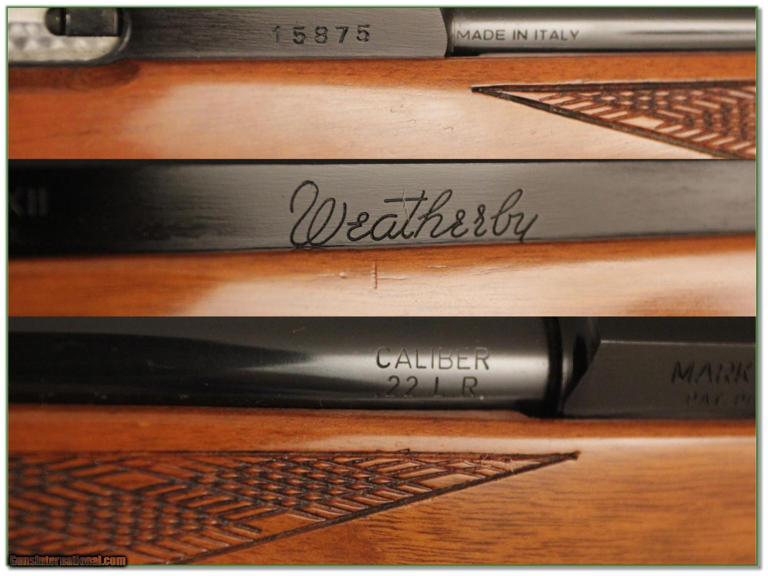 Description: This is an excellent condition Weatherby XXII 22 auto. It is an early Beretta made in Italy gun. Only a couple minor marks on the wood. I am selling this one on consignment and as such lay-a-way can’t be used. It does of course have the standard 3 day inspection. Shipping and insurance is $35 or $15 more if you want it shipped in a new Plano hard case. Please email me with any questions or larger pictures. (I now consign quality firearms only 10%! Let me know if you have any you would like to sell!) [15-1303] Payment: Payment is by Money Order, Cashiers Check or Personal Check. I can now also accept MasterCard and Visa with a 3% convenience fee. PayPal can be used for some items but never firearms. Please let us know if you would like to pay via PayPal. Shipping: The shipping charge will be listed in each description. It is $35 for most guns. Some heavy guns or those insured for over $2000 may be higher. Shipments to Alaska and Hawaii are higher because air shipment is required. Most firearms are shipped within 5 days of receipt of payment. We prefer shipping at the beginning of the week to avoid firearms in transit over weekends. We package all shipments carefully and insure them for the full purchase price, rounded up to the next $100. In the unlikely event that damage occurs, it is important that you save all packaging material for the claims process. Optics are shipped Priority Mail and most other non-firearm shipments are shipped First Class. Returns: Our return policy is simple. If for any reason you are not pleased with your purchase, you may return your item for a refund. The only exception is ammunition, it cannot be returned. It is important to us that you are happy. Guns cannot be fired or dissembled before returning them and must be returned in the same condition as received. Notification of a return must occur with-in 3 days of receipt at your dealer. Shipping, convenience and dealer fees are not refundable and are the responsibility of the buyer. Lay-a-way: If needed, we offer a 60 day lay-a-way option on most firearms. It is 1/3 now, 1/3 in 30 days and 1/3 in 60 days. Lay-a-way firearm sales are final. Consigning your firearms with Shooting Investments: We will help you get top dollar for your firearms. While most local guns shops charge 20% or more, our fee is only 10% with a minimum of $50. At your local gun shop it might take months to sell. Selling on-line provides instant access to thousands of interested buyers. You won’t find any other on-line dealer willing to sell your firearms for only 10% or listing every gun on 4 separate s. Selling through an House typically costs the seller 15% and the buyer an addition 15% (so 30%) and you have to wait several months to sell and longer to receive funds. If properly priced, we will sell your firearms in a week or two. Send us an email or give us a call and we’ll explain how easy it is for you to get top dollar. Trading: We collect guns and usually just trade for guns we want to add to our collections. We often sell guns for others wanting to purchase one of ours. We find this the most fair to both of us. Our Commission is only 10% and we hold the gun you want until yours sells. Please contact us if you want to sell one of yours to buy one of ours. Help for California Buyers: We are happy to ship to California. It is the buyer’s responsibility to make sure any item you buy is legal in your state. We are also happy to help with your purchase of a firearm from someone other than us. If you see a gun you would like to buy but the seller can’t or won’t ship to California we can help. You buy the gun and have it shipped to us. We’ll then ship it to your California dealer. The cost for this service is only $35 + shipping. Let me know if we can help! SOLD |