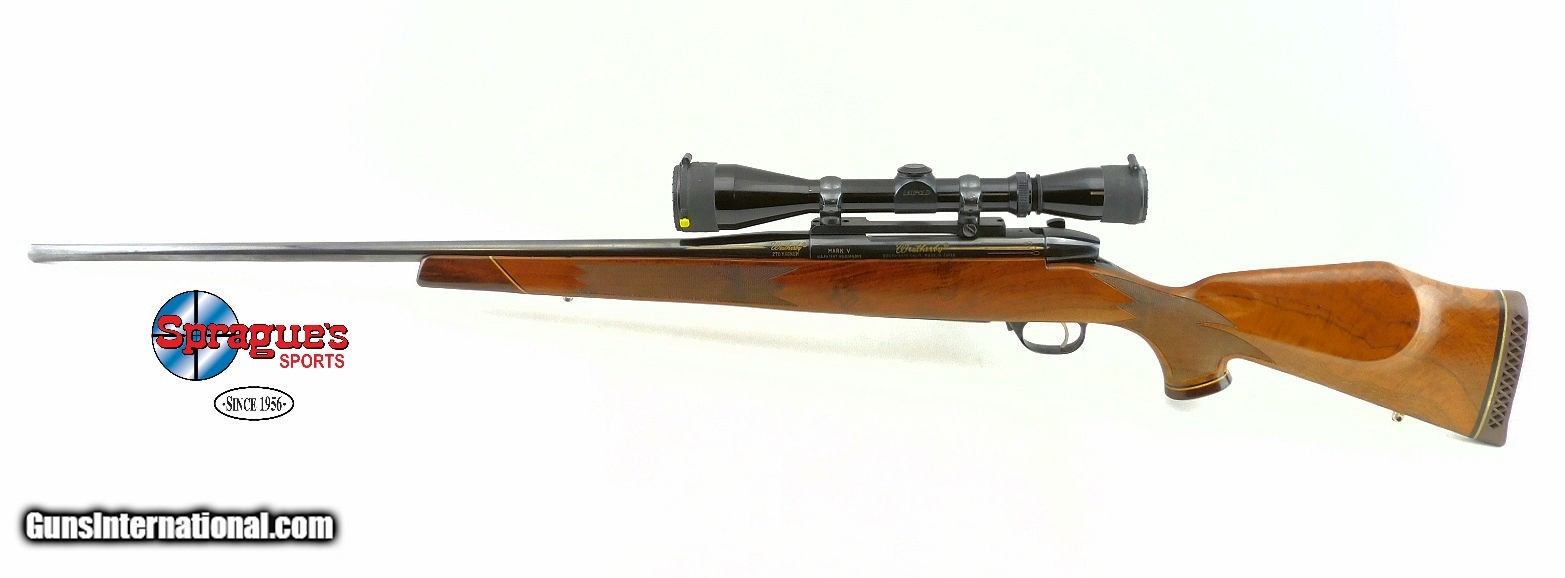 Description: BEAUTIFUL 35th Anniversary Weatherby MKV Rifle chambered in .270 WBYMAG. This rifle has serial number C-299 of 1000, a 24" barrel, shiny bore, good rifling, gloss blue finish, Leupold 3X9 VARI-X II rifle scope, jeweled fluted bolt, very nice checkered walnut grip stock with contrasting wood grip - forearm caps, 13 3/8" LOP, very light handling marks, gold trigger, gold sling studs, and Weatherby vented recoil pad. See pictures for an appreciation of this rifle! This Weatherby MKV will be a GREAT addition to your collection and next hunting experience! Add 3% for Credit Card Shipping $45.00 in the 48 contiguous United States SOLD |