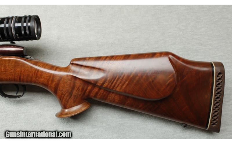 Description: Excellent condition, light wear, few small nicks and scratches. Classic Weatherby bolt action hunting rife, 24" barrel, polished blue metal, smooth action & crisp trigger and weatherby 3-9x scope. Gloss finish smooth wood stock with contrasting forend tip, decorative grip cap, right hand cheek rest and White Line recoil pad. .300 Weatherby Magnum SOLD Chambers: Bolt action Metal Condition: Excellent Wood Condition: Excellent Bore Condition: Bright Barrels: 24 Triggers: Factory Stock Dimensions: 14" LOP Fore End: Smooth Butt Pad: White Line pad Sights: Weatherby 3-9x scope Item Location: La Vista, NE |