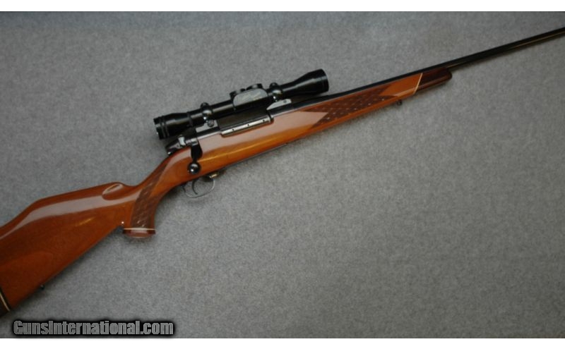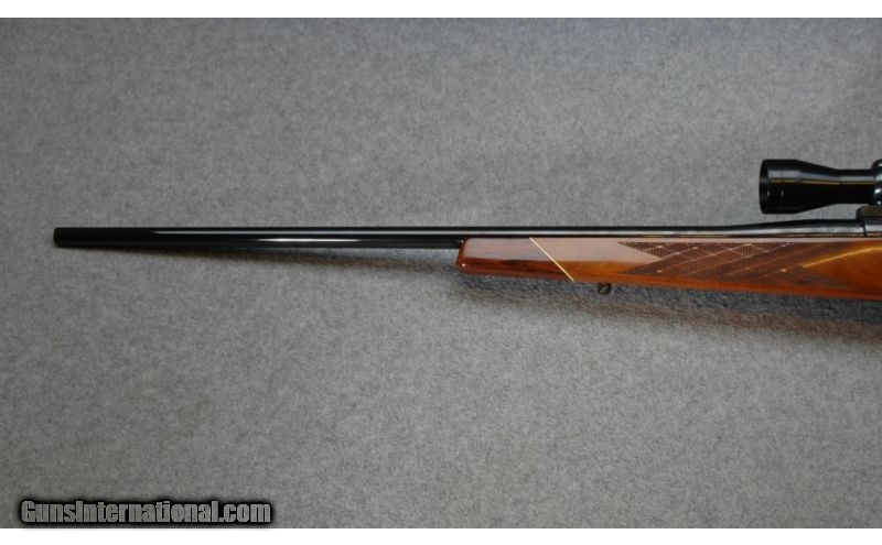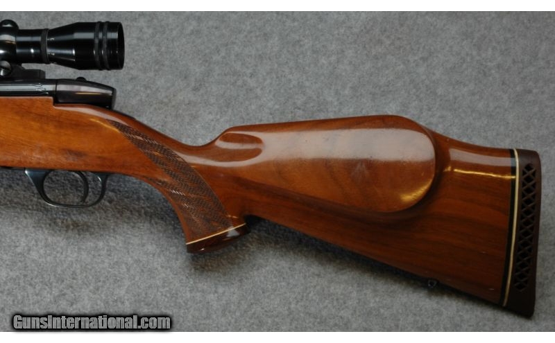 Description: • Firearms are subject to pending sales. • Replies to emails may take 24-72 hours to respond to (excluding weekends). • Although we strive for accuracy, we are not responsible for pictorial, editorial or typographical errors. The pictures provided are the actual pictures of the gun that is for sale, not a stock photo! PUT THE GUN ON YOUR CABELA'S CLUB VISA AND EARN POINTS TOWARDS YOUR NEXT PURCHASE! DON'T FORGET WE DO HAVE A LAYAWAY PROGRAM! SOLD Caliber Info: .300 Weatherby Magnum Chambers: Fixed hinged floor plate magazine Metal Condition: Very good with very light handling and wear marks Wood Condition: Very good with light handling marks but the finish is starting to show fine age cracks Bore Condition: Very good bright shinny rifling Barrels: 24 inch Triggers: Single action Stock: One piece gloss walnut with skip line checkered pistol grip that has a rosewood end cap Stock Dimensions: LOP - 13 5/8 inch Fore End: Gloss walnut with skip line checkered hand hold and rosewood tipped forearm Butt Pad: Weatherby (Pachmayr) ventilated red rubber butt pad Weight: 8 pound 12 ounce Sights: No sights but with mounted Weatherby 2-7X40 Scope Extras: With no box and no extras Item Location: Hammond, IN |