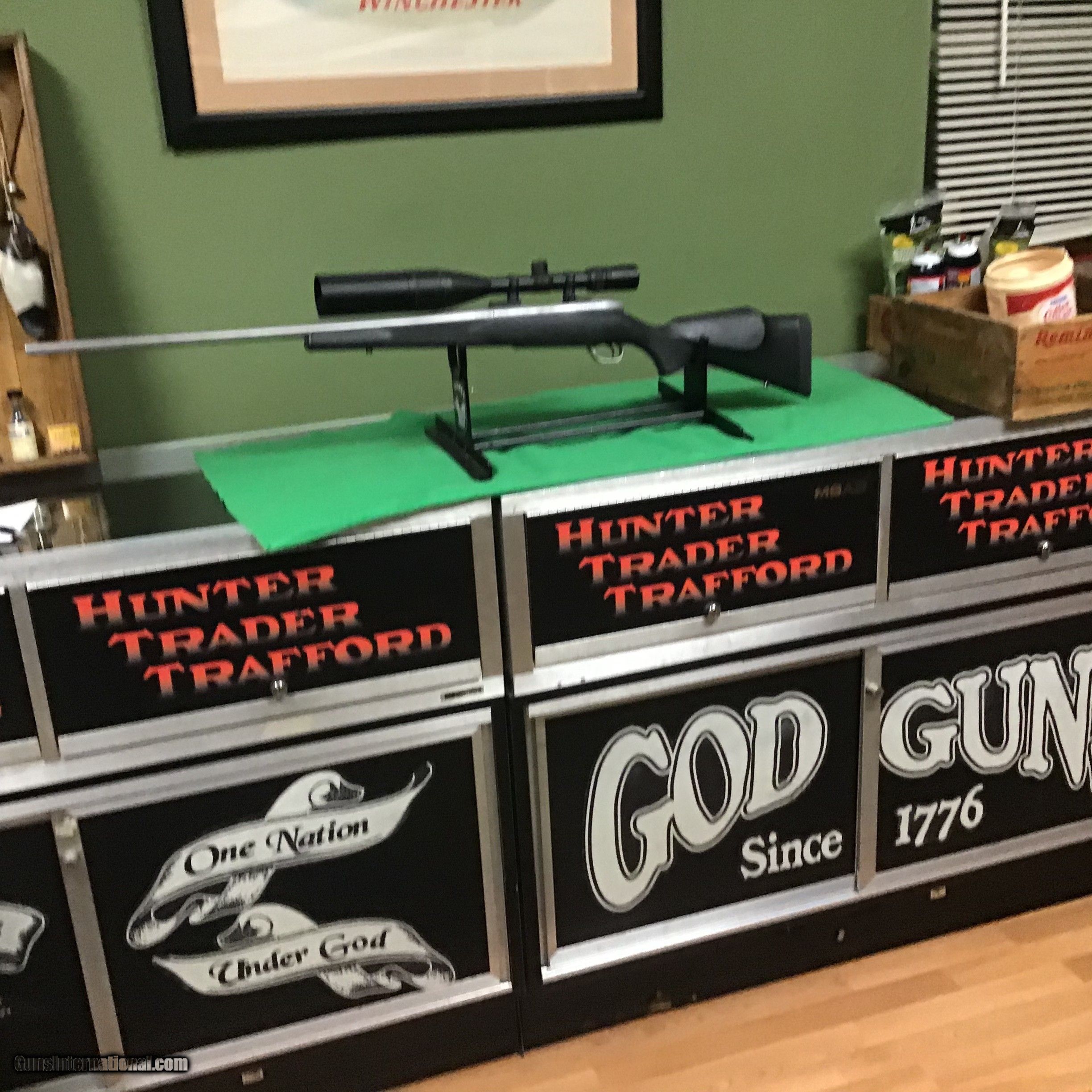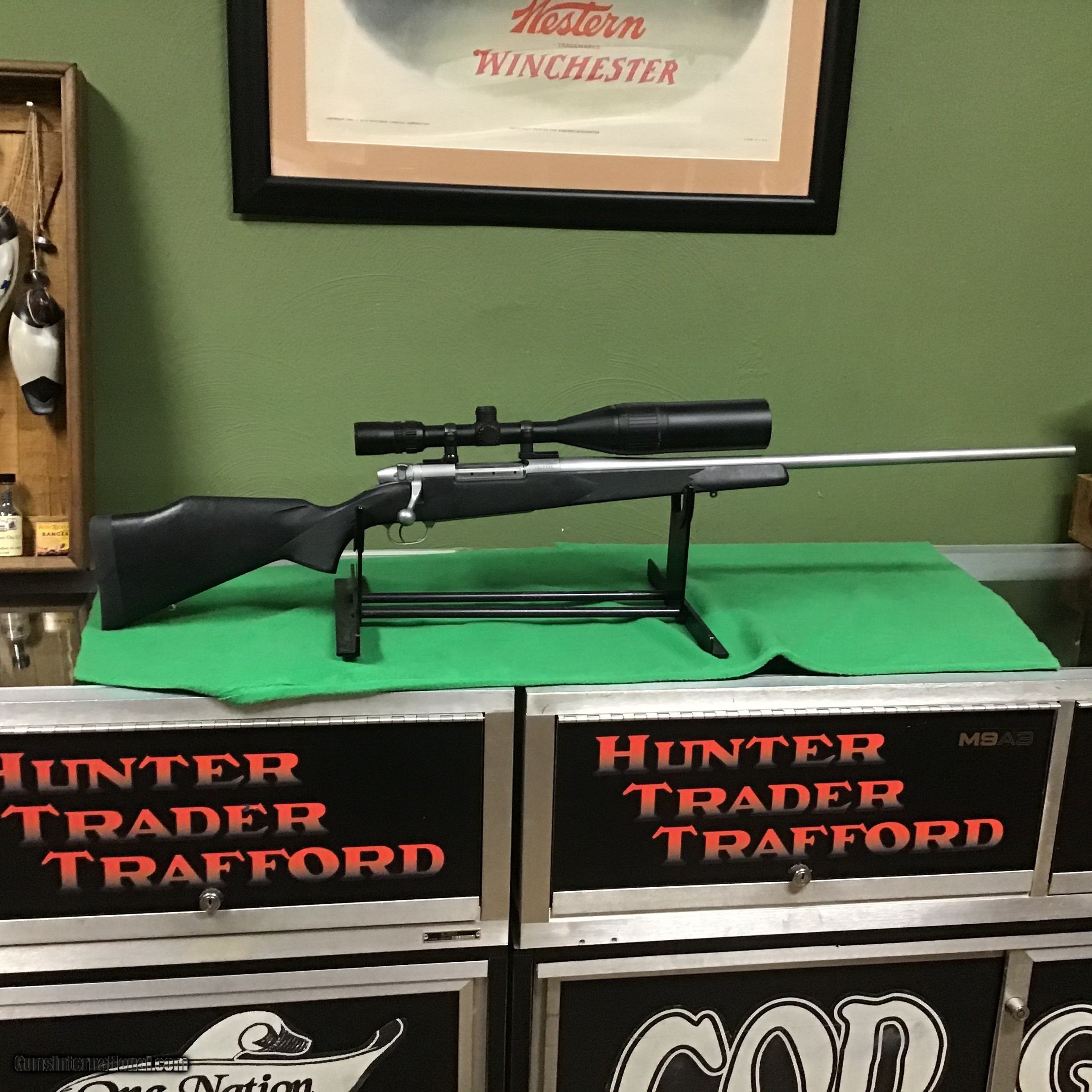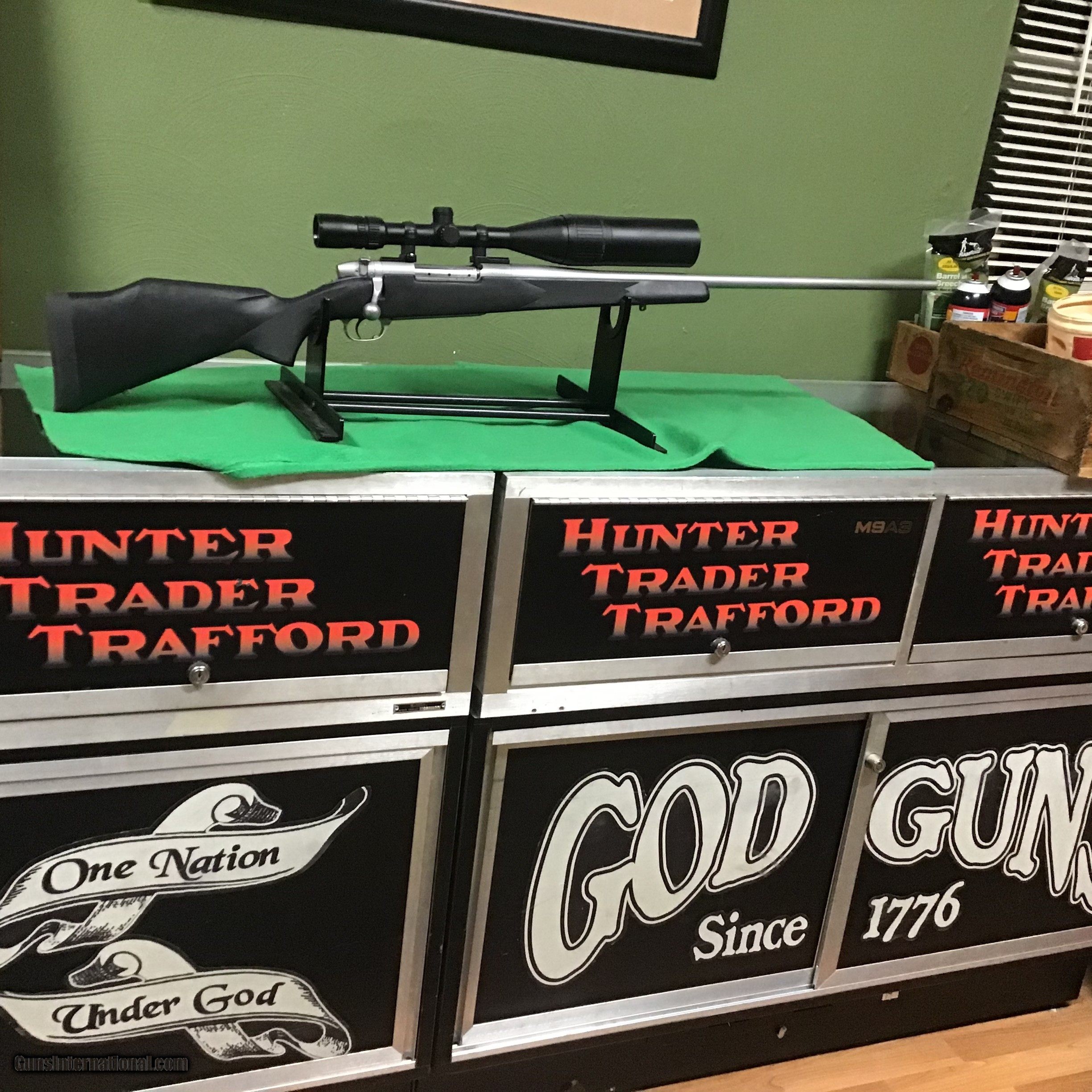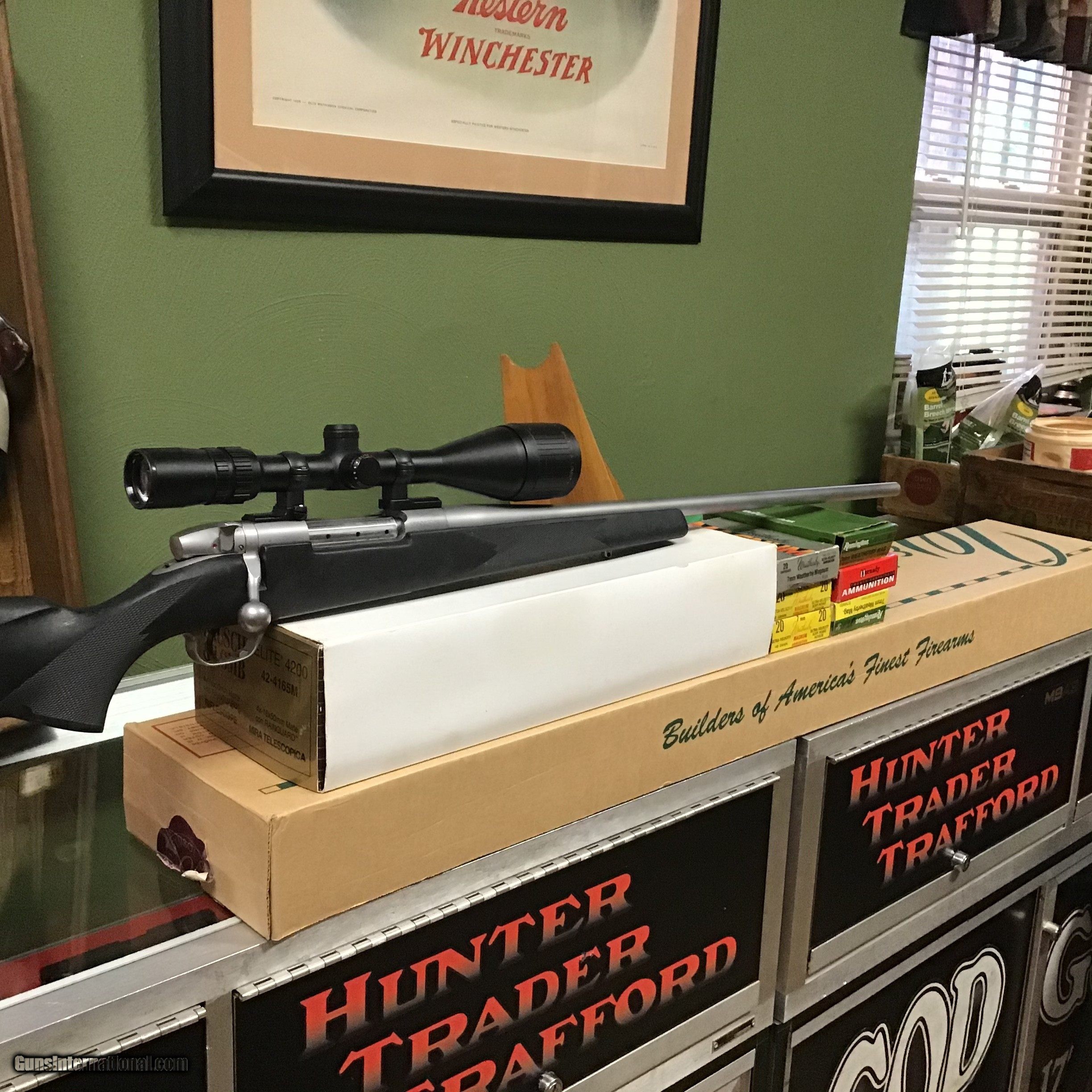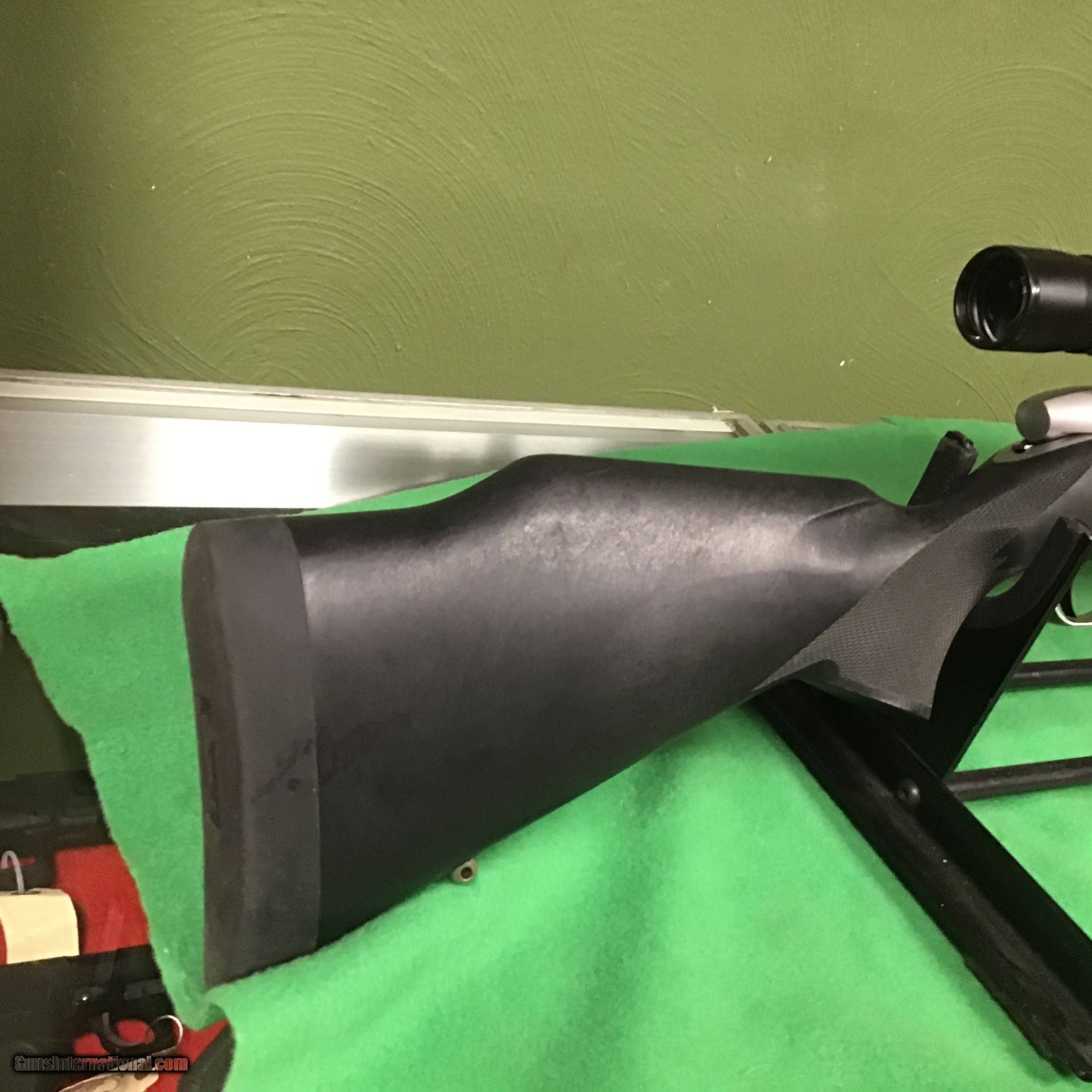 Description: For sale is a Weatherby Mark V Stainless Synthetic in 7mm Weatherby magnum with a Bushnell 4200 4X16X50 with rainguard. Have original boxes for everything plus 4 full boxes of ammo with another containing just 15. 1 box Rem. 140 gr. 1 box Hornady 154 gr. SST , 2 Weatherby Tiger boxes 1) is 140gr. other is 160gr. both full Nosler SP. 1 box Weatherby 175 gr. The rifle has only a box through it, never hunted with. Buyer pays actual shipping, and additional for ammo. Need more info. Give us a call. Gun must ship to a FFL, all state and federal laws apply. Buyer will pay actual shipping on both. 412-554-7891 SOLD |