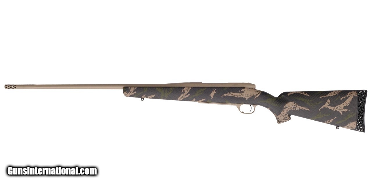 Description: Manufacturer: Weatherby, Inc. - WY Model: Mark V® Backcountry SKU: MBC01N280AR6B Caliber: .280 Ackley Improved Capacity: 4 + 1 Rounds Barrel Length: 24" #1 MOD, Fluted Action / Barrel OAL: RH 26” Rate of Twist: 1:9" Fluted Barrel / Trigger Guard / Receiver: McMillan Tan Cerakote Bolt / Bolt Knob / Safety: Graphite Black Cerakote Stock – Visible Carbon Fiber with Green and Tan Sponge Pattern Accents Overall Length: 46.125" Length of Pull: 13.5" Weight: 5.4 Lbs All items are factory new in box unless otherwise stated. Based on the information available to us, the above specifications describe this item to the best of our knowledge. For further information, please contact or visit the manufacturer's . SOLD |