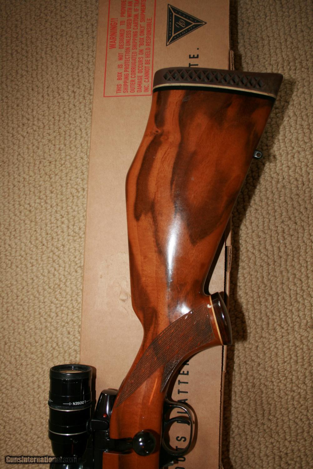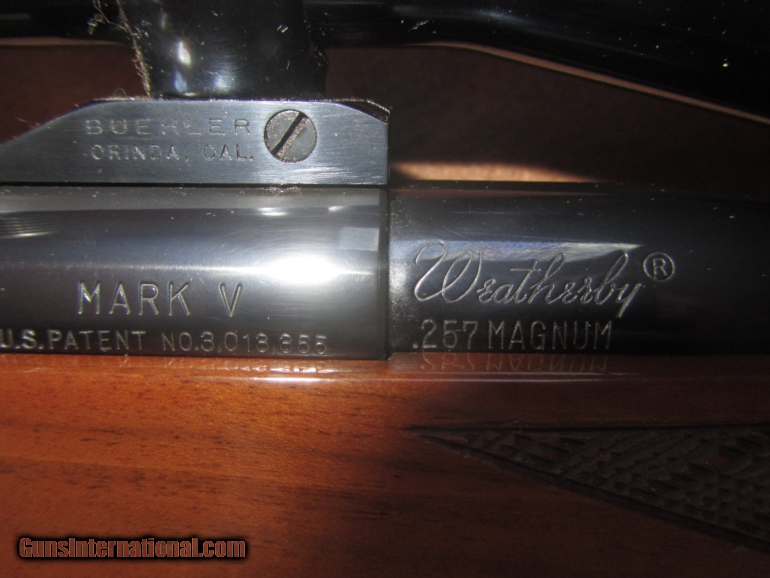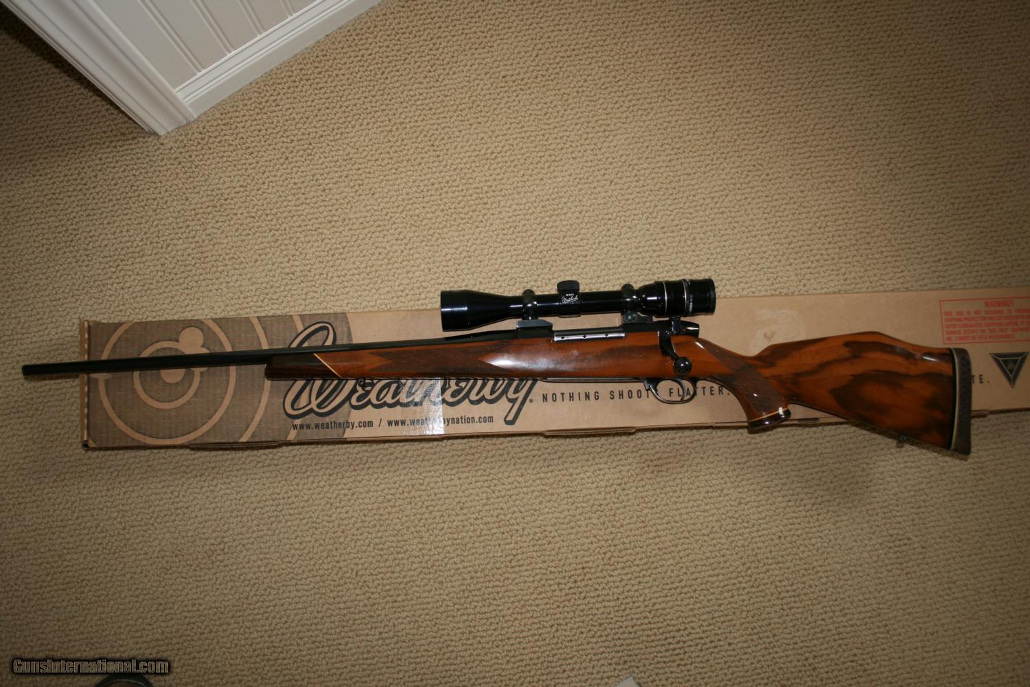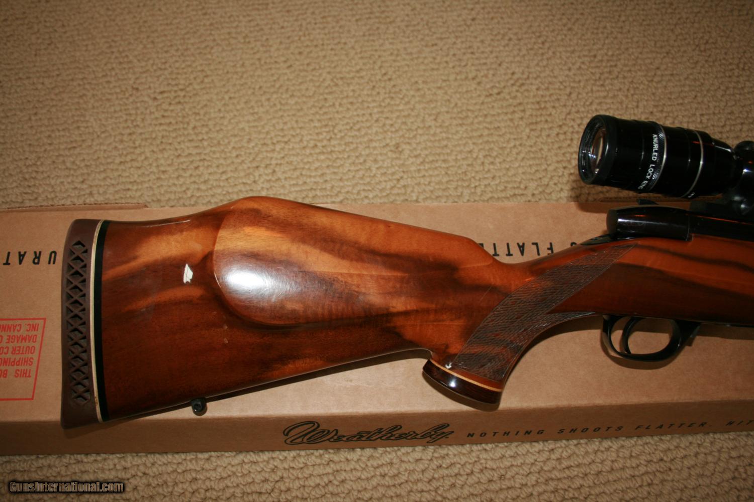 Description: Weartheby Mark V Deluxe Rilfe Chambered in .257 Weatherby Mag Cartridge Comes with Weatherby 3x-9x40mm Scope Wide Angle View Lense, I was told that it is a Nikon scope that Weatherby had branded with the Weatherby Logo and sold as a custom package. Beautiful condition with the following visual observations (also shown in pictures) 1) Right Side of Monte Carlo Stock, small smudge in finish behind raised cheek surface 2) Light abrasion on bottom of shell loading door 3) Minor bluing wear (about 5/8" long by 1/16" wide) on barrel, left side 3" infront of stock Would rate stock condition on a scale of 1-10 as 8.5 Would rate metal condition on a scale of 1-10 as 9 Serial Number H122169 Would be happy to send any other pictures that you might want to see. Please call Patrick (810) 360-5820 for any additional information. pat.flynncharter Will ship in a hard case, buyer to pay for agreed upon shipping charges. SOLD Manufacturer: Weatherby Model: Mark V Caliber Info: .257 Mag |