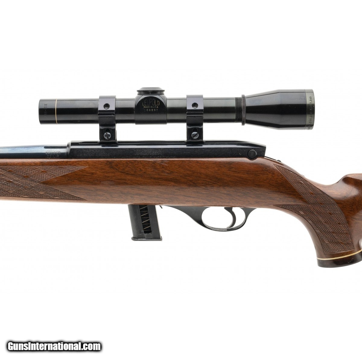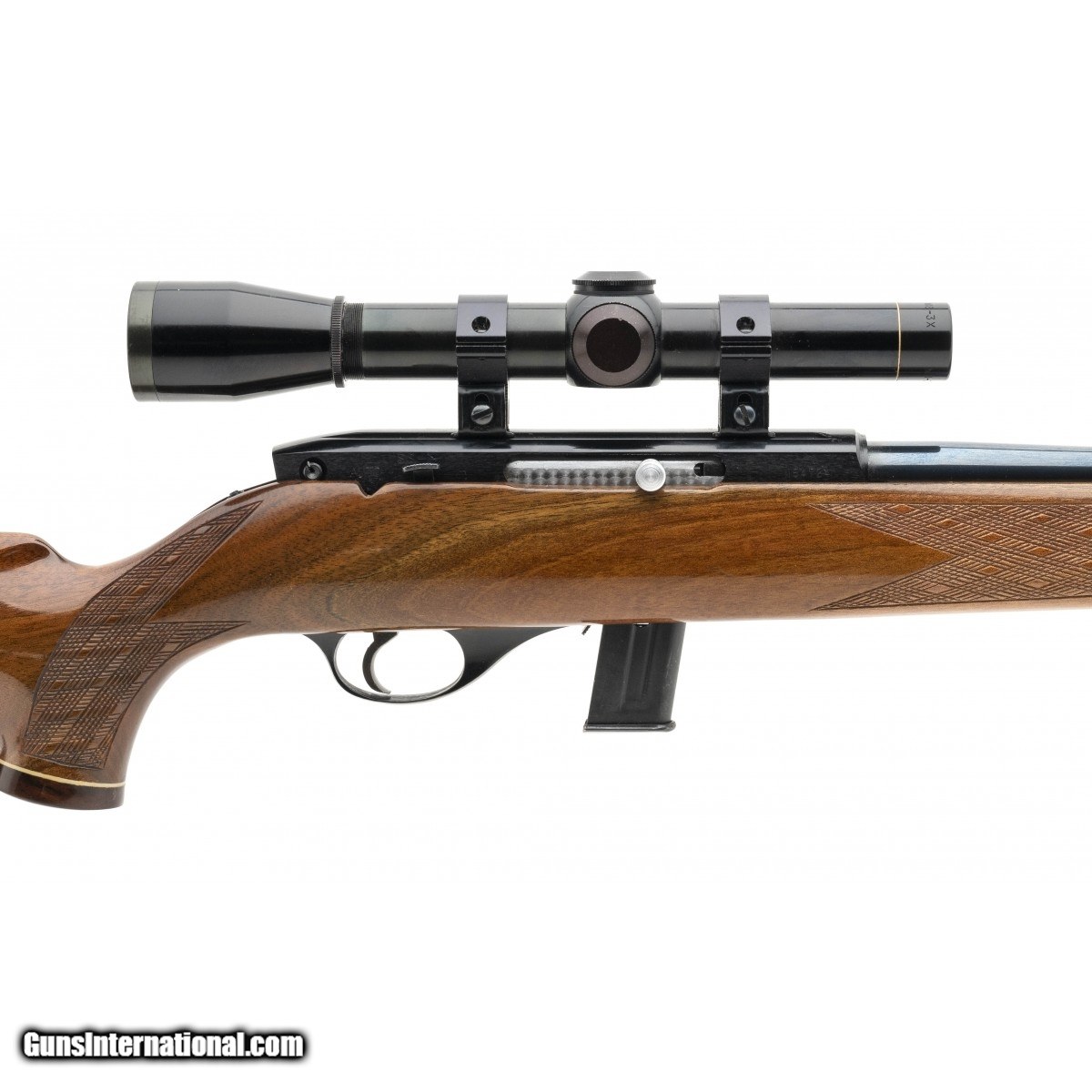 SN: N54724. Circa 1970s. .22 Long Rifle with 24"" barrel, bore is excellent. Rimfire semi automatic rifle with 99% original bluing, detachable magazine and checkered Monte Carlo style walnut stock. Overall very good condition. Comes with Leupold M8-3X riflescope.