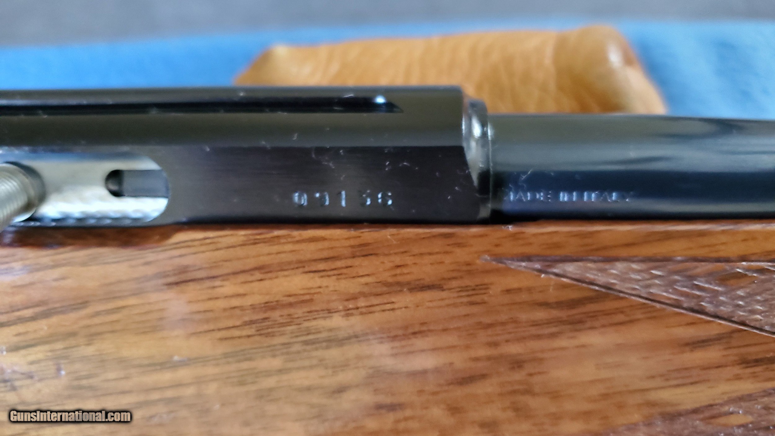 Description: Very early Italian Weatherby XXII. Ser No. :91xx. 22 cal. semi auto. Collector quality: Bluing is perfect, 100 %. Wood is 99 % Three leaf fold down rear sight. 24 inch barrel. has auto or single shot selector switch. 5 shot mag. Bore and rifling perfect. Very little prior use. Safe queen since purchase in 2000. Weatherby Mark XXII 4x50 scope also available for purchase by rifle buyer Shipping $40 to lower 48, $50 to AK. SOLD PENDING RECEIPT OF FUNDS SOLD |