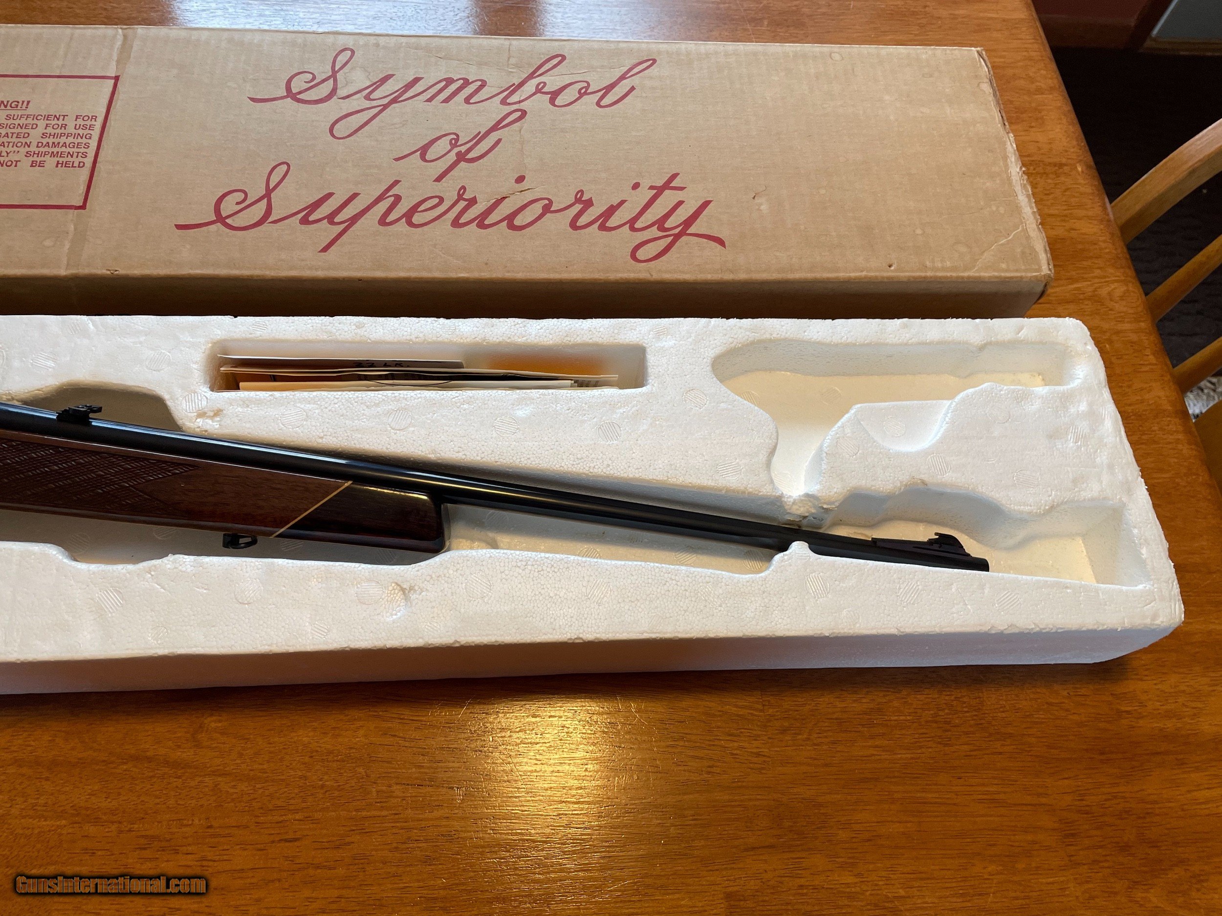 Description: Weather by XXll 22LR NIB only test fired with target and paperwork! 1979 mfg. clip fed semi-auto! Rose wood fore end tip and pistol grip cap! Absolutely beautiful gun! 899.00 plus 35.00 shipping and insurance! SOLD Curio/Relic: Yes Manufacturer: Weatherby Model: XXll Bore: Excellent Chambers: Excellent Condition: Excellent Metal Condition: Excellent Wood Condition: Excellent Bore Condition: Excellent Barrel Type: Round Action: Semi-Auto Stock: Wood Butt Pad: Factory pad Manufacture Date: 1979 |