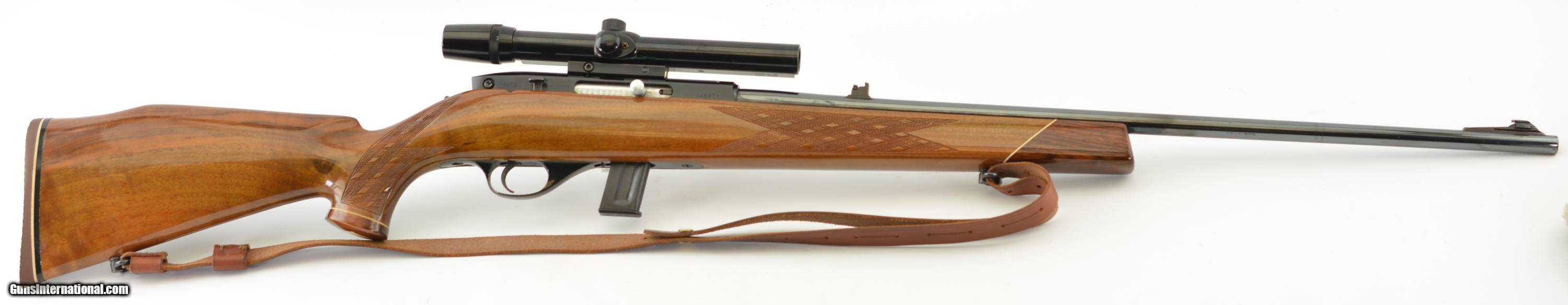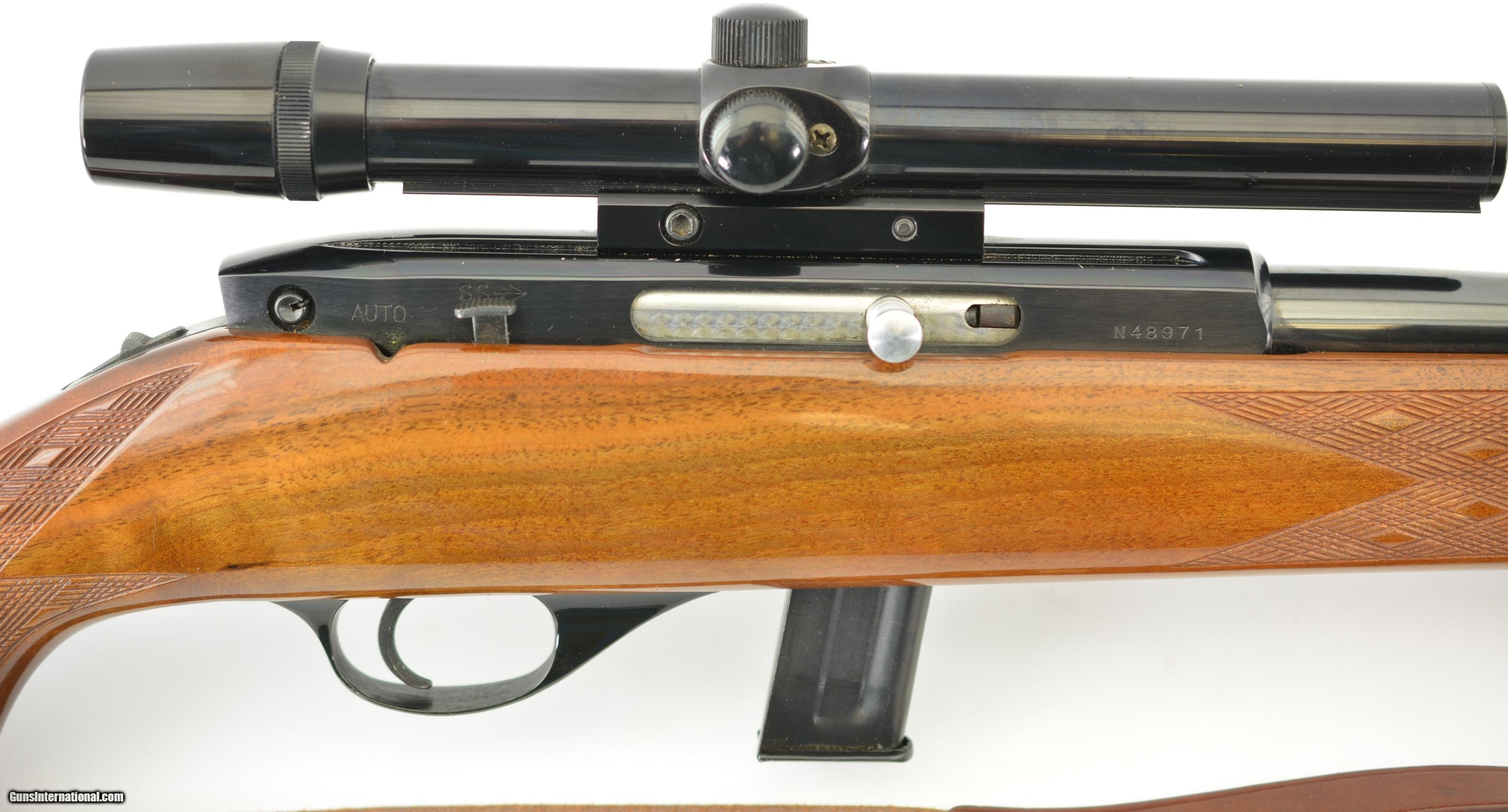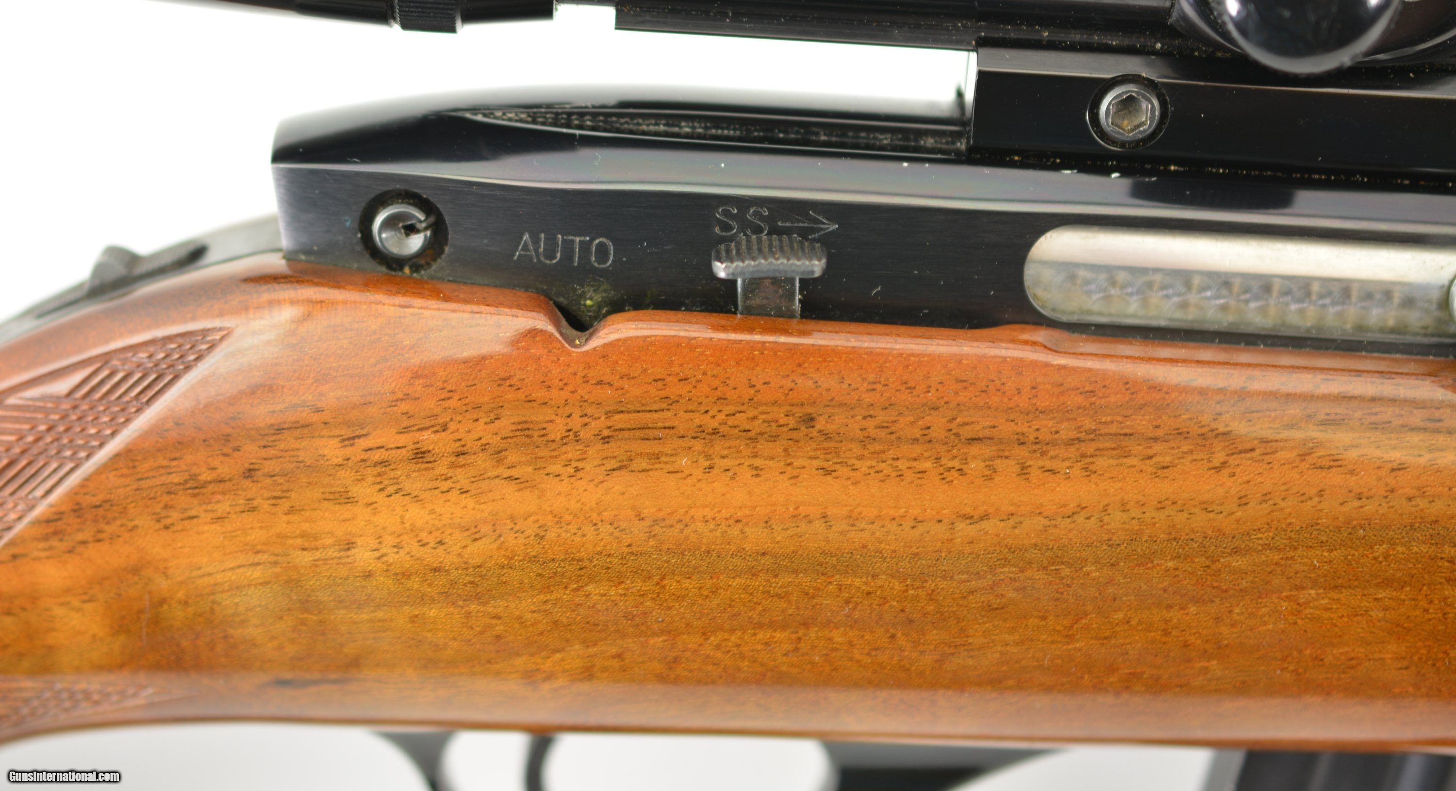 Description: Serial #N48971, .22 LR, 24" barrel with a bright, excellent bore. This is a Nikko Japan produced, Weatherby Mark XXII rifle that has the desirable high quality wood with and laser checkering, spacers between the stock and rosewood forend and grip cap along with the folding rear sight. This gun also sports a Bushnell 4X custom 22 scope and is equipped with the selector to go from single shot to semi-automatic. The rifle is in excellent condition with the barrel, frame and trigger guard retaining virtually all of the original high polish blue finish with some light use marks on the receiver and scattered along the barrel. The stock is in excellent condition with the original high gloss finish still shining with scattered light surface marks, scratches and several surface level cracks on the heel along the top and left edge also surface level scratches on the grip cap. The gun comes with one original 10 round magazine. A beautiful and collectible rifle ready for the woods and display cabinet. FFL SOLD Manufacturer: Weatherby Model: Mark XXII Caliber Info: .22 LR Gauge Info: .22 LR |