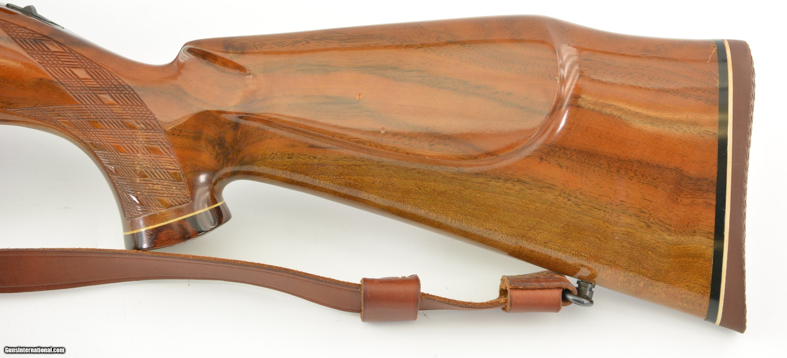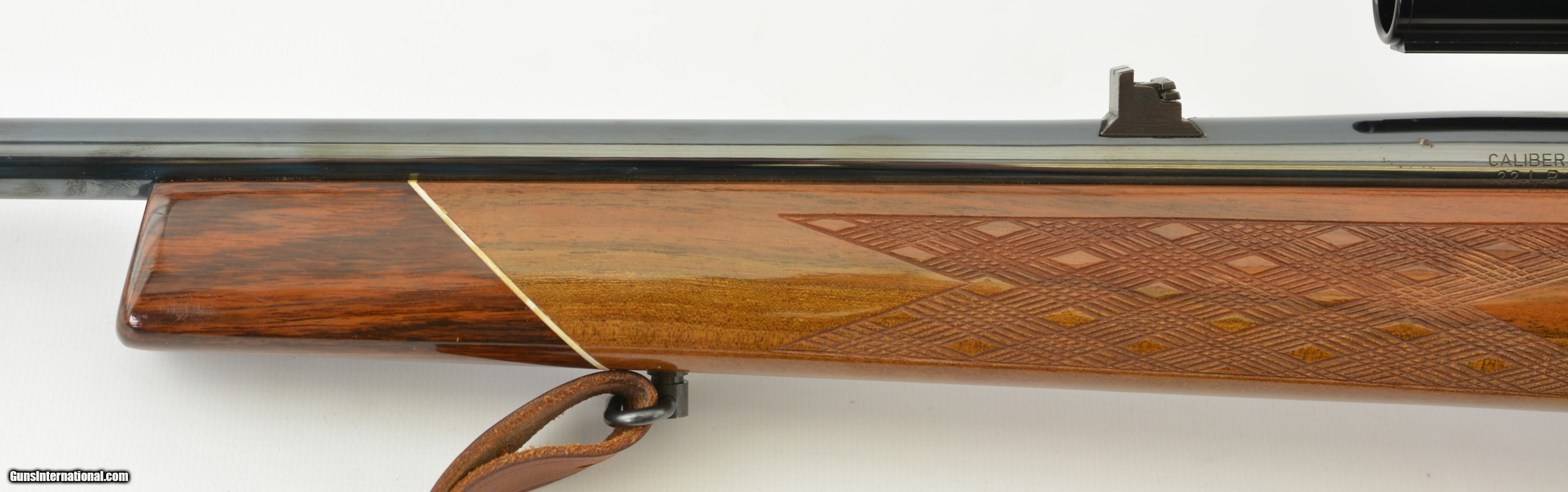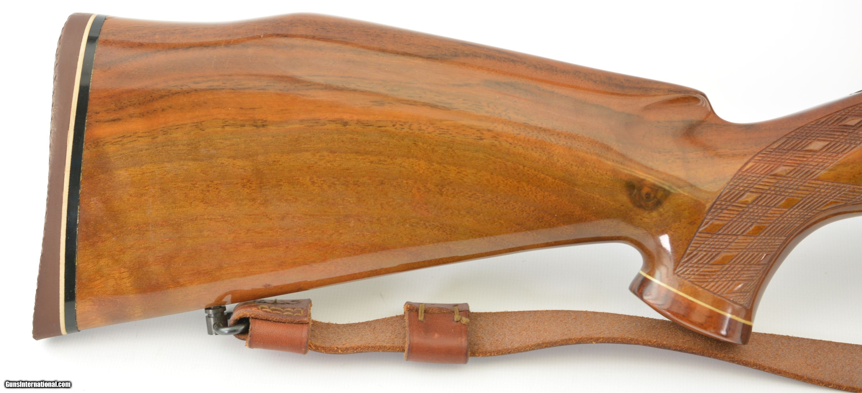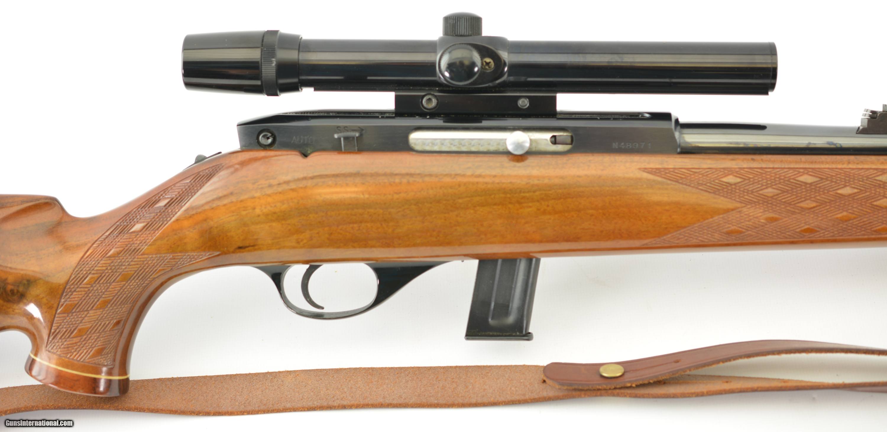 Description: Serial #N48971, .22 LR, 24" barrel with a bright, excellent bore. This is a Nikko Japan produced, Weatherby Mark XXII rifle that has the desirable high quality wood with and laser checkering, spacers between the stock and rosewood forend and grip cap along with the folding rear sight. This gun also sports a Bushnell 4X custom 22 scope and is equipped with the selector to go from single shot to semi-automatic. The rifle is in excellent condition with the barrel, frame and trigger guard retaining virtually all of the original high polish blue finish with some light use marks on the receiver and scattered along the barrel. The stock is in excellent condition with the original high gloss finish still shining with scattered light surface marks, scratches and several surface level cracks on the heel along the top and left edge also surface level scratches on the grip cap. The gun comes with one original 10 round magazine. A beautiful and collectible rifle ready for the woods and display cabinet. FFL SOLD Manufacturer: Weatherby Model: Mark XXII Caliber Info: .22 LR Gauge Info: .22 LR |