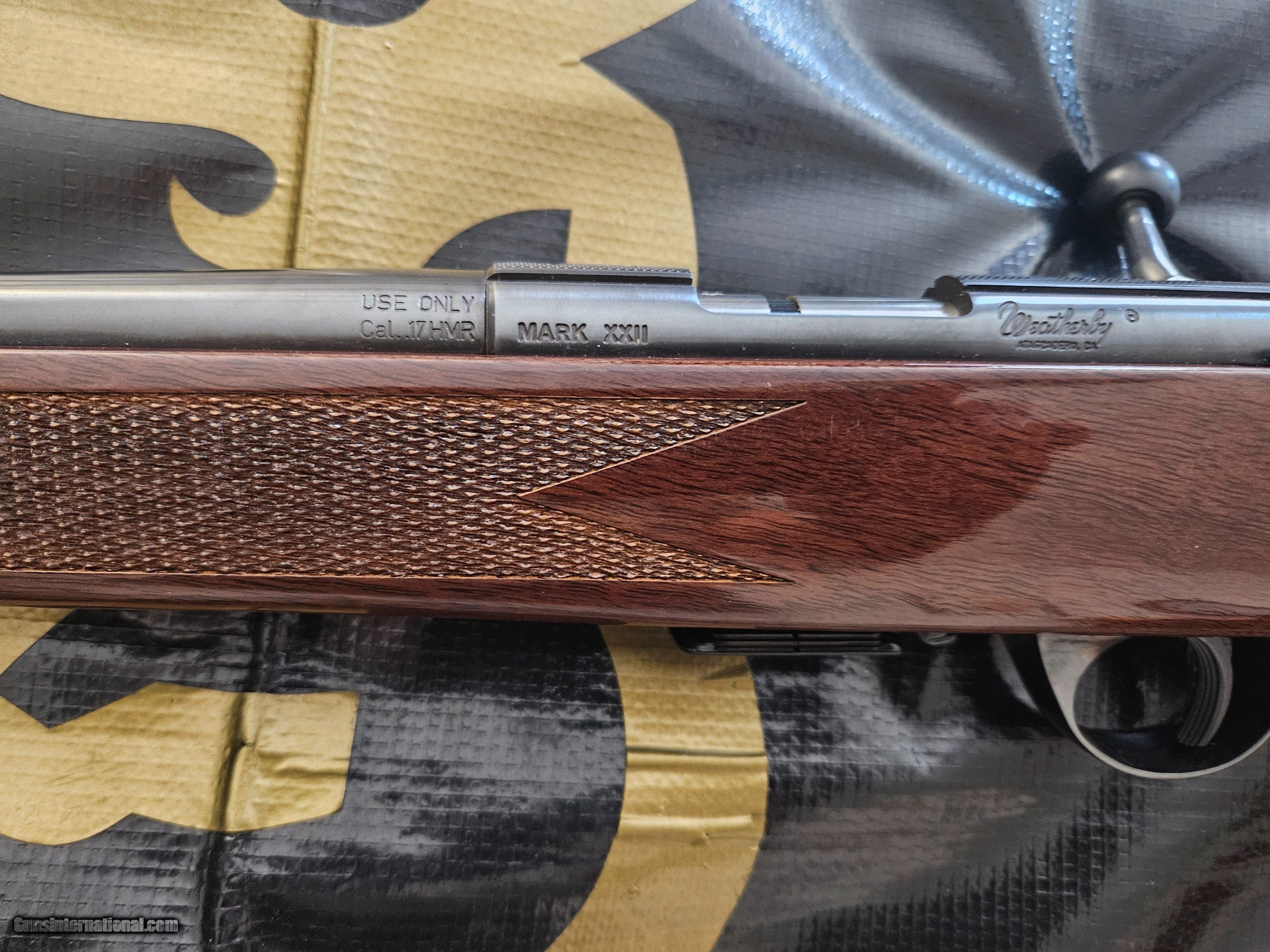 Description: Weatherby Mark XXII 17HMR that is New, no box. Made for Weatherby in West Germany by Anschutz. Credit Cards add 3%. Shipping and Insurance is 75.00. SOLD Rifle Caliber: .17 HMR |