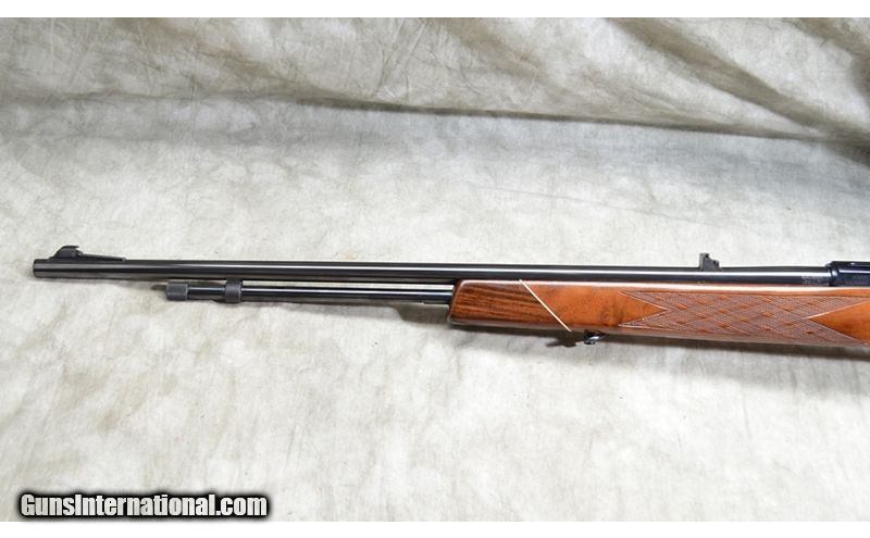 Description: This full-size .22 features a walnut Monte Carlo stock. It has Rosewood tip and grip caps and a figured grain. The metal parts show very little to no wear and it could pass for a new gun. .22 Long Rifle SOLD Chambers: 15 Metal Condition: Excellent. Wood Condition: Very good to excellent. A couple of shallow dings on the stock. Bore Condition: Shiny and bright. Barrels: 24-inch Triggers: Factory trigger. Stock Dimensions: 13-7/8 inch LOP. Fore End: Checkered walnut with Rosewood tip cap. Butt Pad: Rubber pad. Weight: 6 lb - 8 oz Sights: "Gold bead and folding leaf open sights, Grooved for scope. Item Location: Rogers |