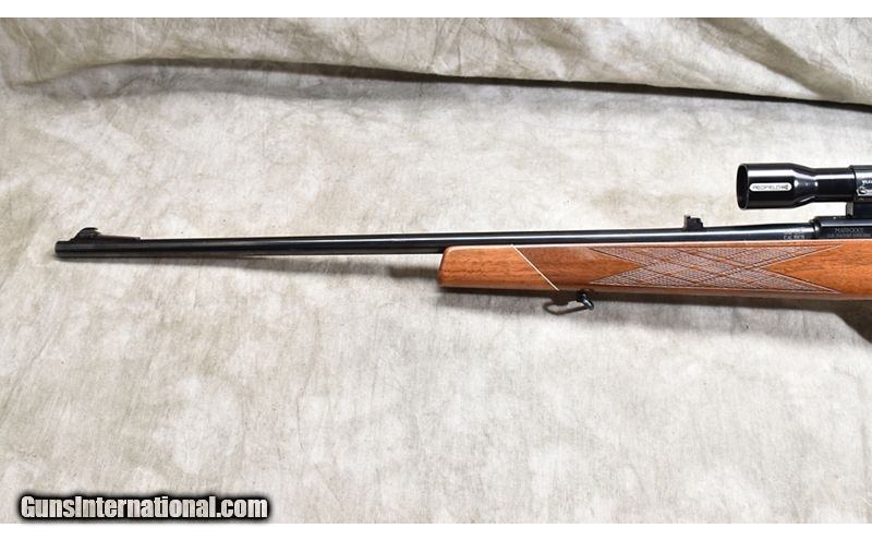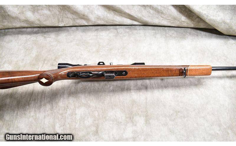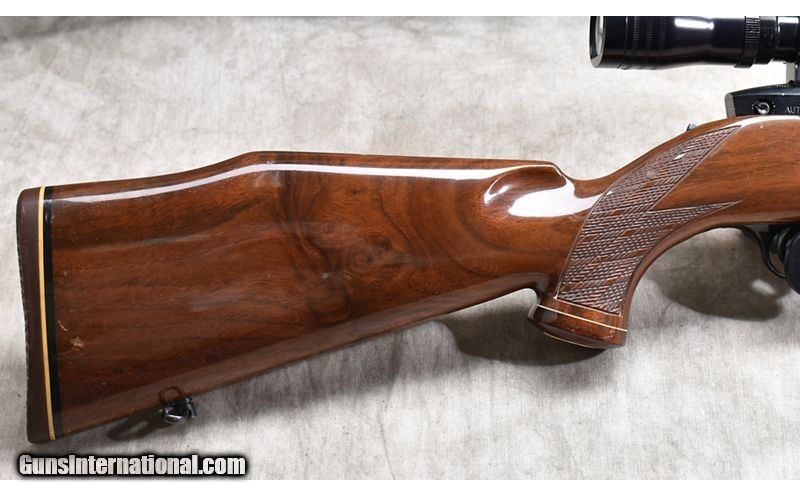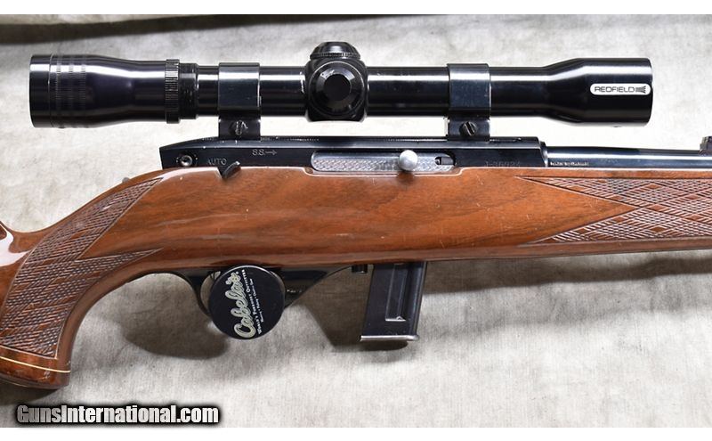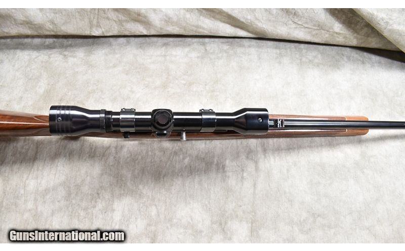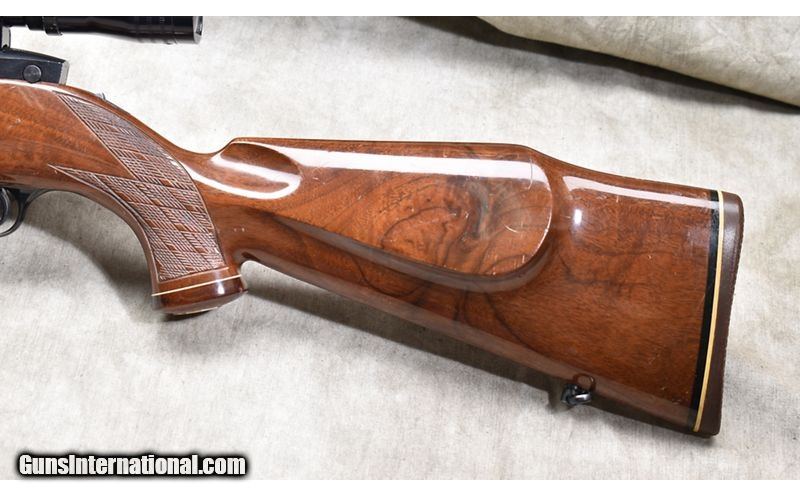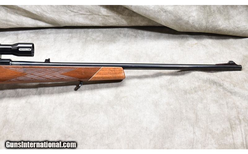 Description: Very nice 'working' rifle featuring nice walnut Monte Carlo stock with contrasting tip and grip caps. The bolt is jeweled, and it has a detachable box magazine. Date of manufacture is in the period 1967-71. It is no "rack rascal." It has been carried and hunted and ready to go again. .22 Long Rifle SOLD Chambers: 10 Metal Condition: Very good. There is a scratch or two. Wood Condition: Good. There are a number of scratches. Bore Condition: Shiny and bright. Good rifling. Barrels: 24-inch Triggers: Factory trigger Stock Dimensions: 13-3/4 inch LOP Butt Pad: Rubber pad Weight: 6 lb - 14 oz Sights: Gold bead and express rifle folding leaf "iron" sights. Outfitted with a Redfield LO-PRO scope. Item Location: Macon, GA |