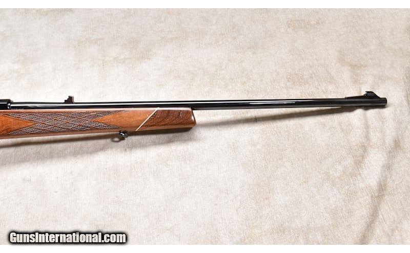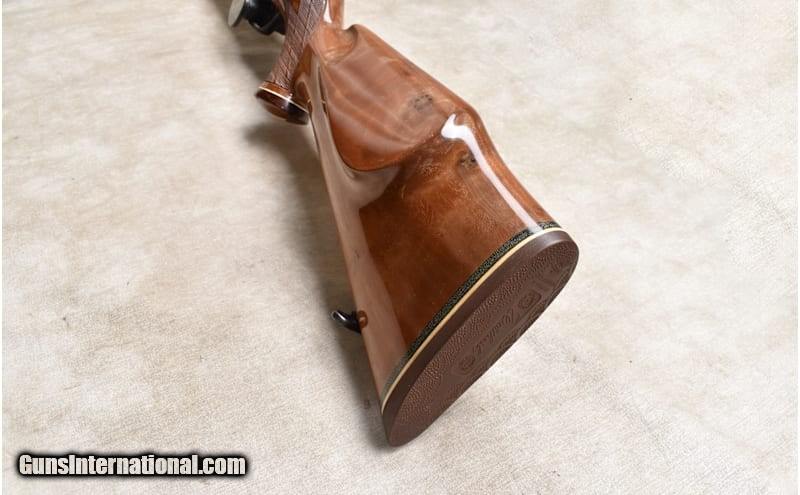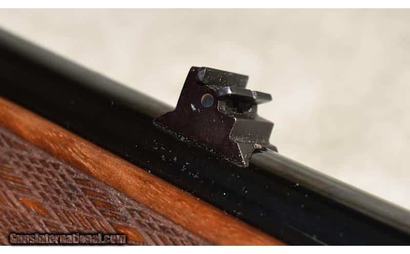 Description: This Weatherby was manufactured by KTG, JAPAN, during the third phase, 1967-71. It features a full Monte Carlo stock with skip line checkering, and Rosewood tip/grip caps. The trigger has an over-travel adjustment screw. The sights are a gold bead and big game rifle type folding leaf rear sights. These rifles were, and are, highly regarded for their accuracy. .22 Long Rifle Chambers: 5 rounds Metal Condition: Excellent. Wood Condition: Excellent. Bore Condition: Shiny and bright with good rifling. Barrels: 24 inches Triggers: Factory trigger with over-travel adjustment screw. Stock Dimensions: LOP: 13-5/8 inches Fore End: High grade walnut with rosewood tip and white line spacer. Butt Pad: Rubber pad. Weight: 6 lb Sights: Gold bead and folding leaf "Express Rifle" type open sights. Grooved for scope. Item Location: Rogers Price: $949.99 Contact Seller |