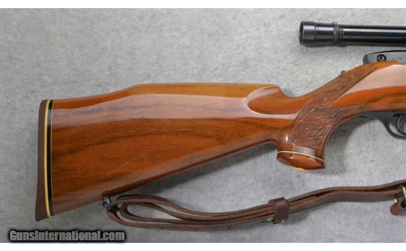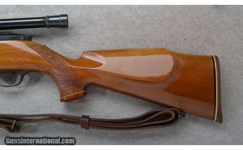 Description: This Weatherby Model Mark XXII is a right hand semi-auto rifle in .22 Long Rifle Cal. It has a 24 inch barrel. A raised blade front sight with a brass bead and a flip two position notch middle sight. It is outfitted with a Weaver B4 Scope. The butt stock is a diamond checkered walnut pistol grip with a rosewood cap. The forearm is a diamond checkered walnut with a rosewood tip. This Gun Does Not Come With A Magazine. .22 Long Rifle SOLD Chambers: No magazine included. Metal Condition: Excellent. Wood Condition: Very Good. Some light handling marks. Bore Condition: Excellent. Barrels: 24 inch Triggers: Adjustable. Stock Dimensions: LOP 13 5/8 inches. Fore End: Diamond checkered grip walnut with a rosewood tip. Butt Pad: Weatherby brown rubber pad. Weight: 6 lb. 15 oz. Sights: Raised blade front with a brass bead. Flip two position notch rear. Weaver B4 Scope. Item Location: Richfield, WI |