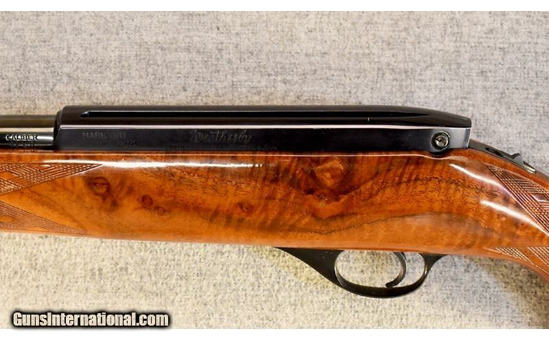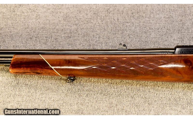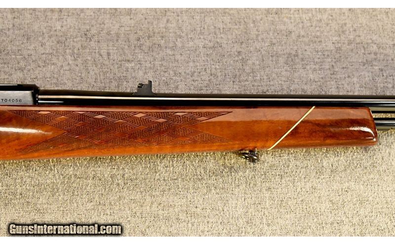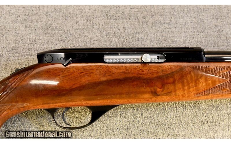 Description: This is a pre-owned Weatherby Mark XXII in .22 Long Rifle, made in Japan with high-grade walnut stock and the selector that allows single-shot or semi-automatic functioning .22 Long Rifle SOLD Metal Condition: Very good with a few small scratches Wood Condition: Very good with a few small scratches and dents Bore Condition: Clean with bright lands Barrels: 22 Stock Dimensions: 13 1/2" LOP Fore End: Checkered walnut with rosewood fore end tip and pistol grip cap Butt Pad: Weatherby pad Weight: 6 lbs. 6 oz. Sights: "Beaded blade front, U-notch with two flip-up leaves Item Location: Glendale, AZ |
