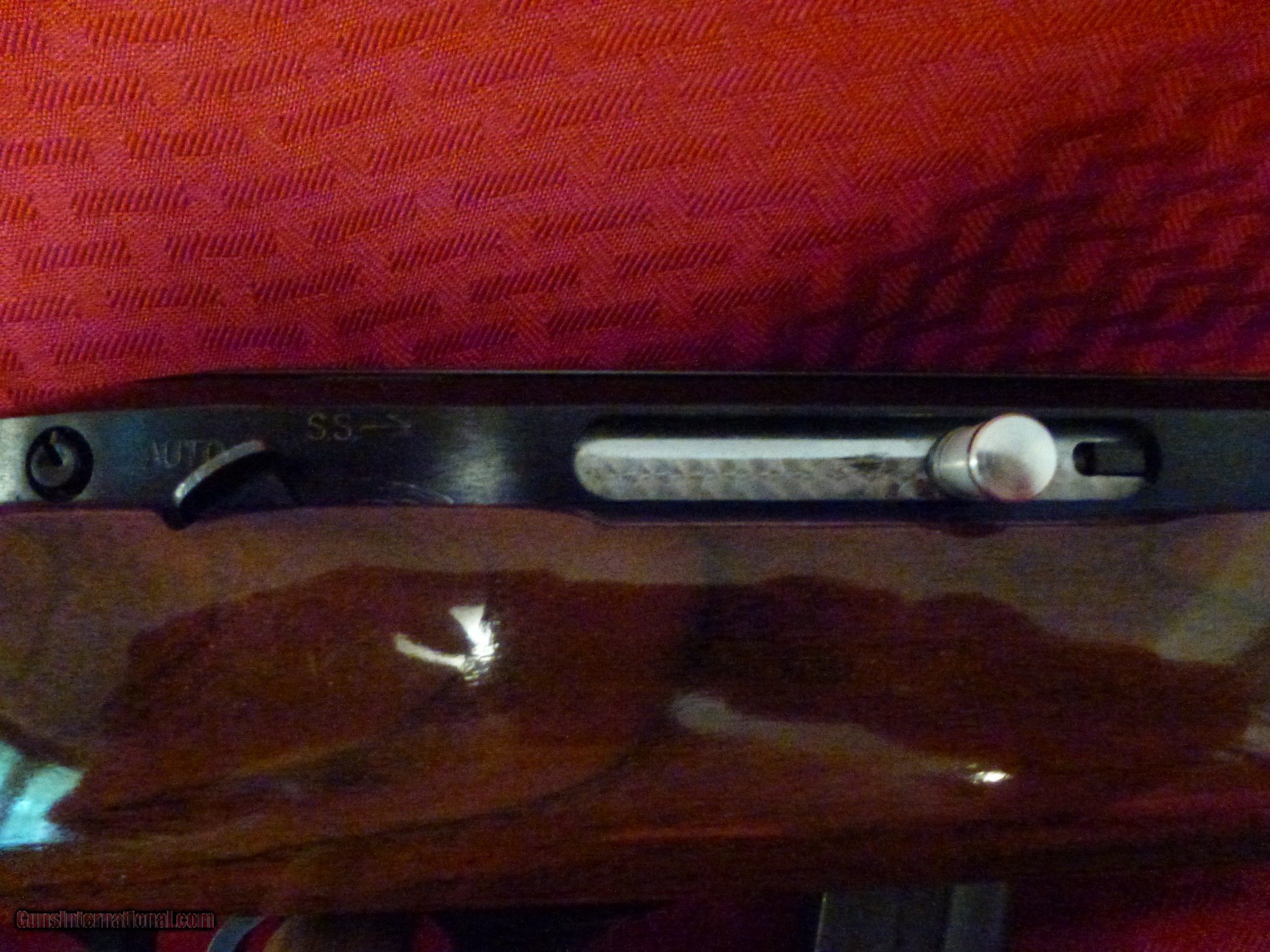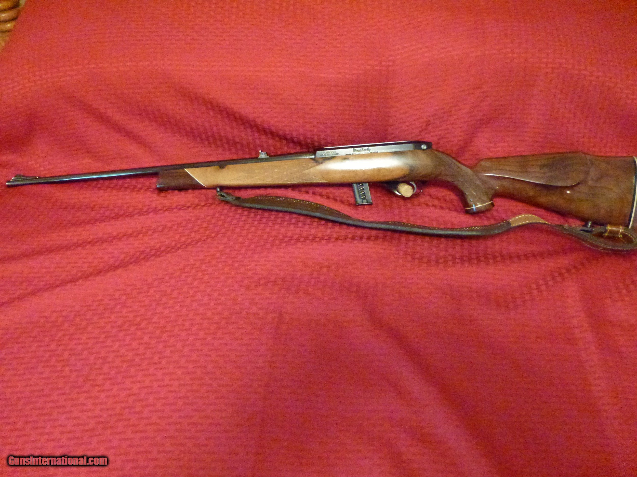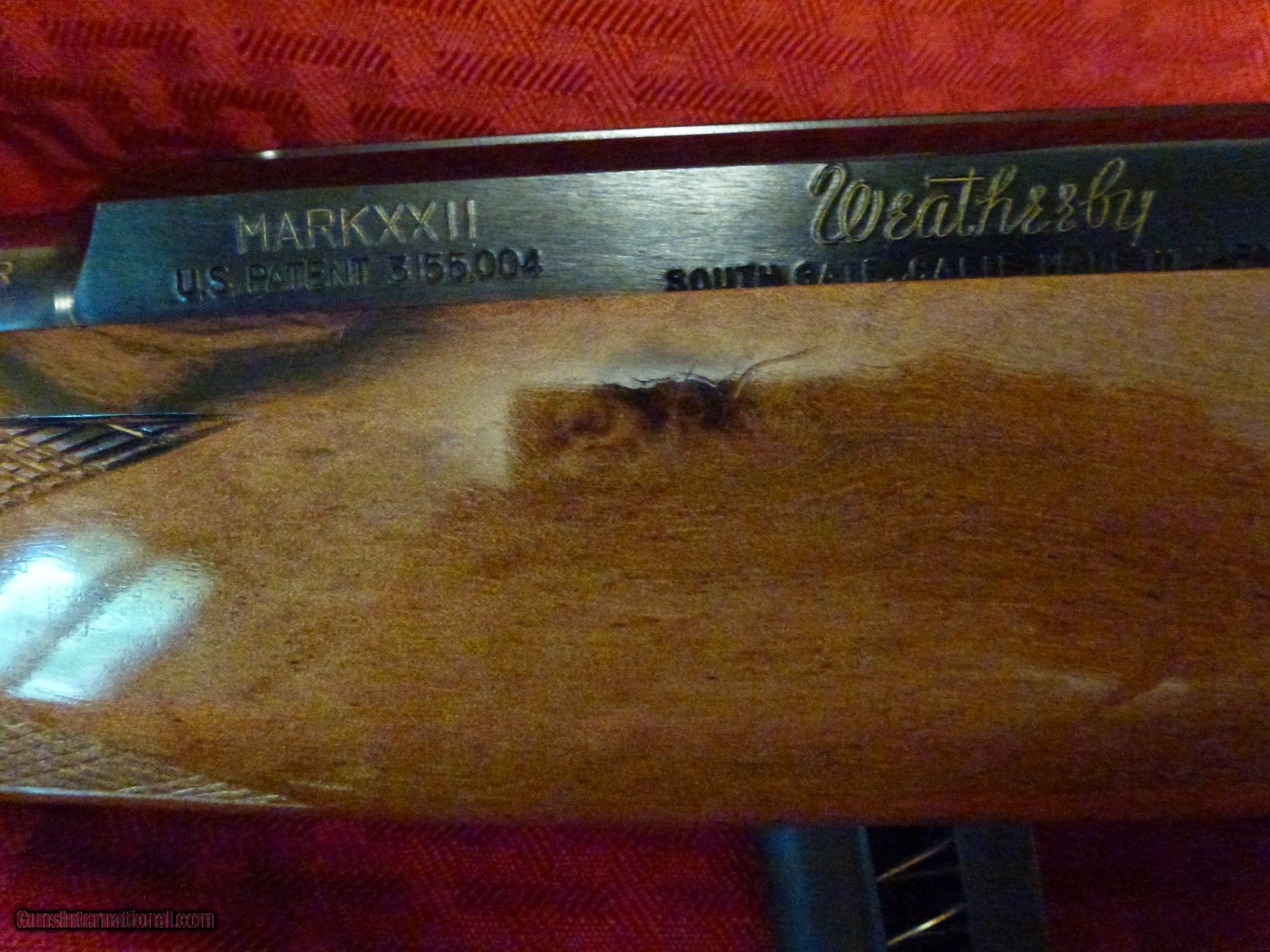 Description: This is a very nice Weatherby Mark XXII semi-auto .22LR rifle with the Single Shot lever. This gun has a 10 shot magazine and was manufactured in Japan.The stock is a gloss walnut with skipline checkering that is dark on the right side and light on the left side. I would rate the metal at 98% and the wood at 96% due to a few handling marks. The rifle has open sights and is grooved for .22 rings. It has a Weatherby buttpad and a sling is included. The gun will ship with 3 of the 10 round magazines(1 of which has a brass bottom plate holder as the original was lost). The N prefix serial numbered guns were manufactured from 1972-1980. Please e-mail with any questions as NO RETURNS ARE ALLOWED. Shipping is included in the price of the gun. SOLD Rifle Caliber: .22 Long Rifle Manufacturer: Weatherby Model: Mark XXII Serial Number: N53940 Barrel Length: 24 inches Condition: Excellent Metal Condition: 98% Wood Condition: 96% Bore Condition: Excellent Action: Semi-auto Stock: Gloss finished walnut Fore End: Rosewood Butt Pad: Weatherby Finish: Blued Manufacture Date: 1972-1980 |