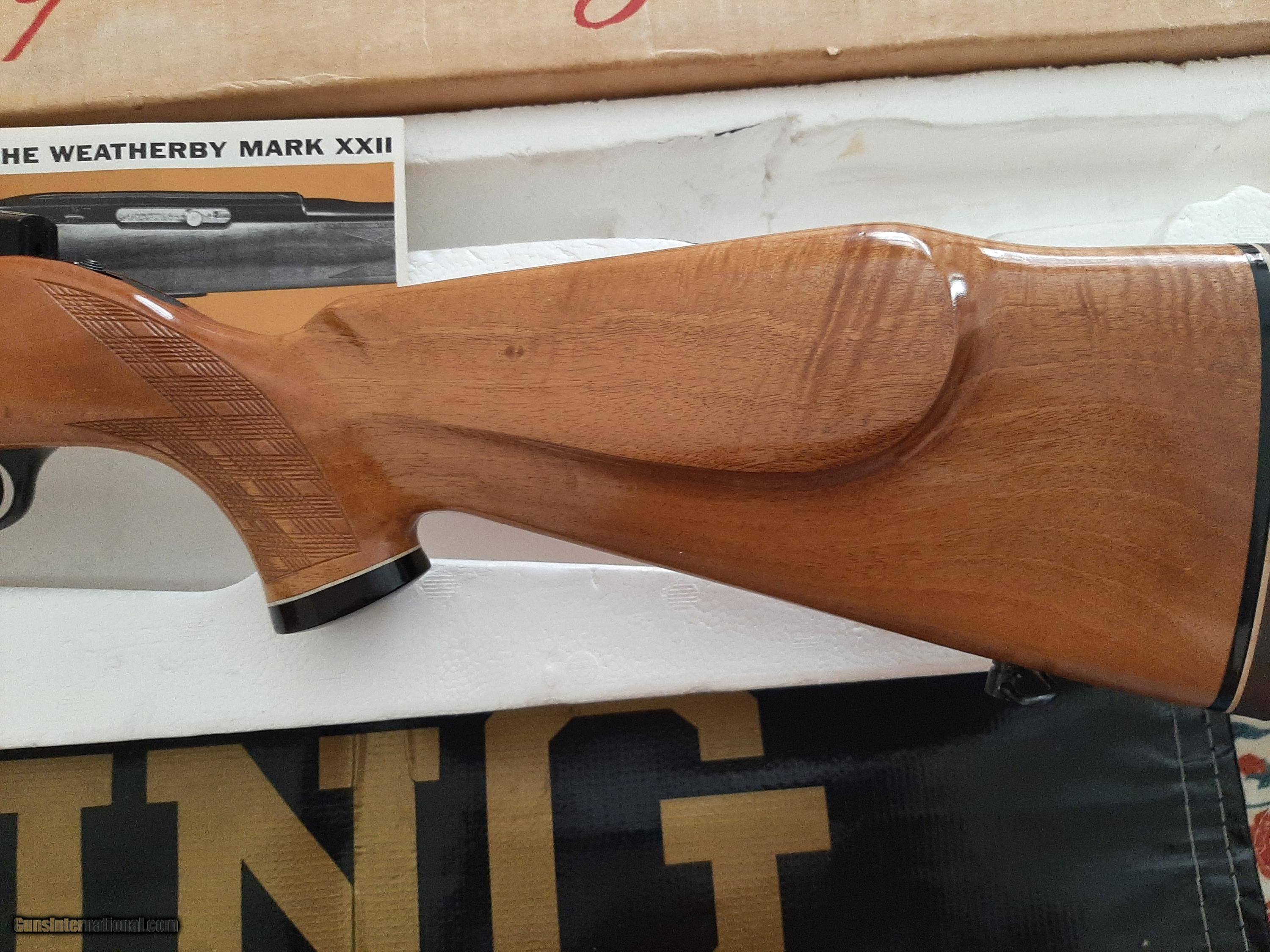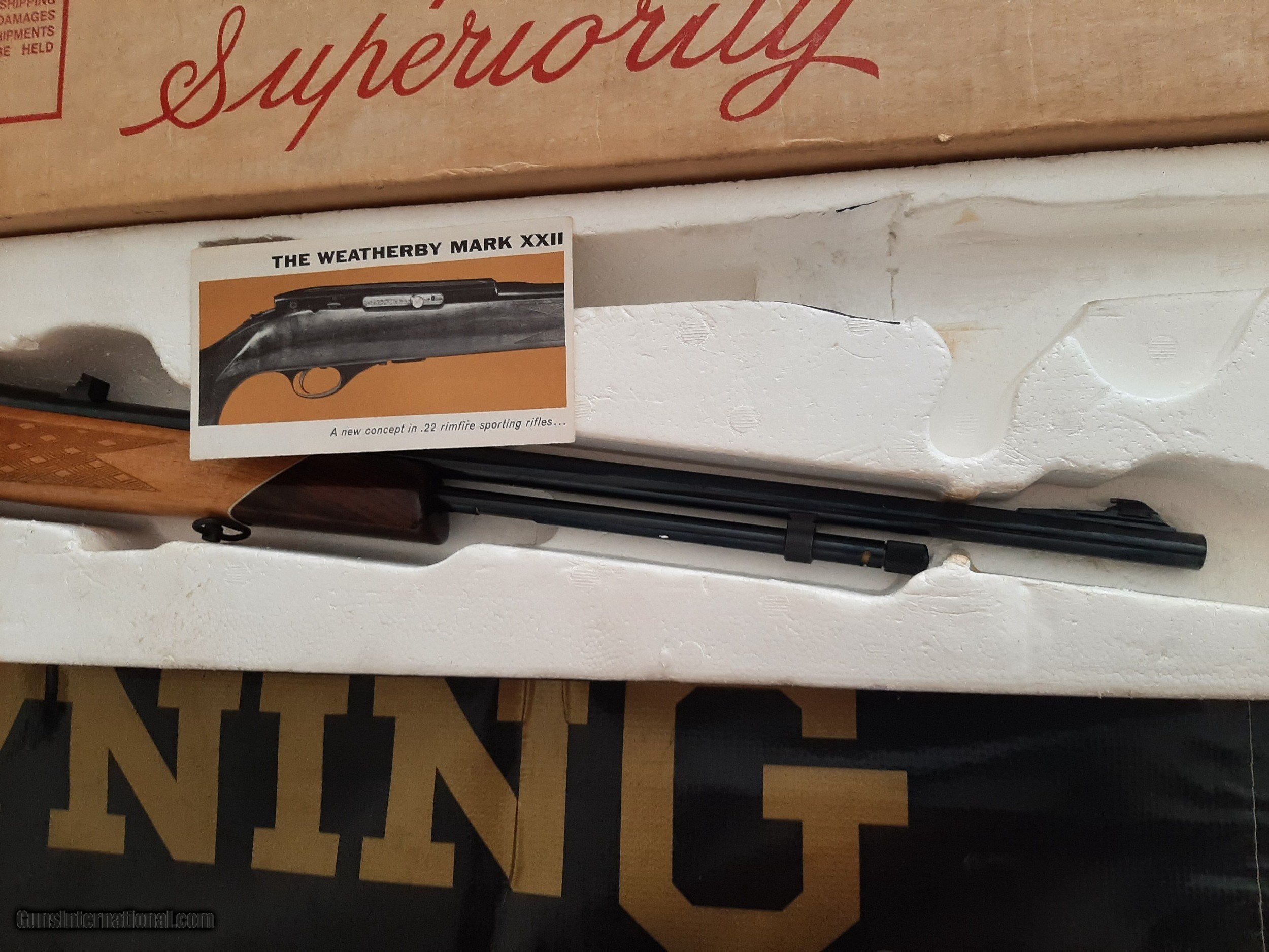 Description: Weatherby Mark XXII Tube is Like New in the Box with Manual. Great Blonde Wood. Credit Cards add 3%. Shipping and Insurance is 75.00. SOLD Rifle Caliber: .22 Long Rifle |