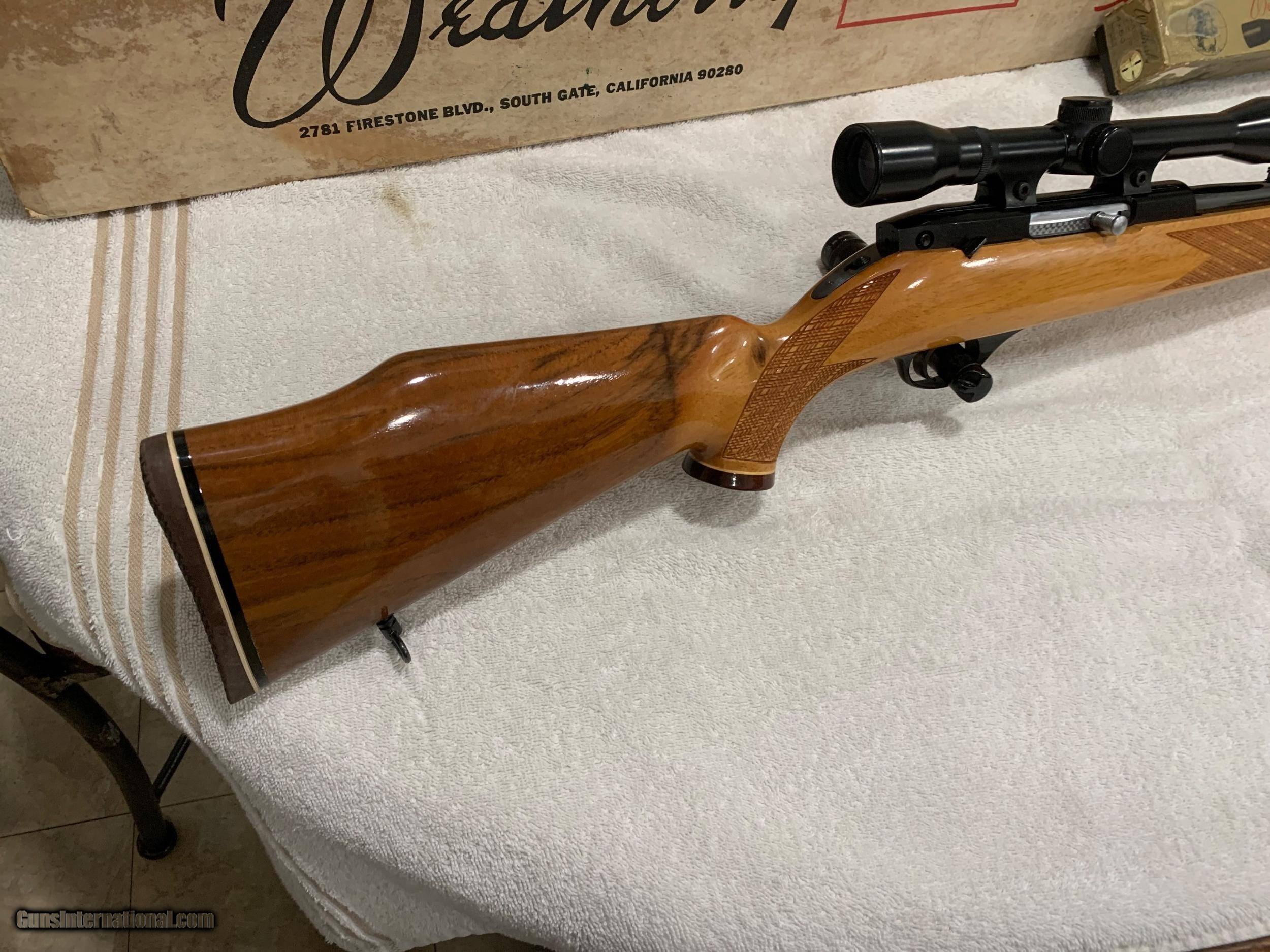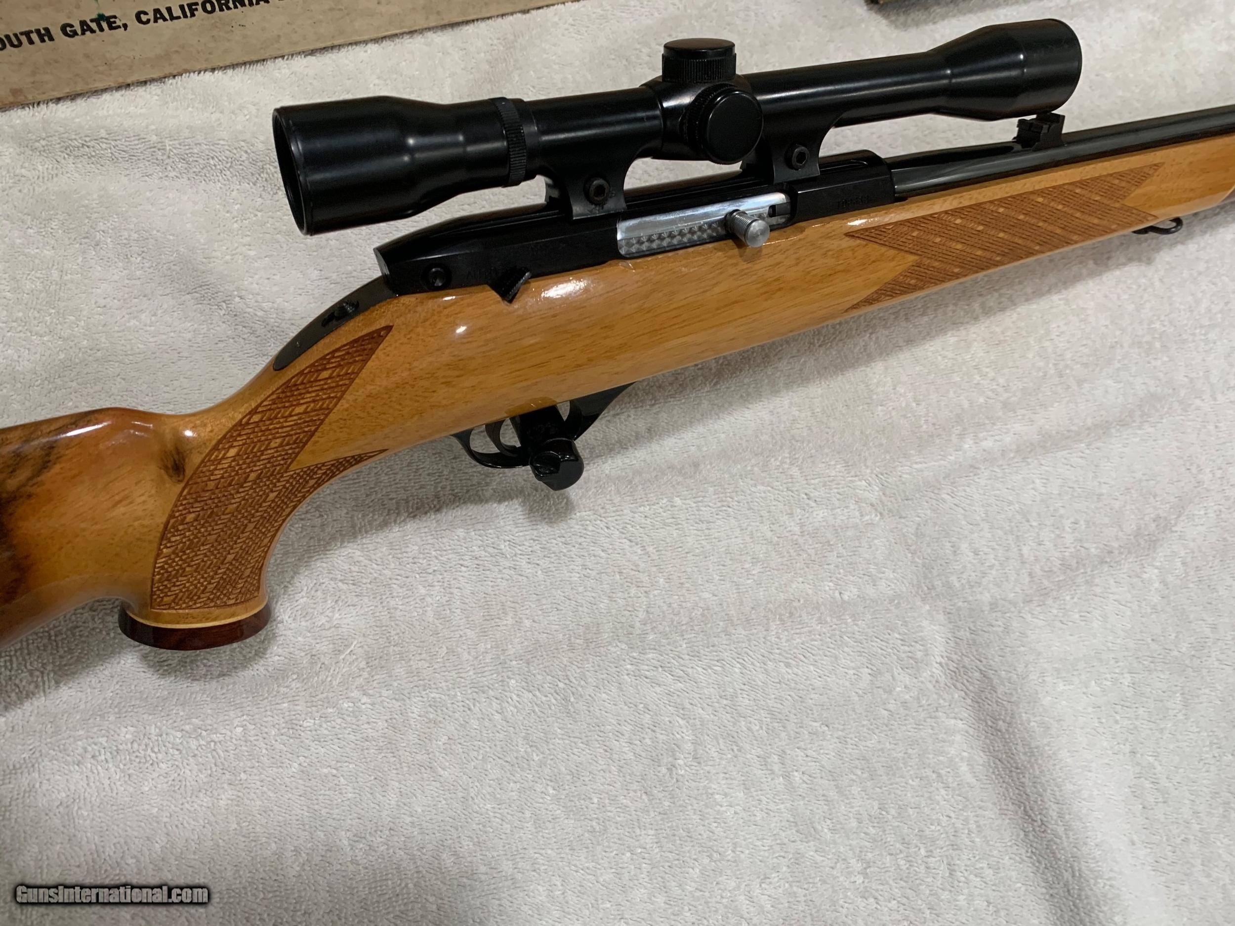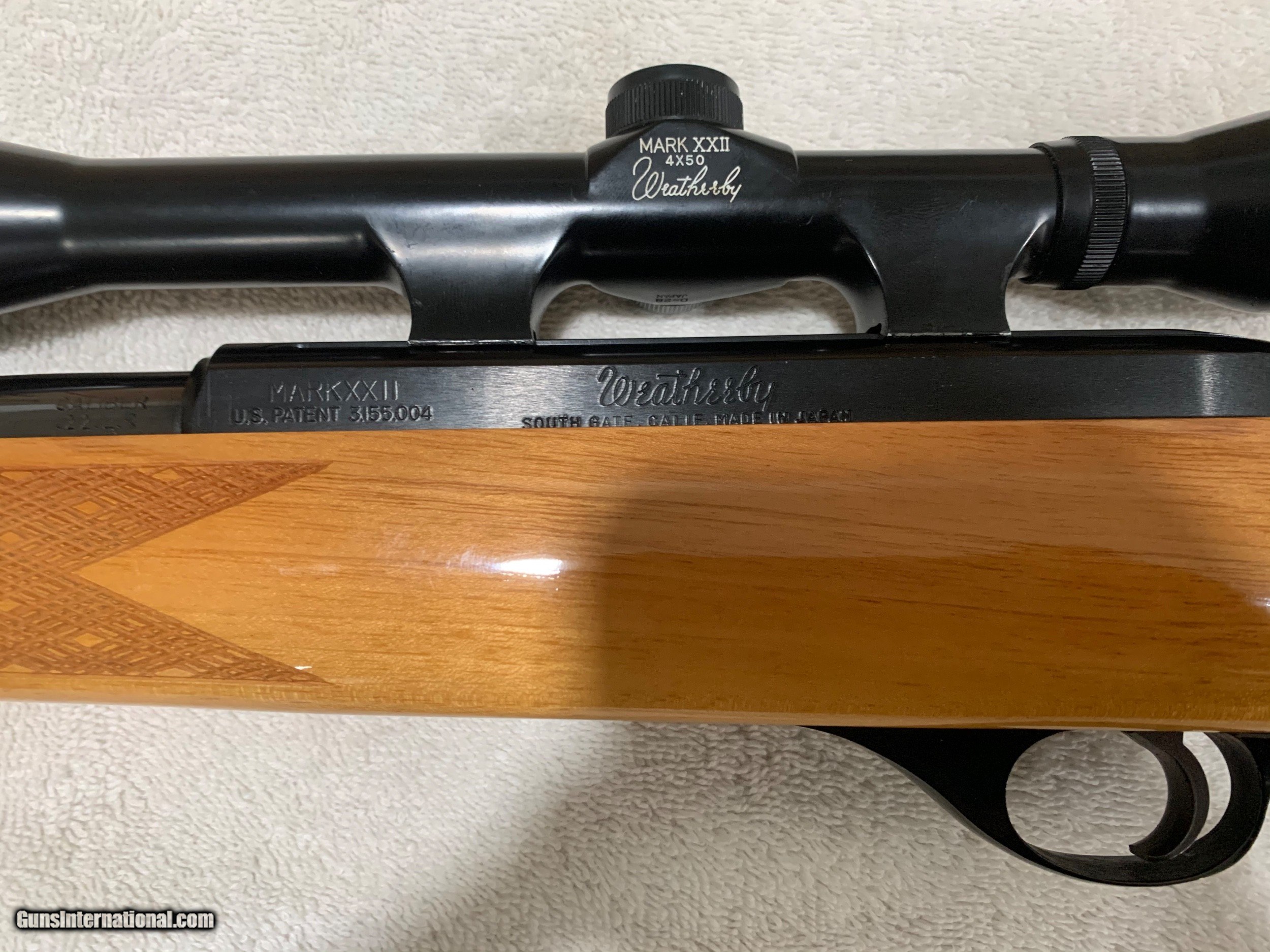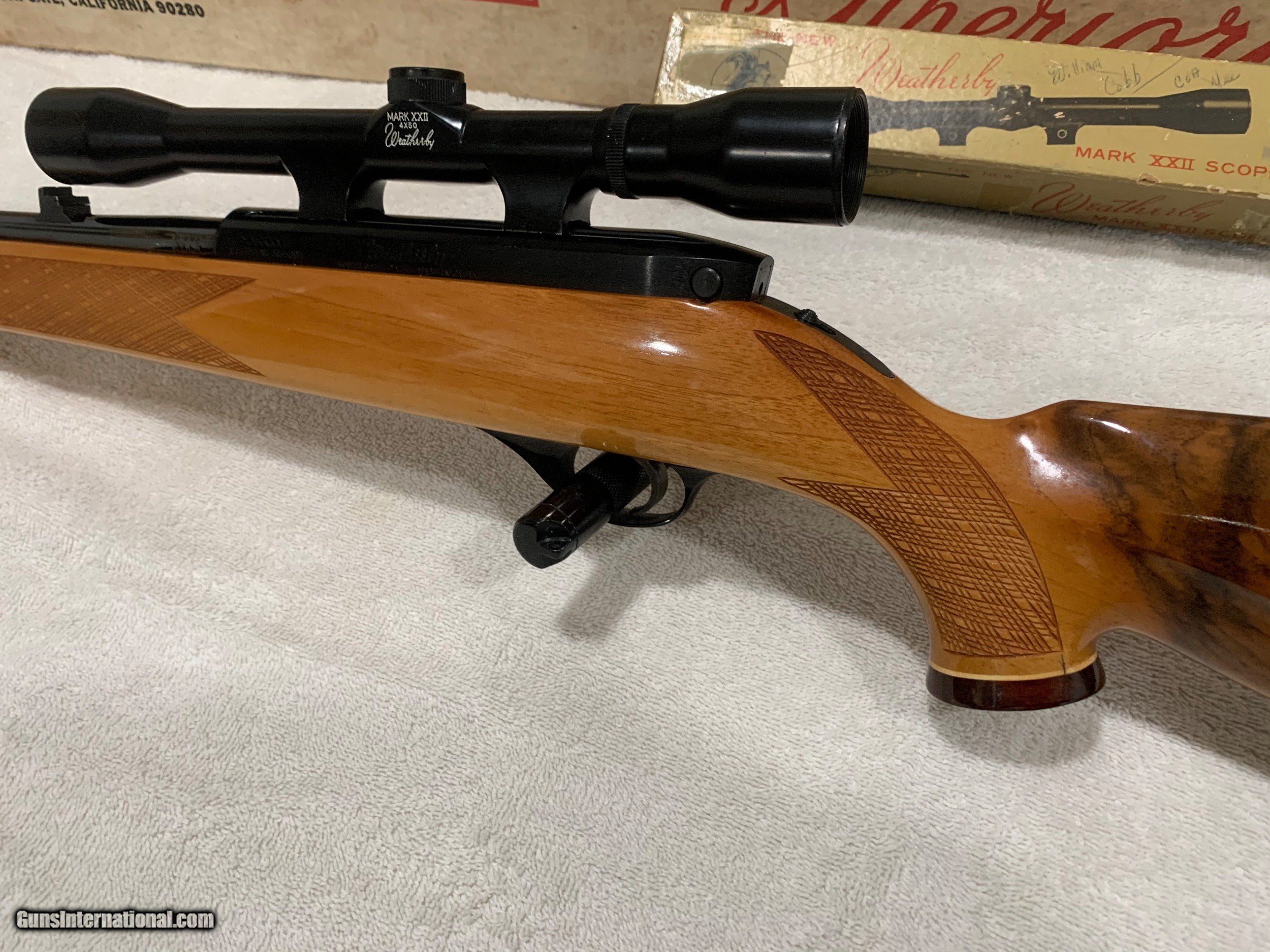 Description: Beautiful Mark XXII made in Japan, it has a T prefix, this rifle is like new has very few marks on the wood or metal, the buttstock is a beautiful piece of dark walnut changing to a very light walnut at the pistol grip, this is a truly collectible 22 that would be very hard to find one any nicer. Scope and boxes are included, scope will have to be removed and shipped separately. Insured shipping will be $65 No California sales. Will need a copy of an FFL before I can ship. Any form of payment other than USPS money order will delay shipping until it clears my bank. Thanks for looking. SOLD Rifle Caliber: .22 Long Rifle Manufacturer: Weatherby Model: Mark 22 Condition: Excellent |