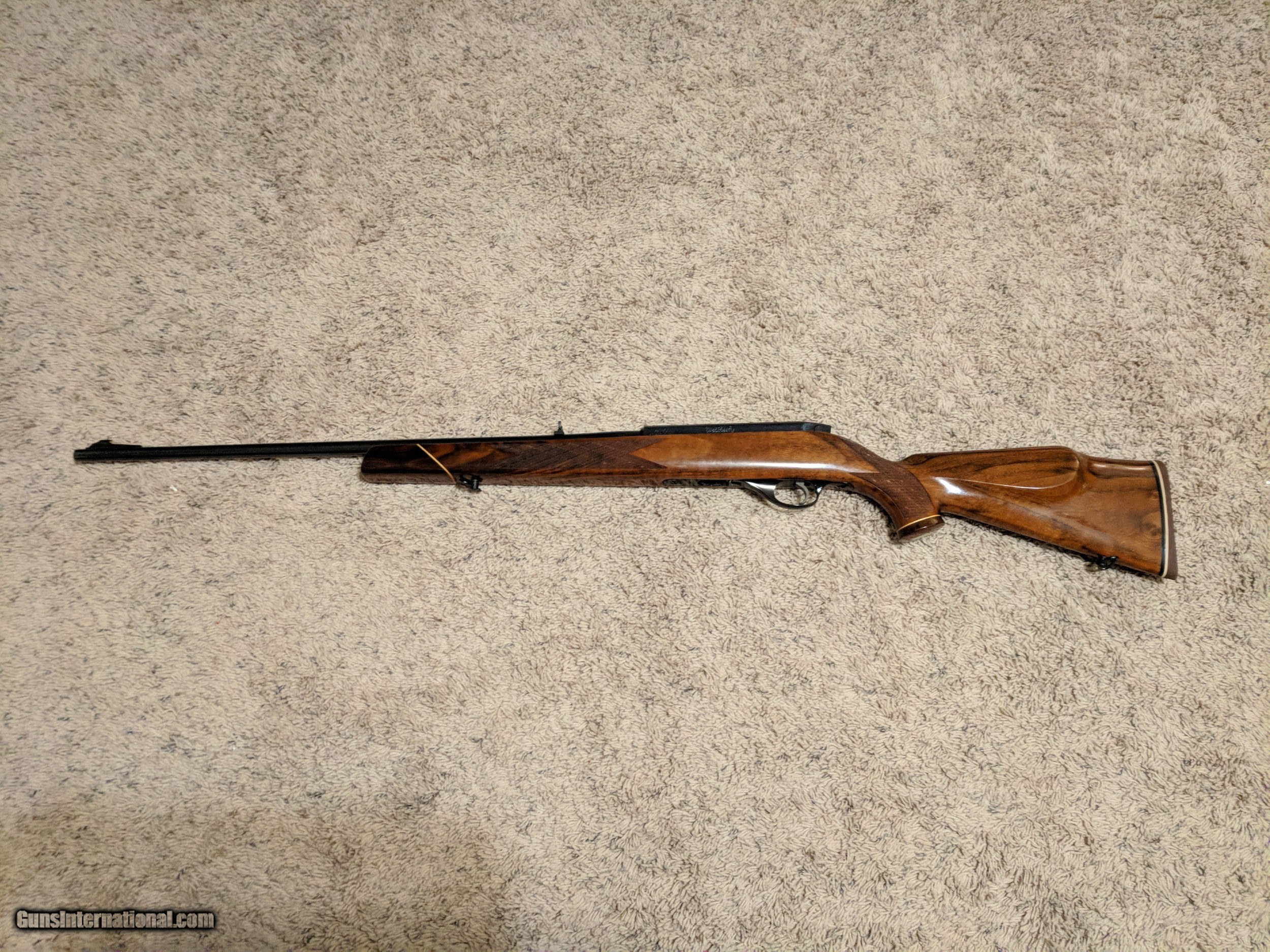 Description: Weatherby Mark XXIII clip fed 22 LR rifle gun switches from semi-auto to single shot, comes with (2) ten round clips, gun finish is excellent condition SOLD Rifle Caliber: .22 Long Rifle Manufacturer: Weatherby Model: Mark XXIII Serial Number: N61390 Condition: Excellent Metal Condition: Excellent Wood Condition: Excellent |