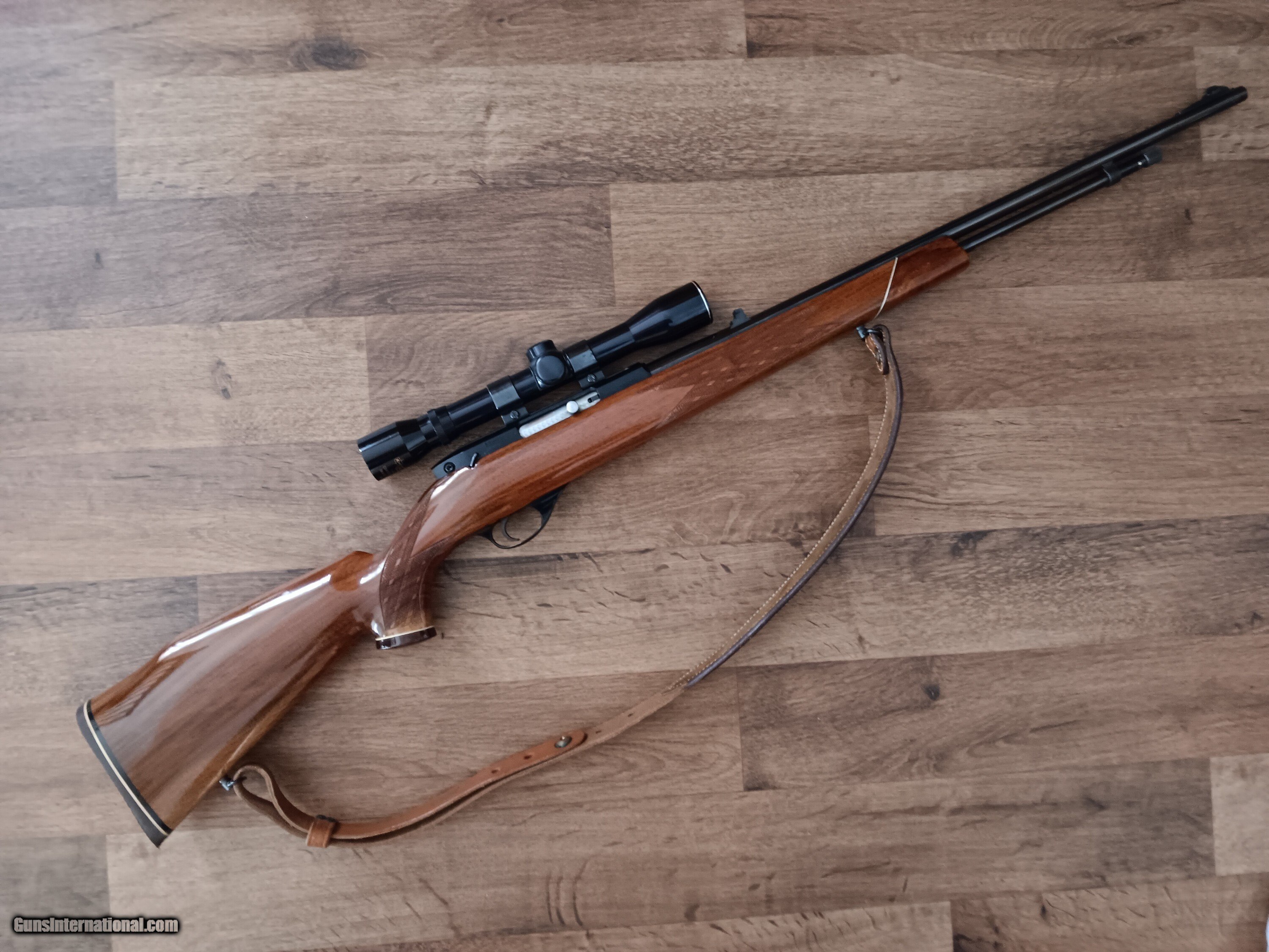 .22lr tube fed, beautiful dark wood, with scope and sling!