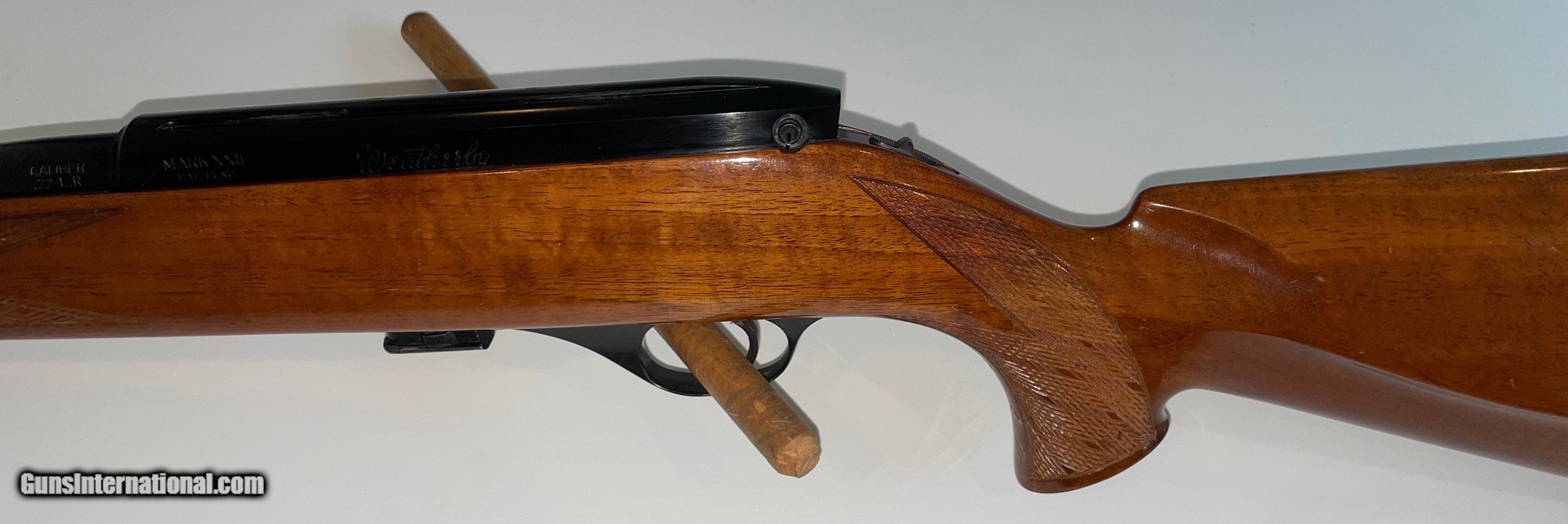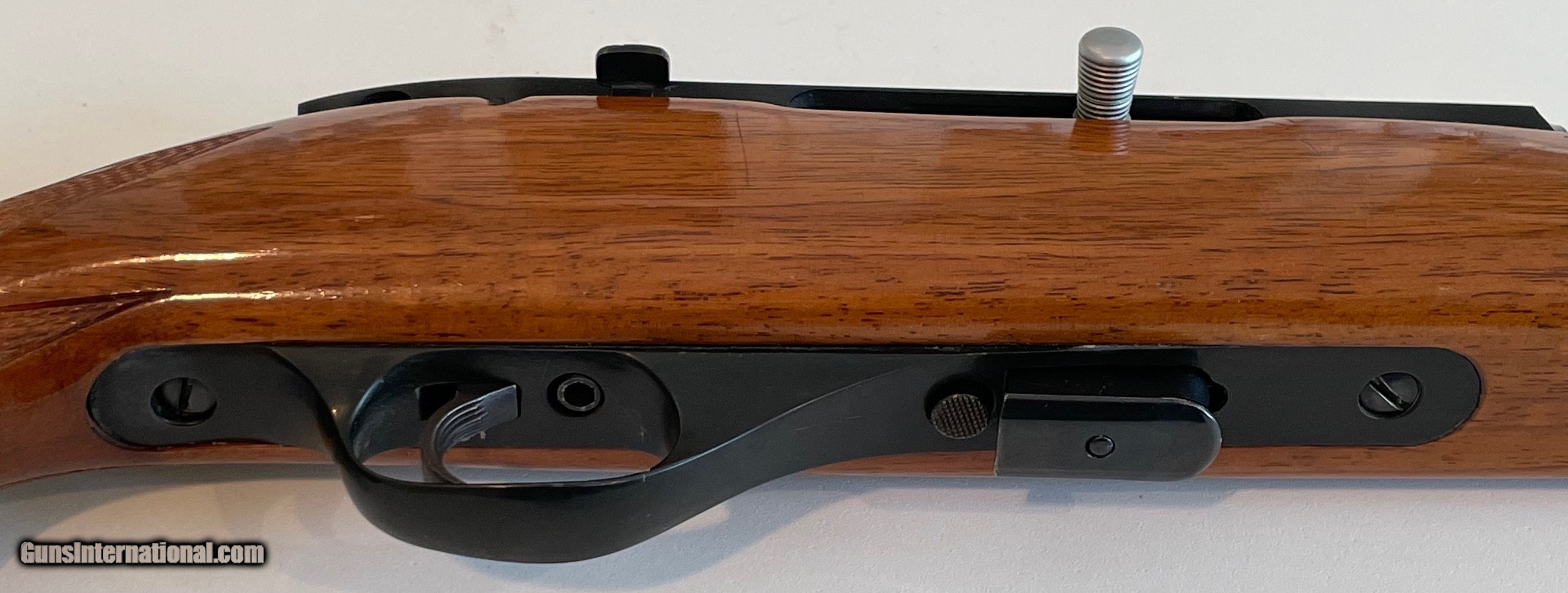 Description: Weatherby XXII clip fed Italian Made example. Beretta made these for Weatherby. They have features that I think make them the most attractive of the clip fed Weatherby's, and they were not shared with their tube feed counterparts. These feature a steel checkered buttplate, and an adjustable trigger. They also do not have the white line spacers, grip cap or contrasting forend tip. I know some people prefer those features, but I prefer the more understated look. To each his own, and that is my opinion only. This example has lighter colored wood than do most of these. One 5 round magazine is included. $50 to ship in a high quality box, via FedEX Ground to your FFL. Thanks for your interest and please see my other ads. SOLD Rifle Caliber: .22 Long Rifle Manufacturer: Weatherby Model: Mark XXII Metal Condition: Excellent Plus Wood Condition: Excellent Plus Bore Condition: perfect Action: Semi Automatic |