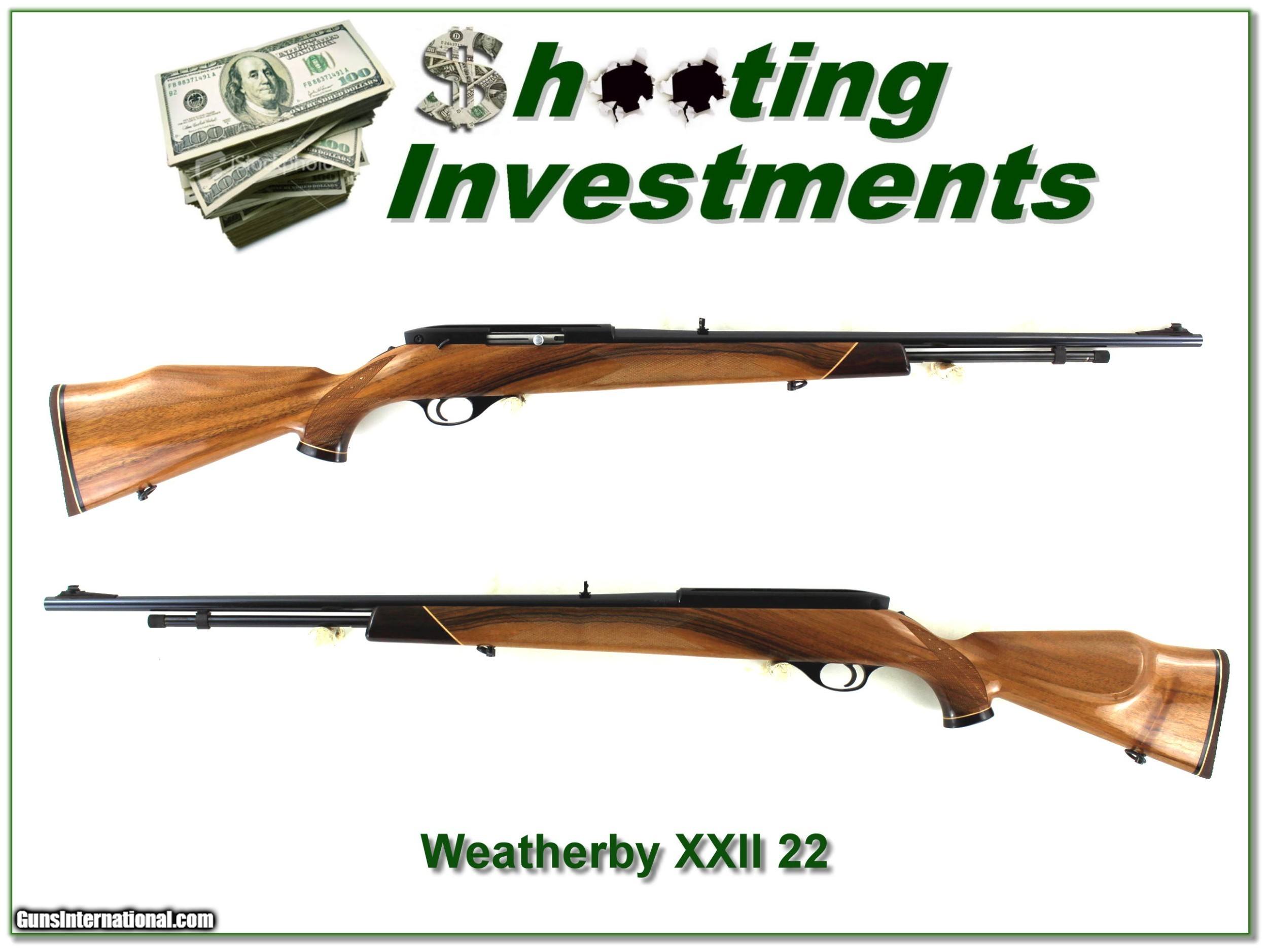 Description: Collectors, this is a rare chance to near new Weatherby XXII Tube. It is beautiful honey colored wood with dark grain. I don’t have a mark on the it! I am sure only a couple rounds fired at most! You will look hard to find a nicer one. Shipping and insurance is $49. Please email me with any questions or larger pictures. (Consign your quality firearms with Shooting Investments for only 12%! Let me know if you have any you would like to sell!) 22-0870 Payment: Payment is by Money Order, Cashier’s Check or Personal Check. I can now also accept Credit Cards (MasterCard, Visa, Discover & American Express) with a 3% convenience fee. Shipping: The shipping charge will be listed in each description. It is $39 for most firearms. Some heavy guns or those insured for over $2000 will be higher. Shipments to Alaska and Hawaii are higher because air shipment is required. Most firearms are shipped on Tuesday and Thursday and usually in 5 days of receipt of payment. We package all shipments carefully and insure them. Optics are shipped Priority Mail and most other non-firearm shipments are shipped First Class. Returns: Our return policy is simple. If for any reason you are not pleased with your purchase, you may return your item for a full refund of purchase price. Ammunition cannot be returned. It is important to us that you are happy. Guns cannot be fired or dissembled before returning them and they must be returned in the same condition as received. Notification of a return must occur within 3 days of receipt at your dealer. Shipping, convenience and dealer fees are not refundable and are the responsibility of the buyer. Lay-a-way: If needed, we offer a 60 day lay-a-way option on most firearms. It is 1/3 now, 1/3 in 30 days and 1/3 in 60 days. Lay-a-way firearm sales are final and cannot be returned. If a lay-a-way is not completed the first payment cannot be refunded. Consigning your firearms with Shooting Investments: We will help you get top dollar for your firearms. While most local guns shops charge 20% or more, our fee is only 12% with a minimum of $75. At your local gun shop it might take months to sell. Selling on-line provides instant access to thousands of interested buyers. You won’t find any other on-line dealer willing to sell your firearms for only 12% or listing every gun on 3 separate s. Selling through an House typically costs the seller 15% and the buyer an addition 15% (so 30%) and you have to wait several months to sell and longer to receive funds. If properly priced, we will sell your firearms within a few weeks. Send us an email or give us a call and we’ll explain how easy it is for you to get top dollar. Trading: Trading for us is really just buying your gun to re-sell. If you have a gun you want to trade, please email a picture and we will let you know what we can give for it. You will always get more if we sell it for you on consignment. Help for California Buyers: We are happy to ship to California. It is the buyer’s responsibility to make sure any item you buy is legal in your state. We are also happy to help with your purchase of a firearm from someone other than us. If you see a gun you would like to buy but the seller can’t or won’t ship to California they can ship to use and we’ll then ship it to your California dealer. The cost for this service is only $30 + shipping. Let us know if we can help! SOLD |