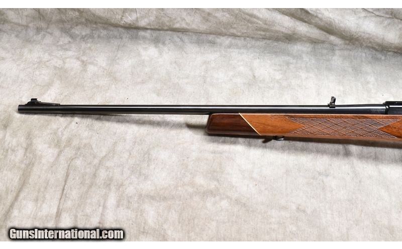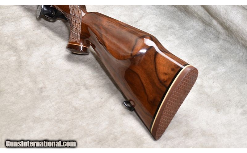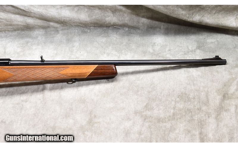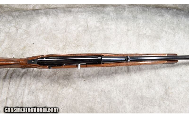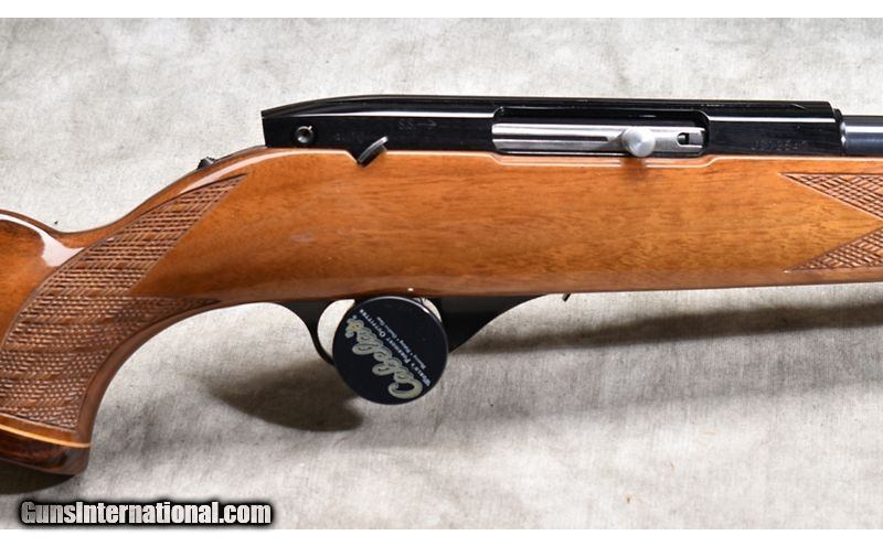 Description: Based upon the serial number JC125xx this was manufactured by Howa in Japan. It features figured walnut Monte Carlo stock with rosewood tip/grip caps and skip-line checkering. .22 Long Rifle SOLD Chambers: 10-round magazine Metal Condition: Very good to excellent. One small pit on the barrel. Wood Condition: Excellent. Bore Condition: Shiny and bright with good rifling. Barrels: 24-inch Triggers: Factory trigger. Stock Dimensions: 13-3/4 inch LOP. Butt Pad: Rubber pad. Weight: 5 lb - 11 oz Sights: Folding leaf and bead "iron" sights. Grooved for scope. Item Location: Rogers |