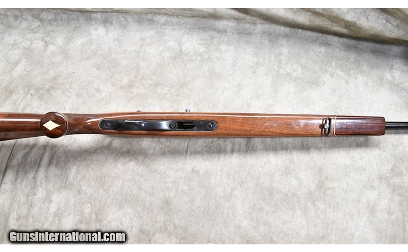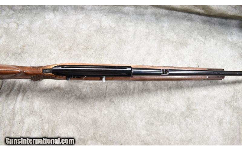Description: Based upon the Serial Number 401xx, this XXII was probably manufactured by Beretta and features figured walnut Monte Carlo stock with rosewood tip/grip caps, skip-line checkering, bead and folding leaf 'iron' sights and it is grooved for scope. .22 Long Rifle SOLD Chambers: 10 Metal Condition: Excellent. Wood Condition: Excellent. Bore Condition: Shiny and bright with good rifling. Barrels: 24-inch Triggers: Factory trigger. Stock Dimensions: 13-1/2 inch LOP. Butt Pad: Rubber pad. Weight: 6 lb - 4 oz. Sights: Folding leaf and bead 'iron' sights. Grooved for scope. Item Location: Rogers |