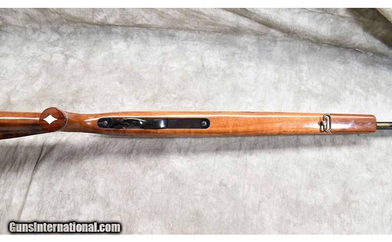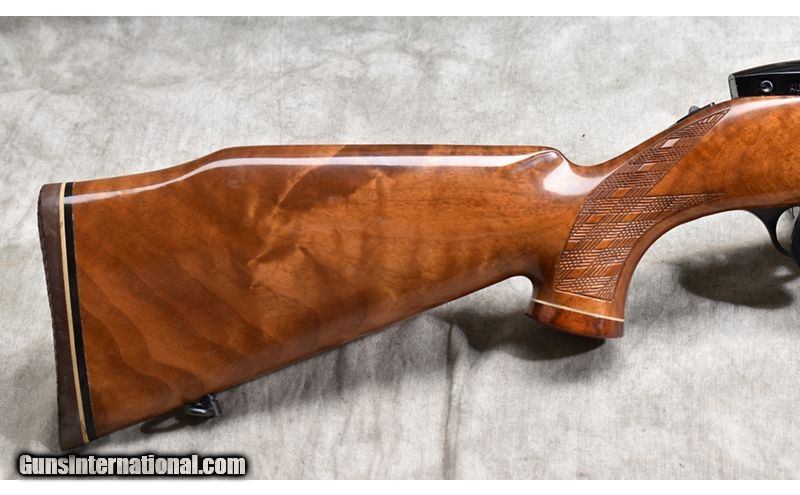 Description: This Mark XXII is in excellent condition and features heavily figured walnut Monte Carlo with rosewood tip/grip caps, tube magazine, gold bead and folding leaf sights. This is one of the Japan-made Weatherby's. .22 Long Rifle SOLD Chambers: 15 Metal Condition: Excellent. Wood Condition: Excellent. Bore Condition: Shiny and bright with good rifling. Barrels: 24-inch Triggers: Factory trigger. Stock Dimensions: 13-1/2 inch LOP. Butt Pad: Rubber pad. Weight: 6 lb - 8 oz Sights: Folding leaf and bead "iron" sights. Grooved for scope and is furnished with a Tasco 3-9x40mm scope. Item Location: Rogers |