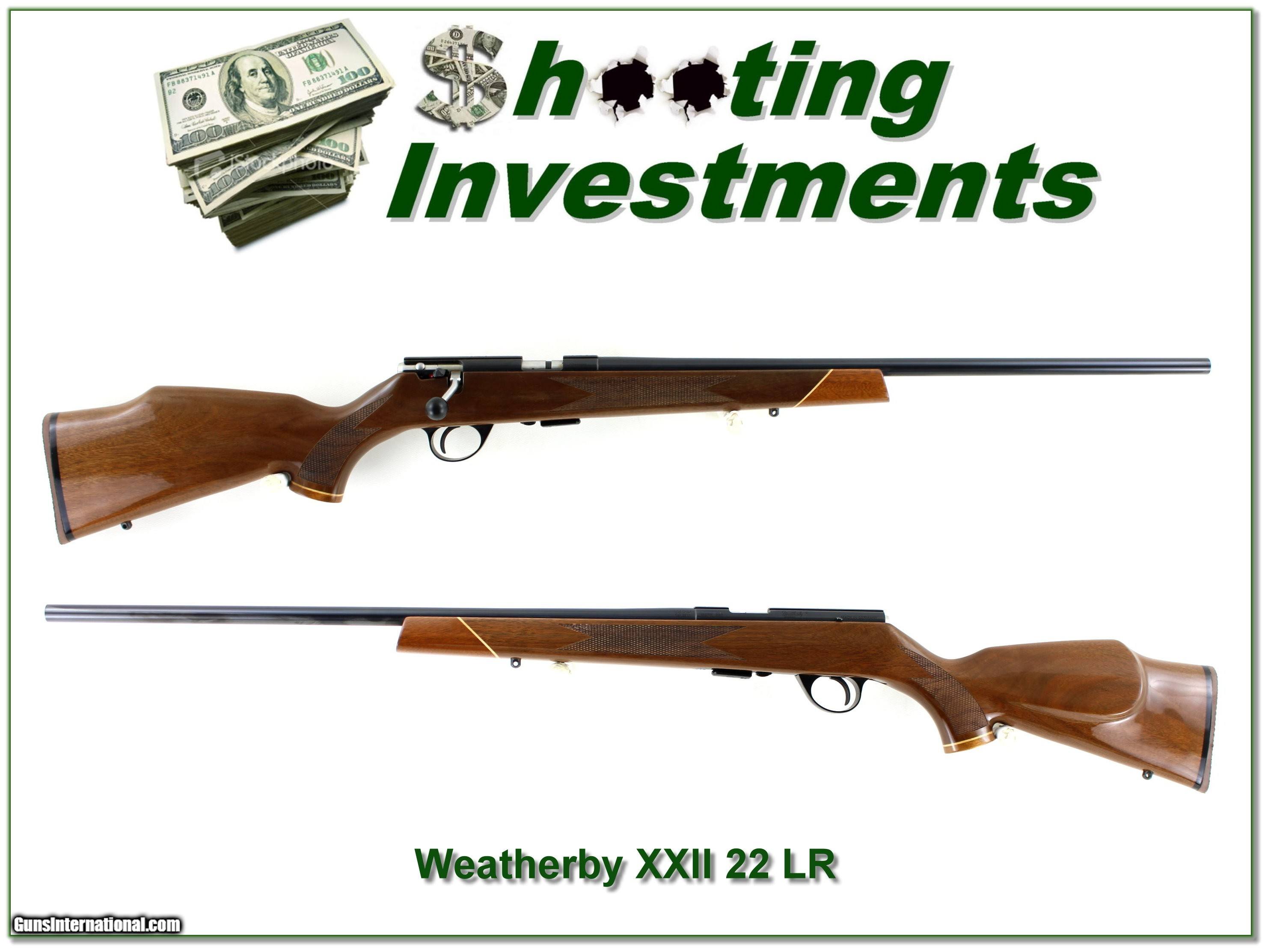 Description: Collectors and shooters, this is a new and I believe unfired Weatherby XXII 22LR. These bolt action Weatherby’s were only a made a few years by Anschutz. And they are all shooters! There are no marks or signs of use. No scope ever mounted. I only have the gun as pictured. It is a real Shooting Investment for sure! Shipping and insurance is $59. Please email me with any questions or larger pictures. (Consign your quality firearms with Shooting Investments for only 12%! Let me know if you have any you would like to sell!) 25-1187 Payment: Payment is by Money Order, Cashier’s Check or Personal Check. I can now also accept Credit Cards (MasterCard, Visa, Discover & American Express) with a 3% convenience fee. Shipping: The shipping charge will be listed in each description. It is $49 for most firearms. Some heavy guns or those insured for over $2000 will be higher. Shipments to Alaska and Hawaii are higher because air shipment is required. Most firearms are shipped on Tuesday and Thursday and usually in 5 days of receipt of payment. We package all shipments carefully and insure them. Optics are shipped Priority Mail and most other non-firearm shipments are shipped First Class. Returns: Our return policy is simple. If for any reason you are not pleased with your purchase, you may return your item for a full refund of purchase price. Ammunition cannot be returned. It is important to us that you are happy. Guns cannot be fired or dissembled before returning them and they must be returned in the same condition as received. Notification of a return must occur within 3 days of receipt at your dealer. Shipping, convenience and dealer fees are not refundable and are the responsibility of the buyer. Lay-a-way: If needed, we offer a 60 day lay-a-way option on most firearms. It is 1/3 now, 1/3 in 30 days and 1/3 in 60 days. Lay-a-way firearm sales are final and cannot be returned. If a lay-a-way is not completed the first payment cannot be refunded. Consigning your firearms with Shooting Investments: We will help you get top dollar for your firearms. While most local guns shops charge 20% or more, our fee is only 12% with a minimum of $100. At your local gun shop it might take months to sell. Selling on-line provides instant access to thousands of interested buyers. You won’t find any other on-line dealer willing to sell your firearms for only 12% or listing every gun on 3 separate s. Selling through an House typically costs the seller 15% and the buyer an addition 15% (so 30%) and you have to wait several months to sell and longer to receive funds. If properly priced, we will sell your firearms within a few weeks. Send us an email or give us a call and we’ll explain how easy it is for you to get top dollar. Trading: Trading for us is really just buying your gun to re-sell. If you have a gun you want to trade, please email a picture and we will let you know what we can give for it. You will always get more if we sell it for you on consignment. Price: $2,299.00 Contact Seller |