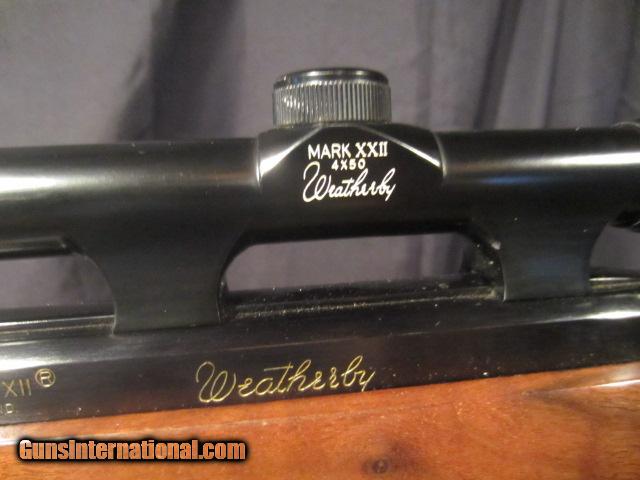 Description: WEATHERBY MARK XX11 MADE ITIALY WITH WEATERBY 4X50 SCOPE. INCLUDED ARE FOUR FACTORY CLIPS. WOOD HAS SOME LIGHT HANDLING MARKS, TRIGGER GUARD HAS STARTED TO CHANGE TO GRAY IN COLOR. NEED MORE INFORMATION PLEASE CALL OUR OFFICE 71-941-3946 SOLD |