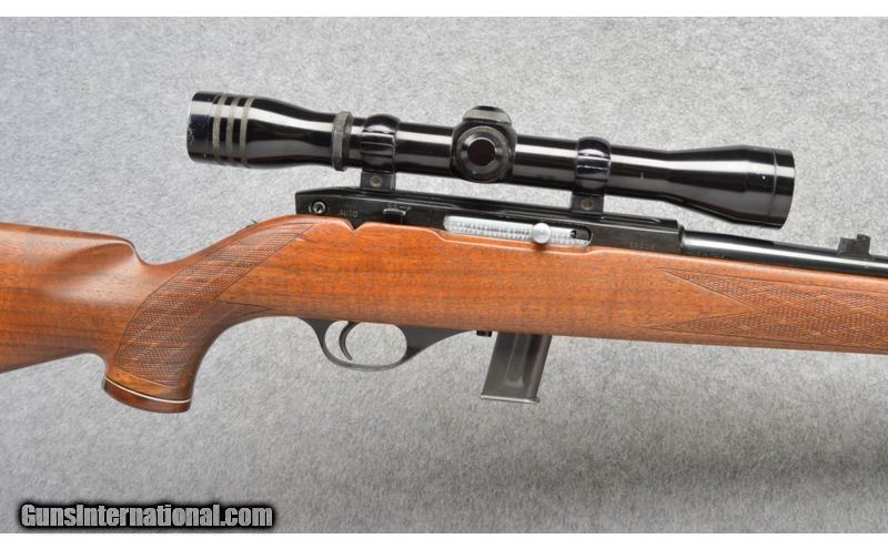 Description: Weatherby Mark XXII in 22 Long Rifle. Very clean semi-auto, magazine fed configuration. SOLD Caliber Info: 22 Long Rifle Metal Condition: Few slight handling marks Wood Condition: Scattered light handling Bore Condition: Very Bright Barrels: 24 Inch Taperd Stock: Square Knob Pistol Grip , Skip-Checkered Walnut Butt Pad: Weatherby Recoil Pad Weight: 7 Lbs 3 Ozs Sights: Redfield Widefield 4X Scope Item Location: Buda, TX |